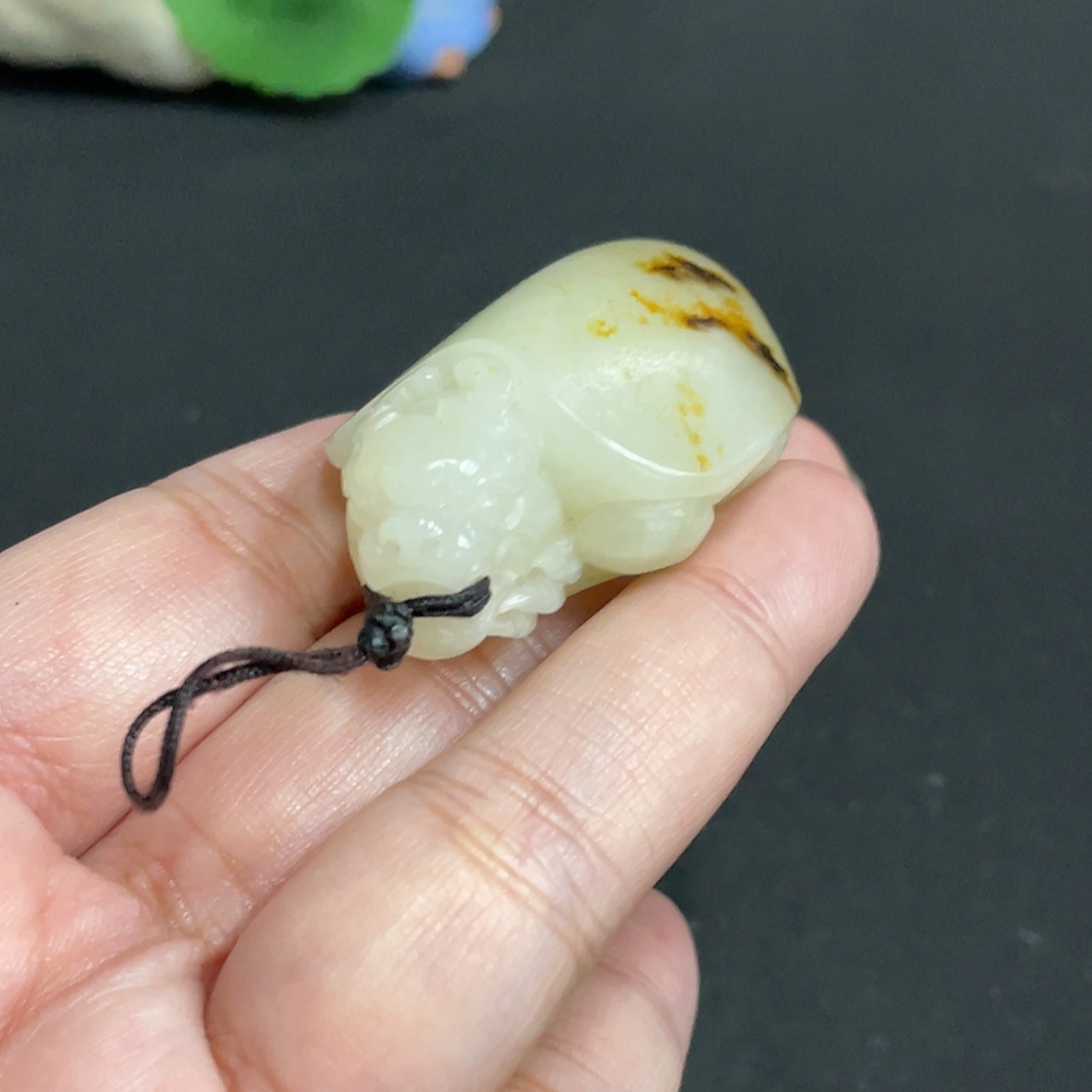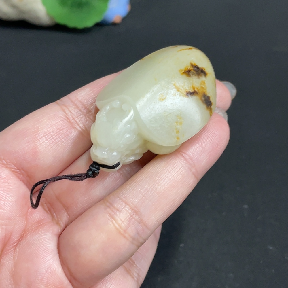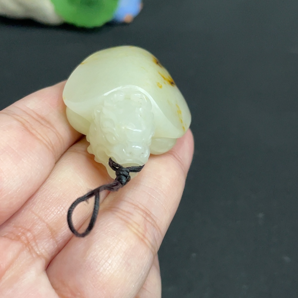 Hetian Jade Seed Material Pendant: Dragon Turtle, Total Weight Approx. 41.9g, Undetermined Skin Color Origin