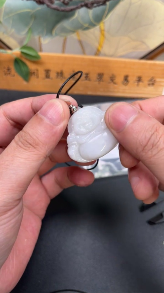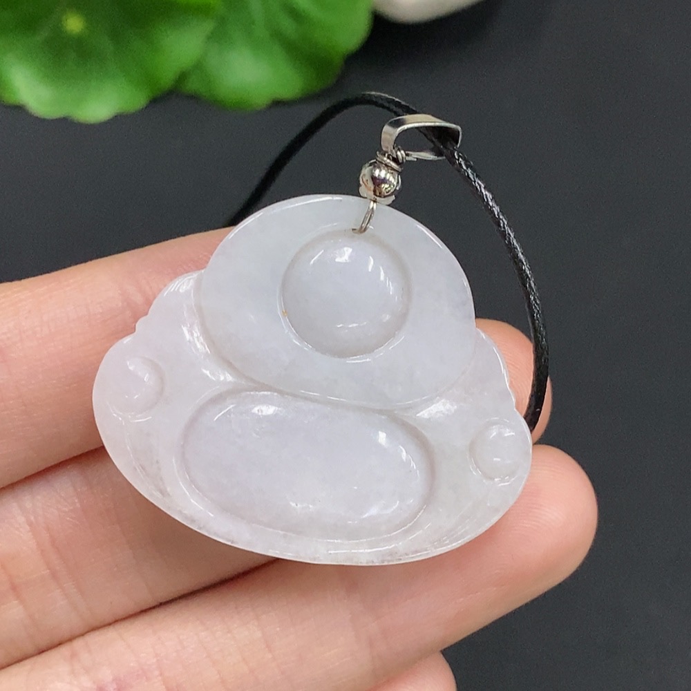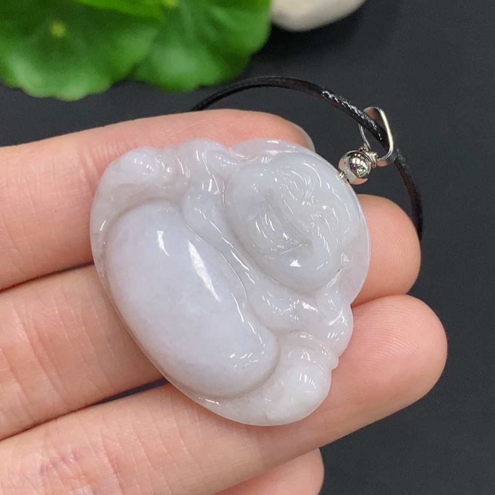 Jadeite Buddha Pendant Non-Gold Inlaid Total Weight Approx. 10.3g (Including Rope Weight)