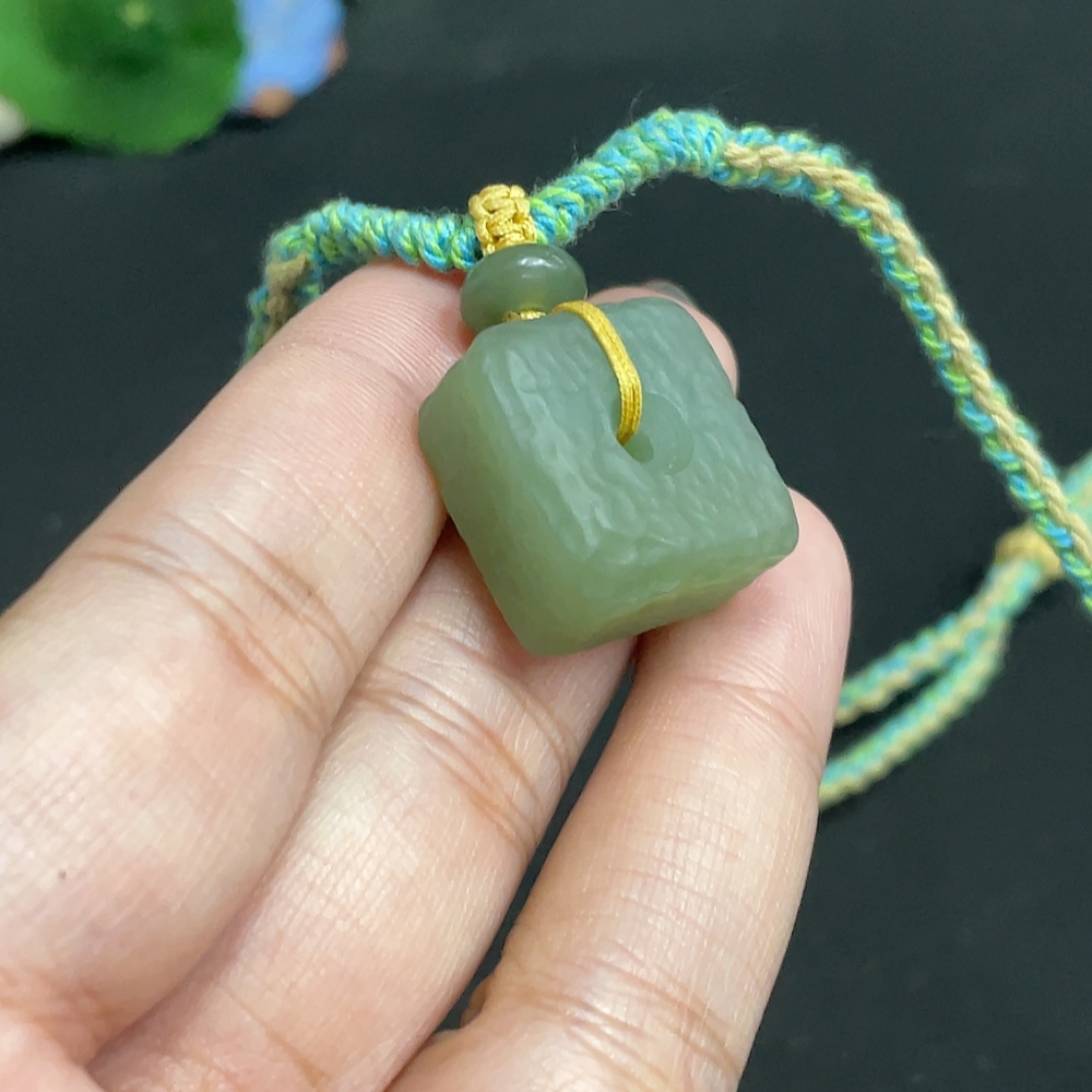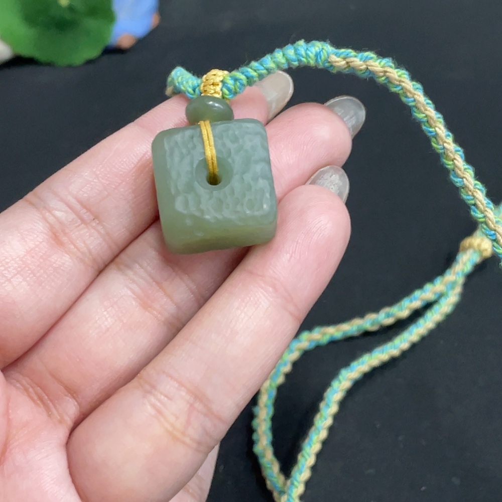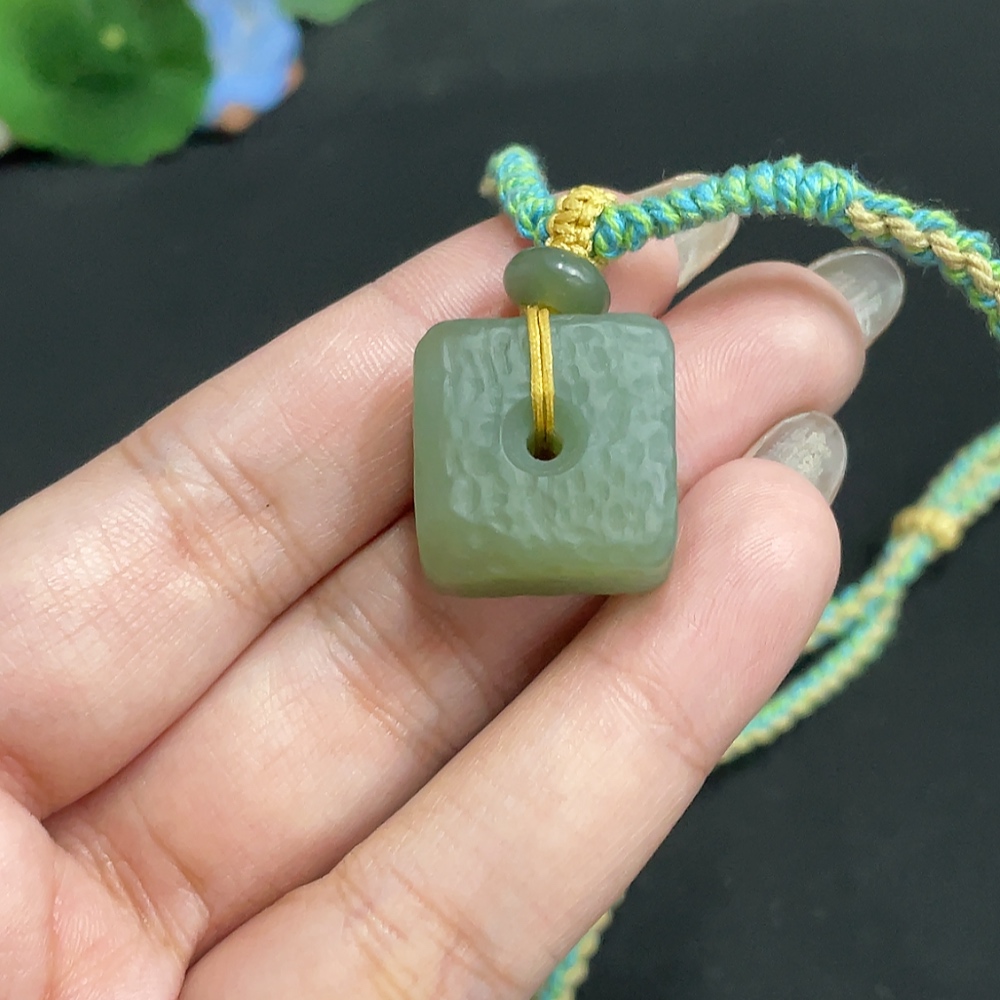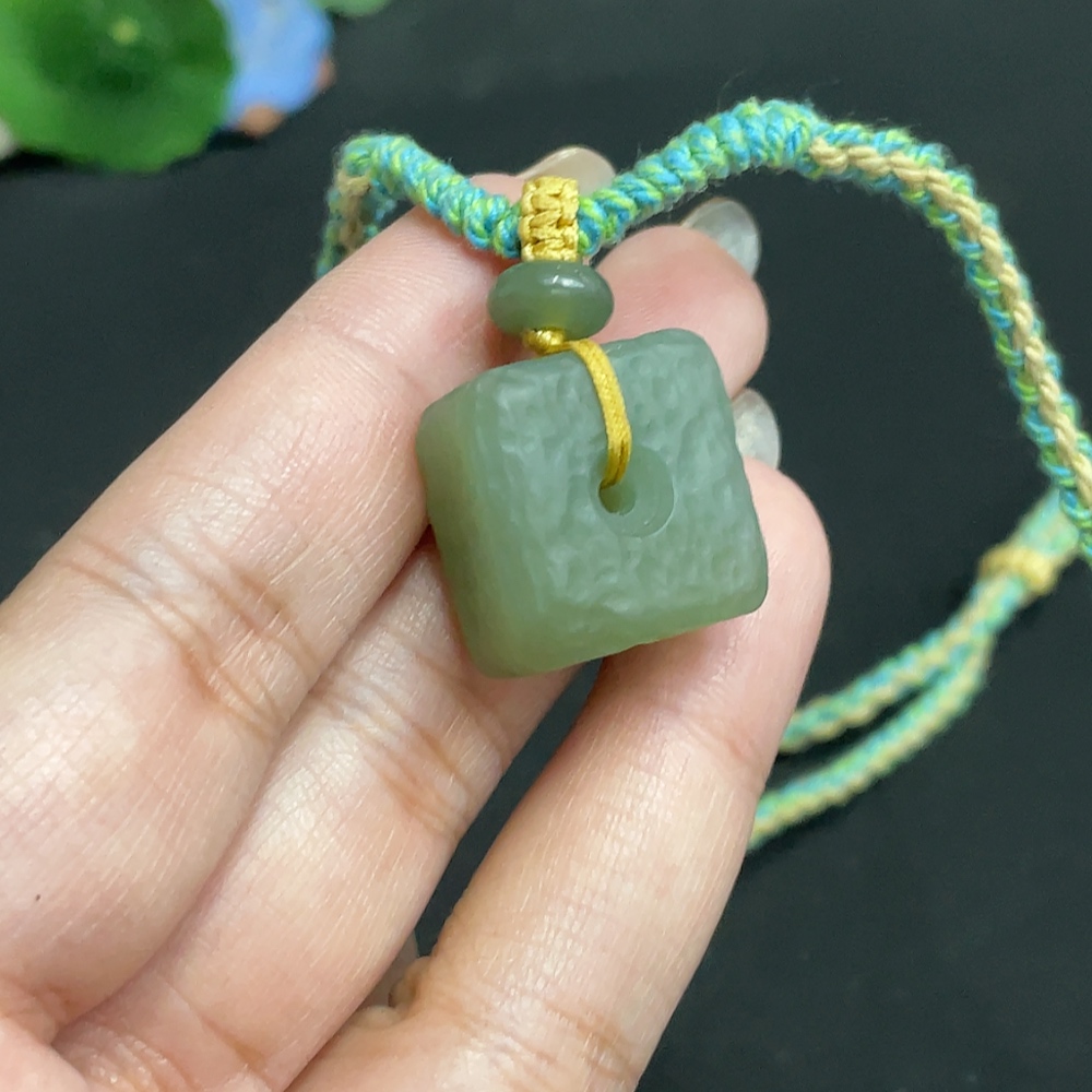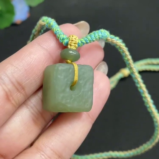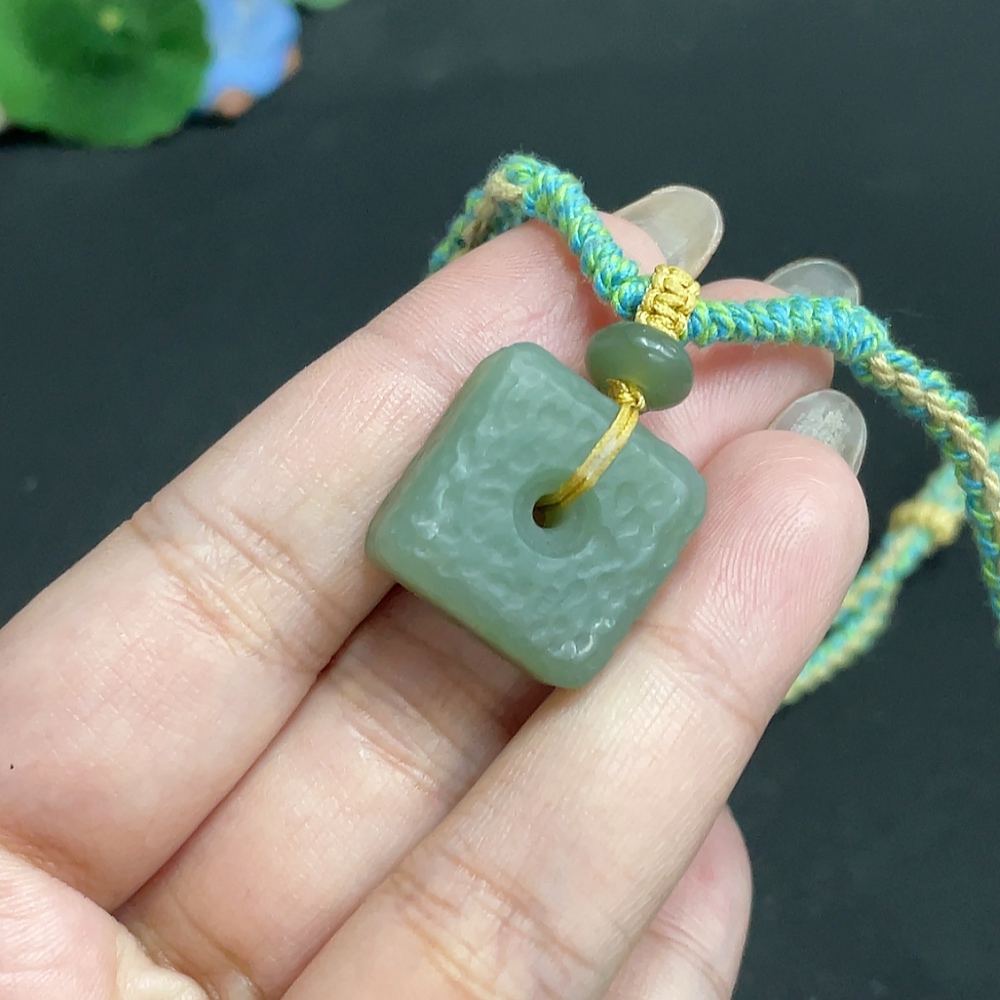 Hetian Jade Pendant Square Buckle Total Weight Approx. [with rope] 14.7g