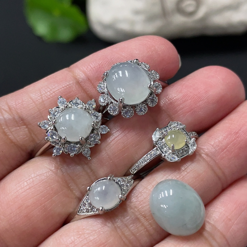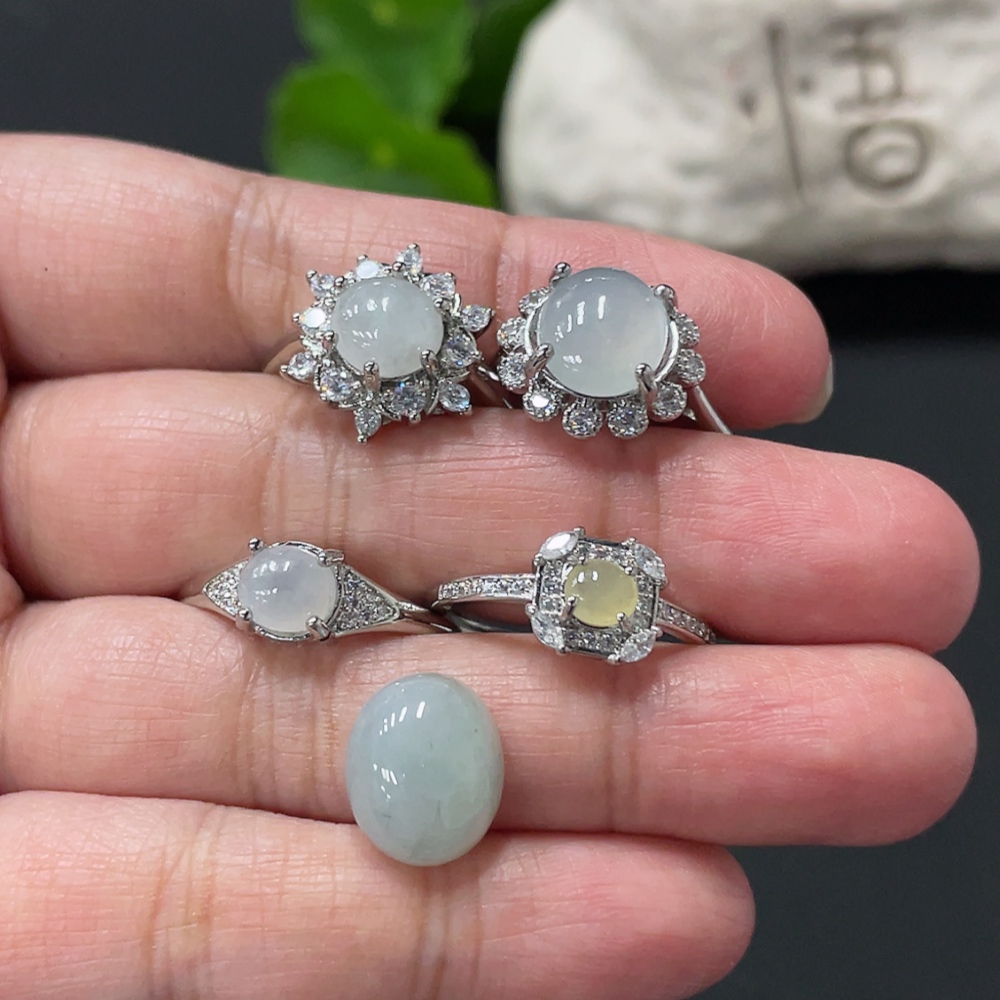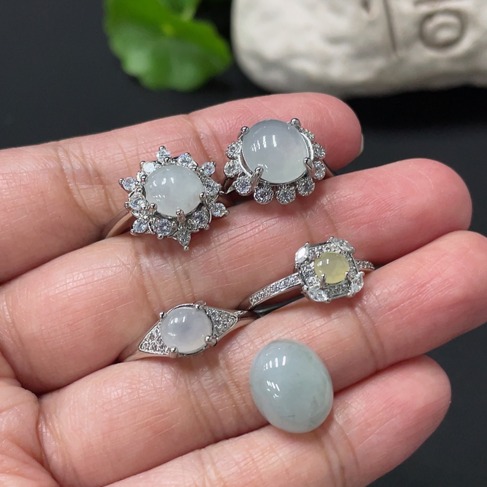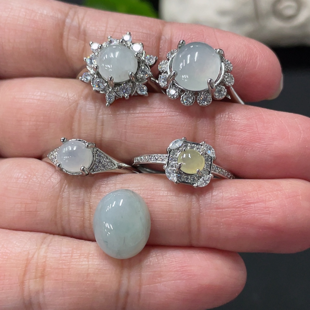 Jadeite Cabochon Solitaire Ring + Cabochon Non-Gold Setting Adjustable Size Total Weight Approx. 10.65g