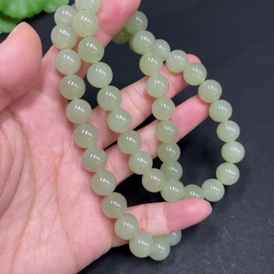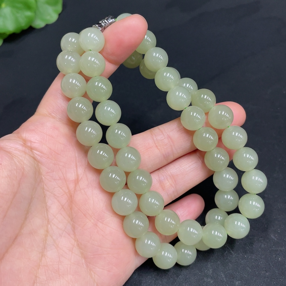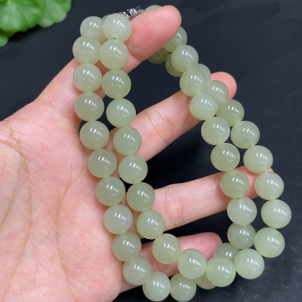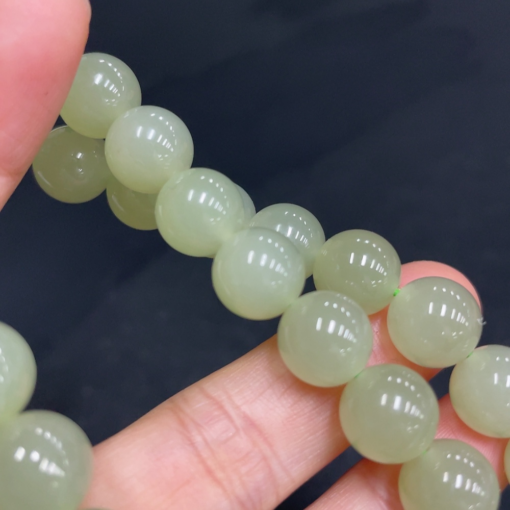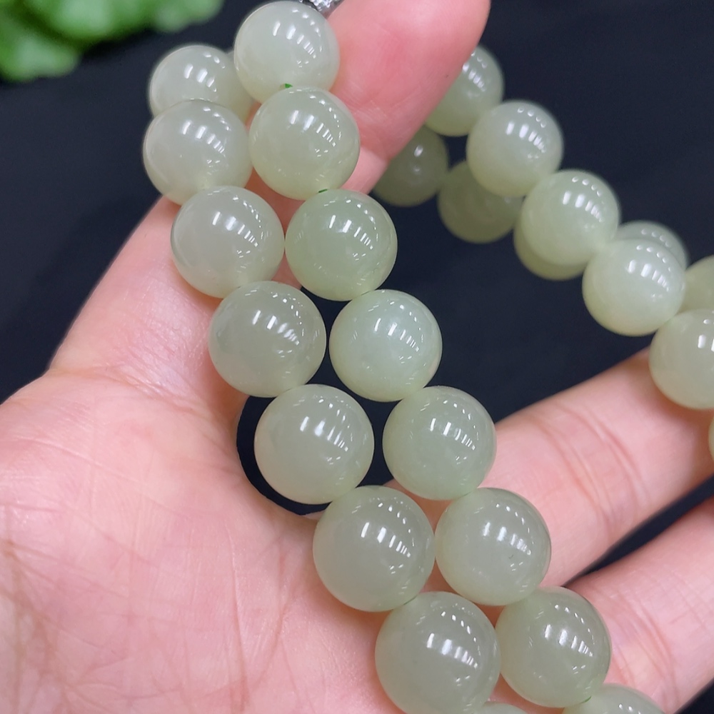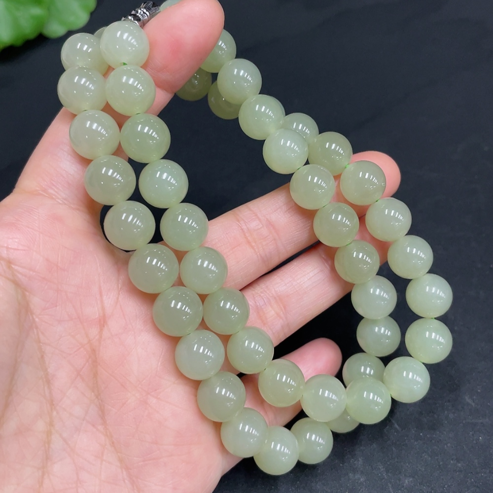 Hetian Jade Bead Necklace, Approx. 9.9mm, Total Weight Approx. 74.8g