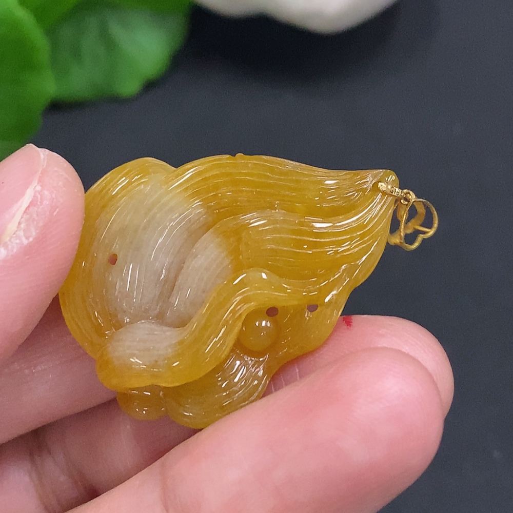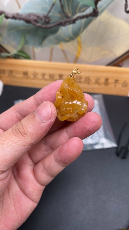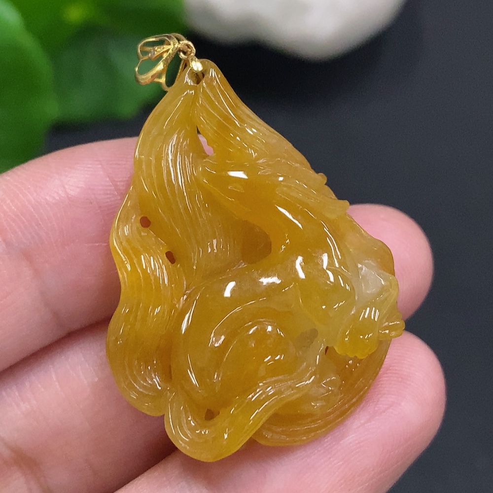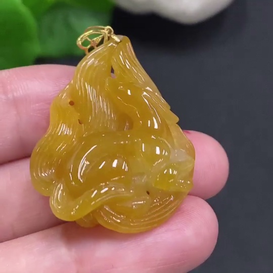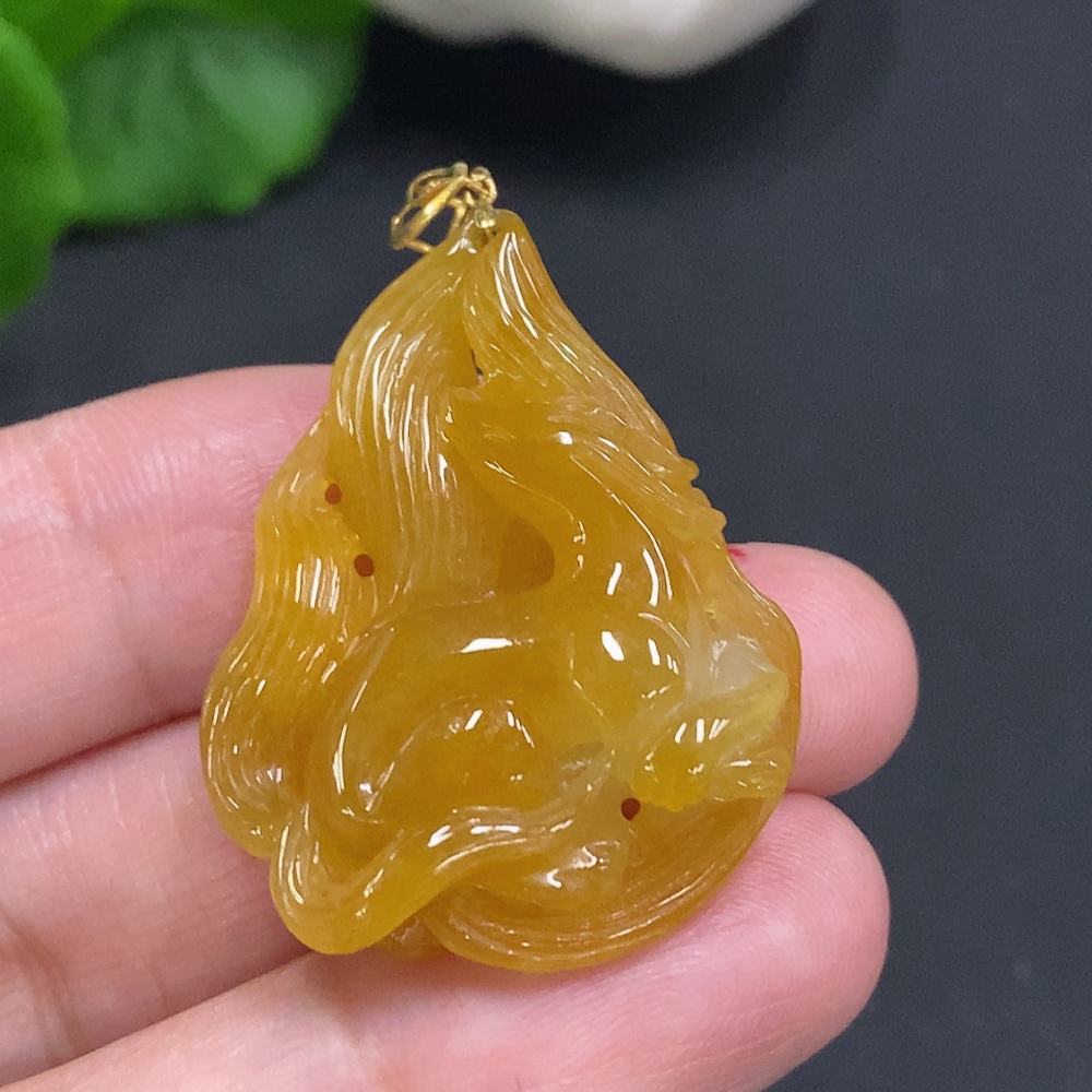 Jadeite Nine-Tailed Fox Pendant with 18K Gold Clasp, Total Weight Approximately 8.6g (Non-Diamond)