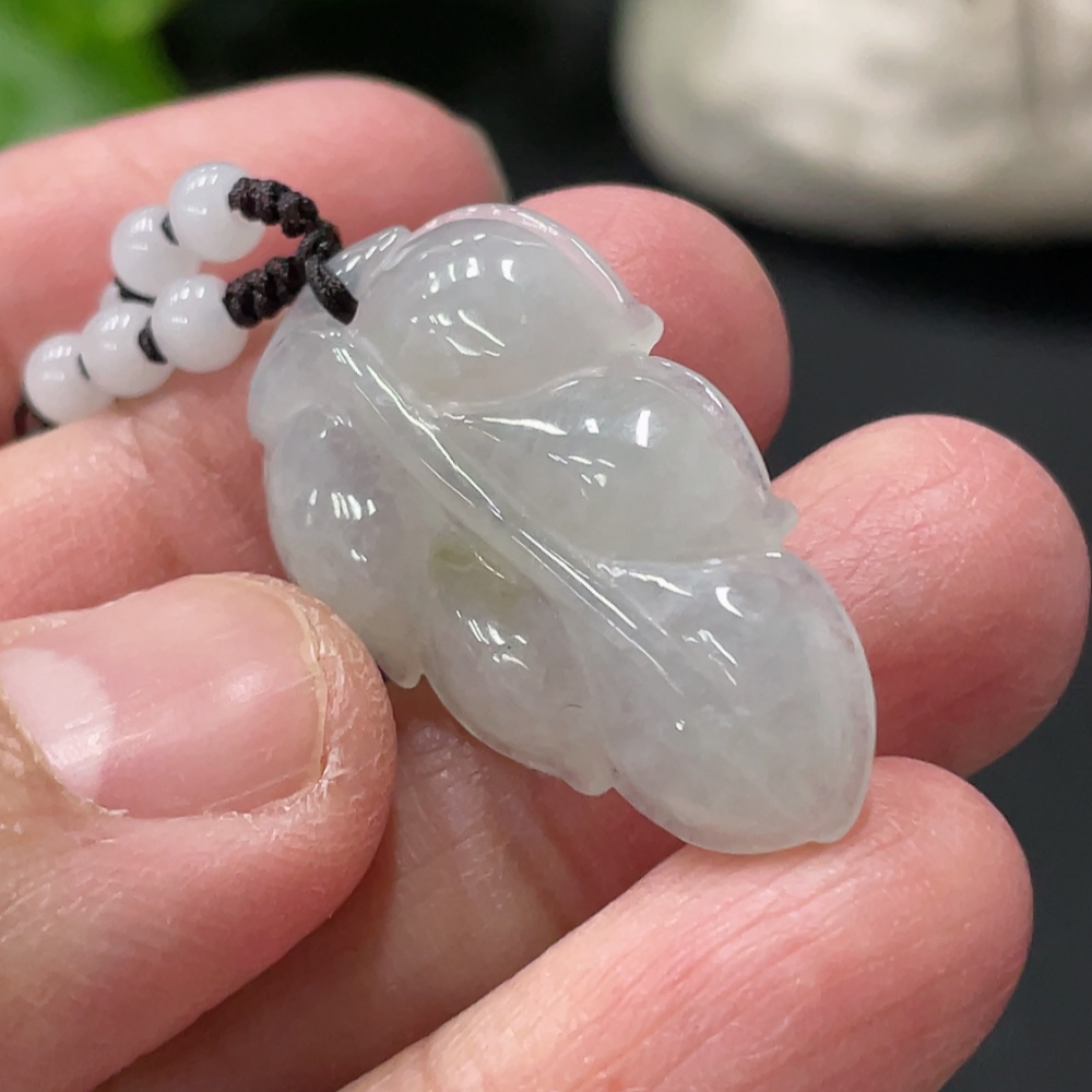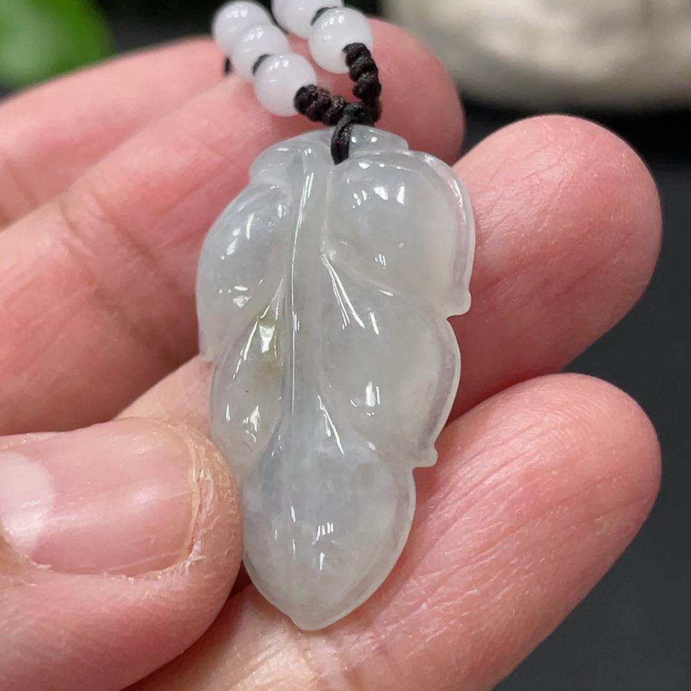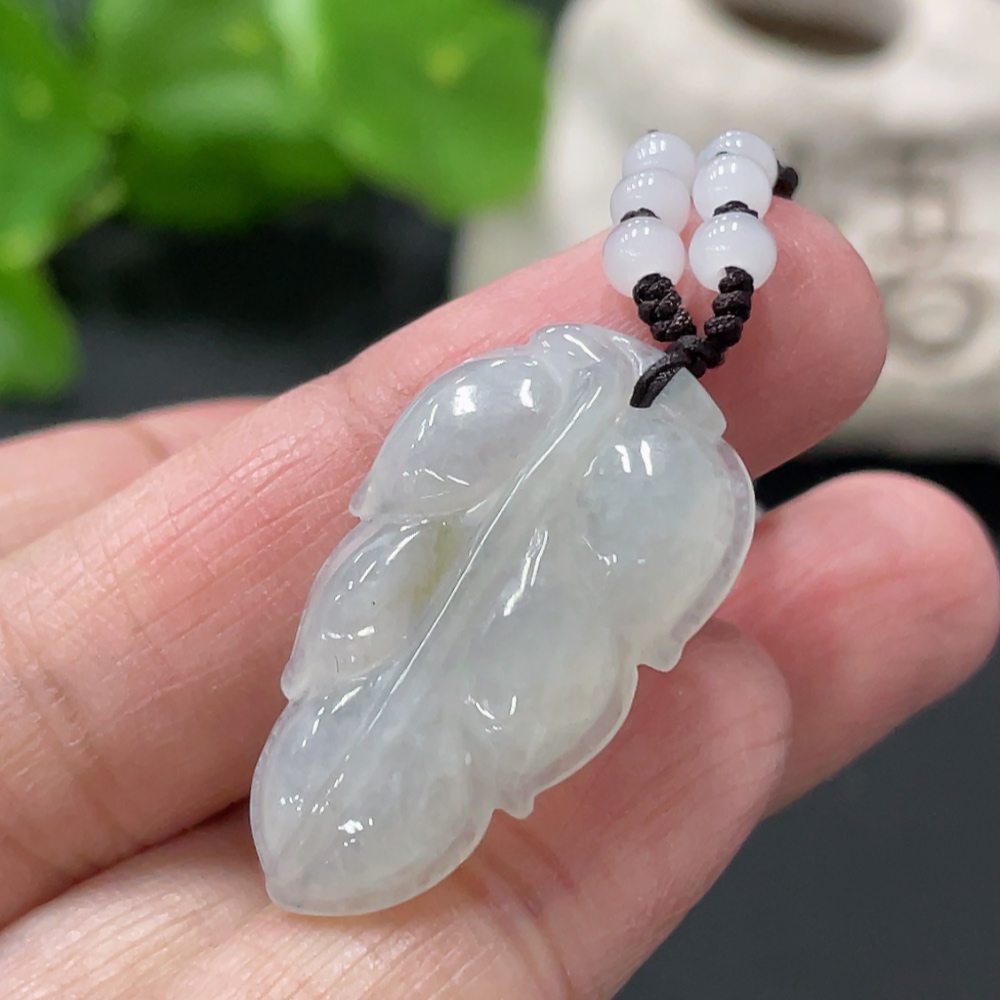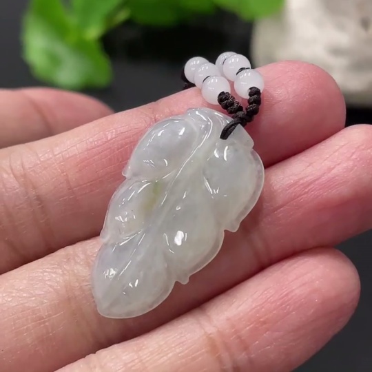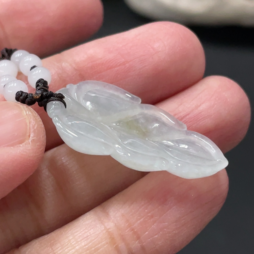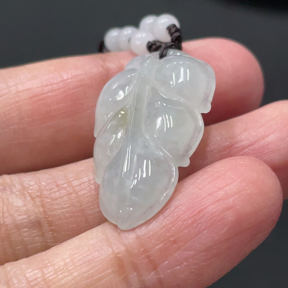 Jadeite Leaf Pendant Total Weight Approx. 5.9g With Non-Grade A Beads