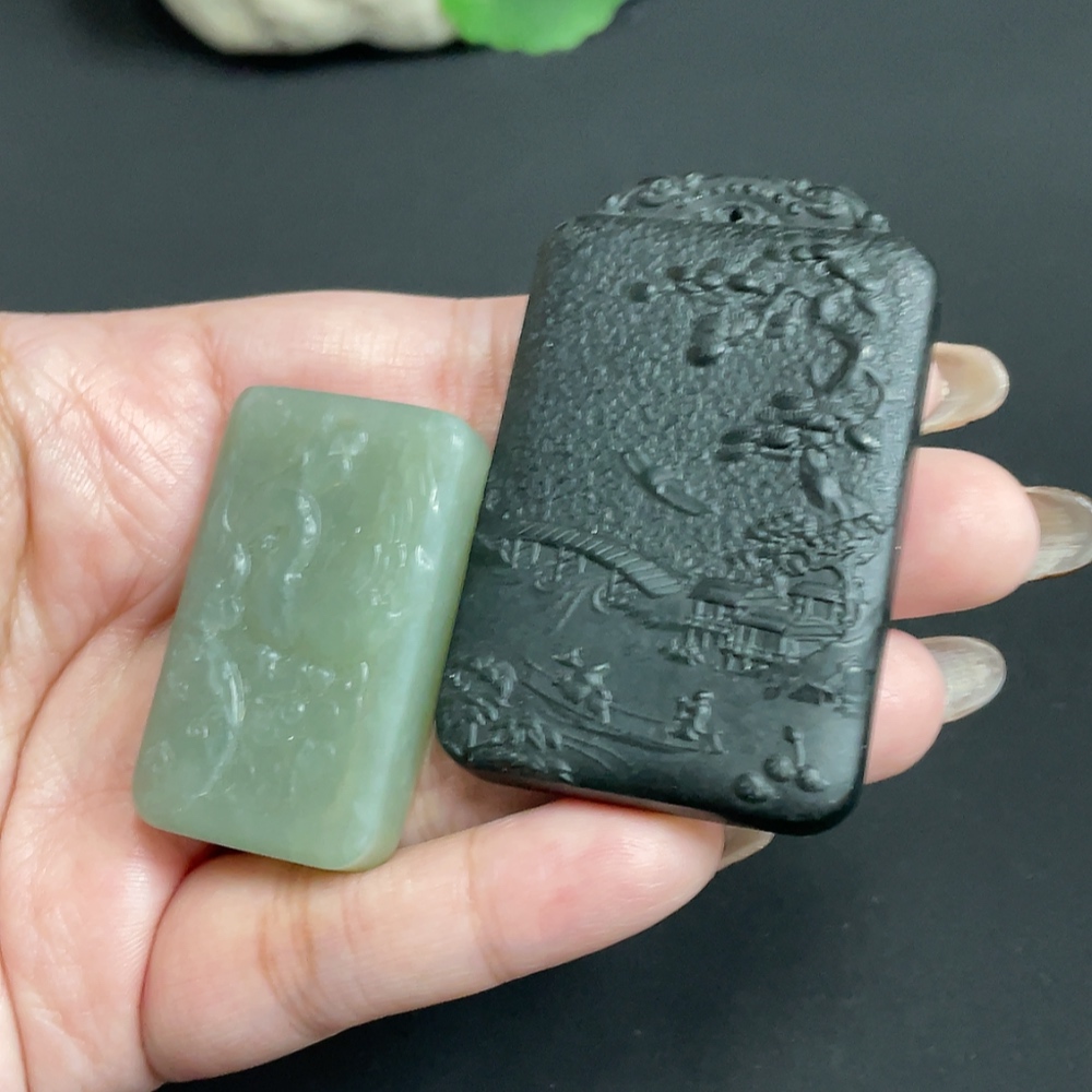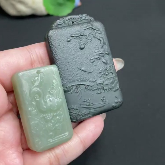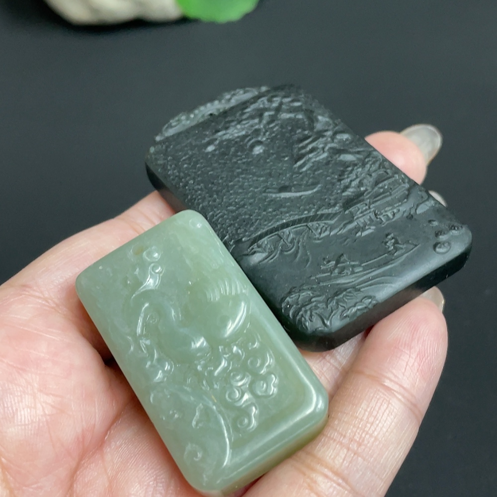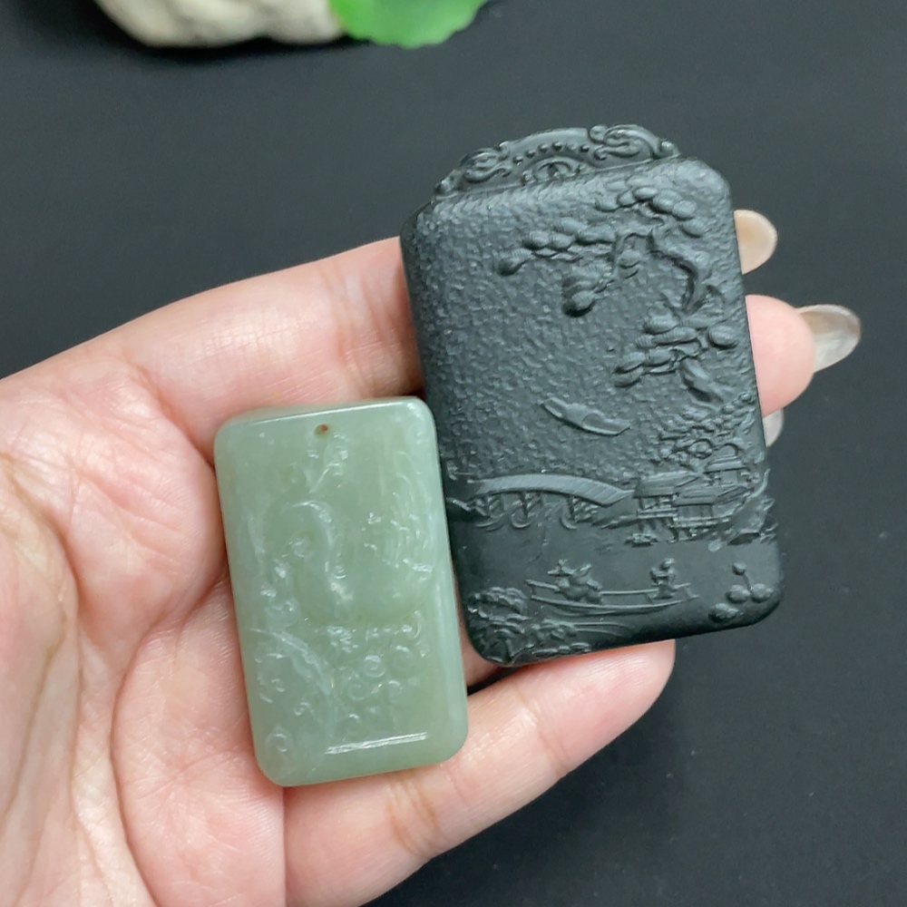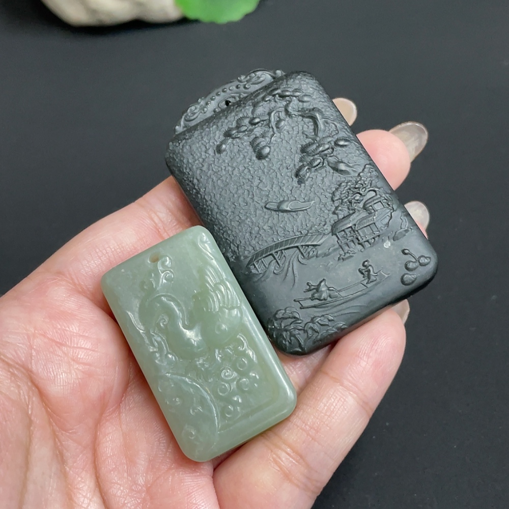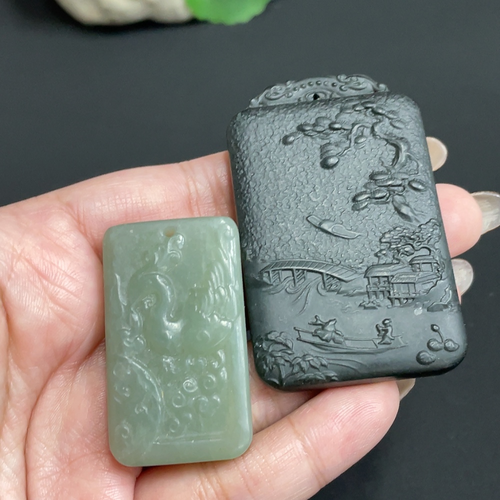Hetian Jade Pendant Phoenix + Landscape Total Weight Approx. 74.3g