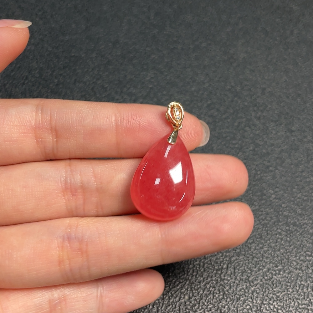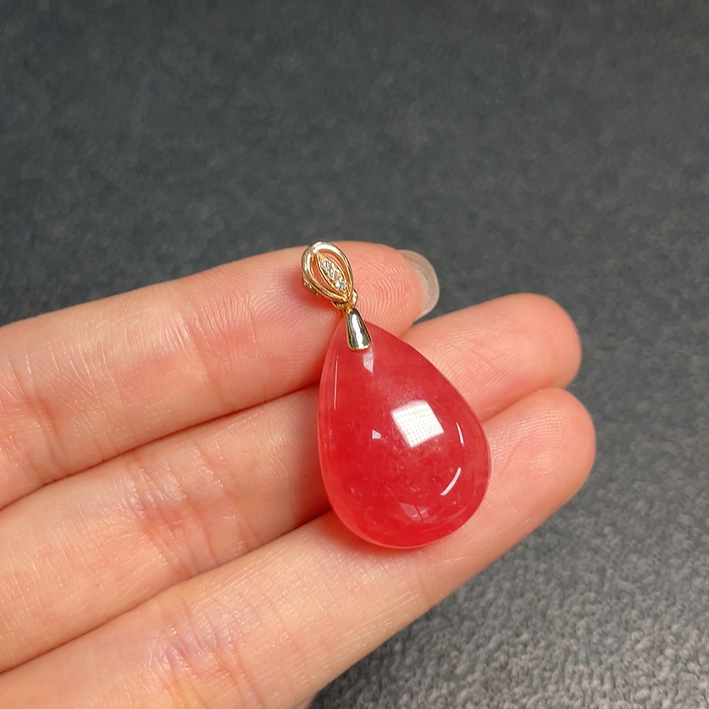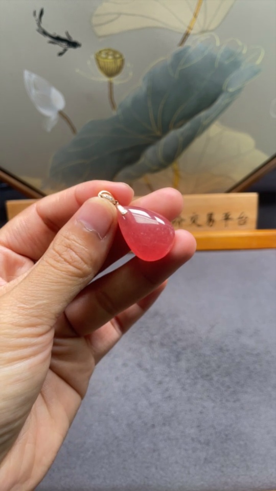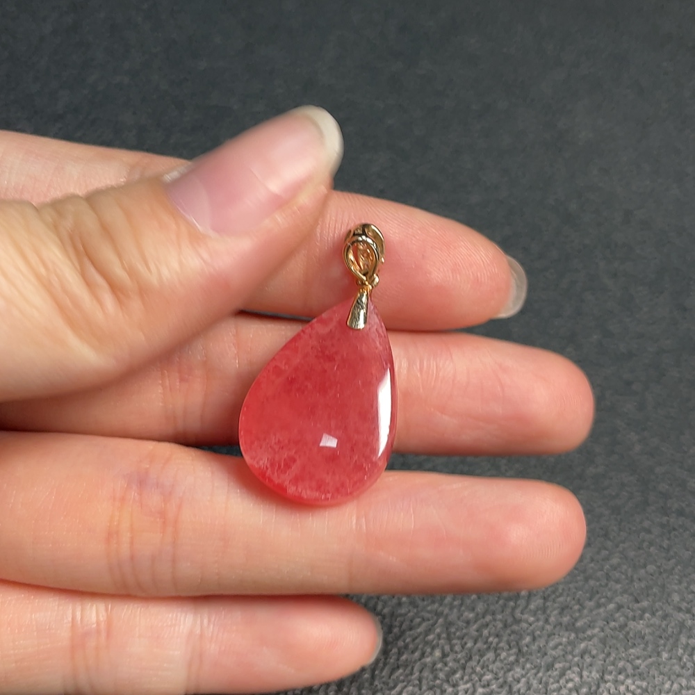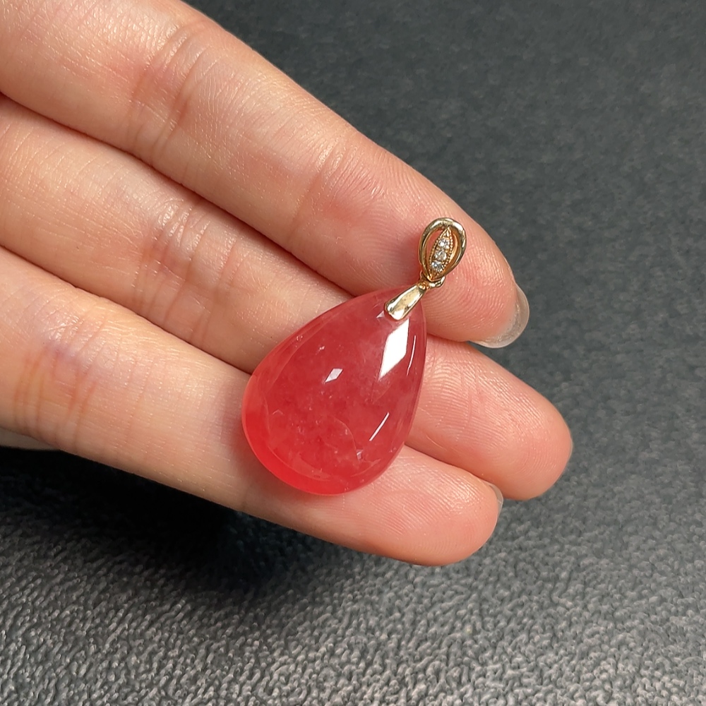 Rhodochrosite Pendant with Visible Organic Matter, 18K Gold Clasp (35% Au), Accented with Diamonds, Total Weight Approximately 6.57g