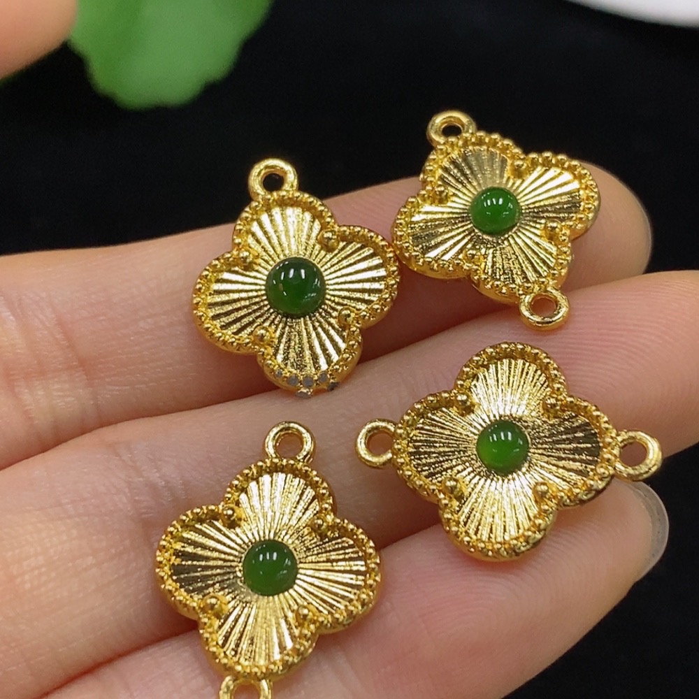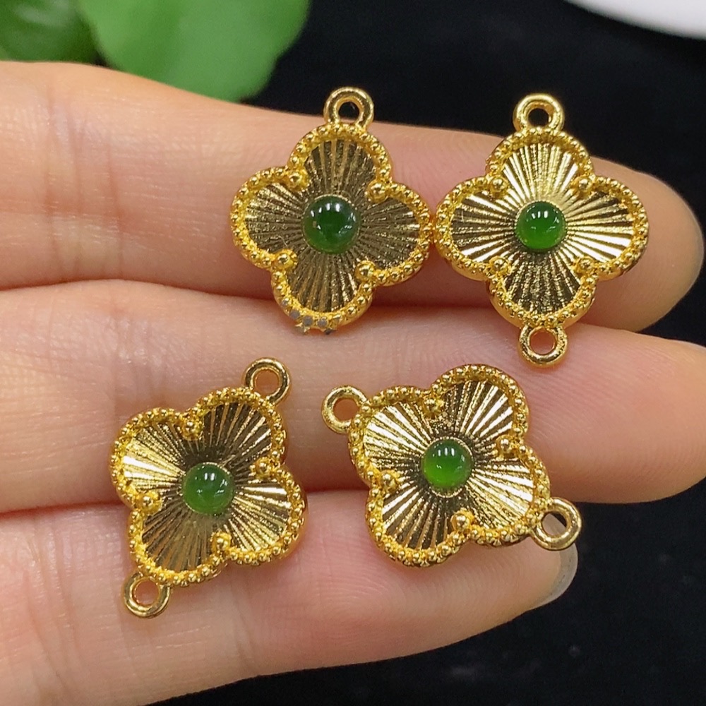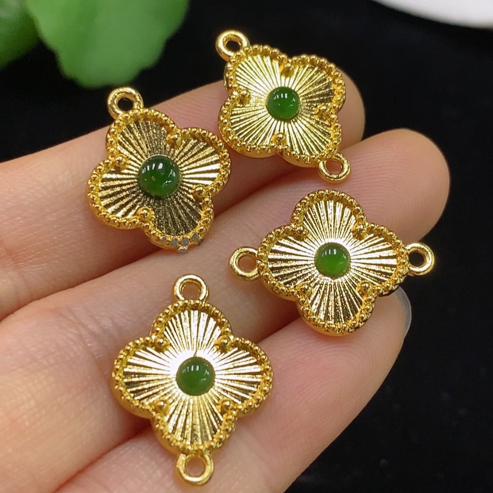 Jadeite Cabochon Inlaid Pendant Non-Gold Total Weight Approximately 4.27g