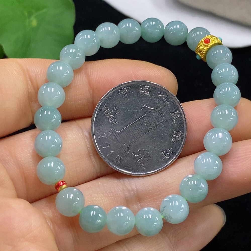 Jadeite Bracelet Approx.6.7mm Red Marked AU99% Non-Gold Others Non-A Beads Fragile Gold Total Weight Approx.14.43g