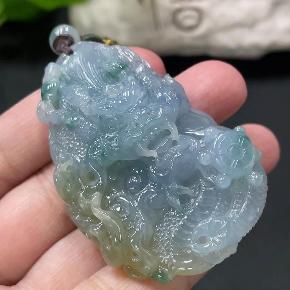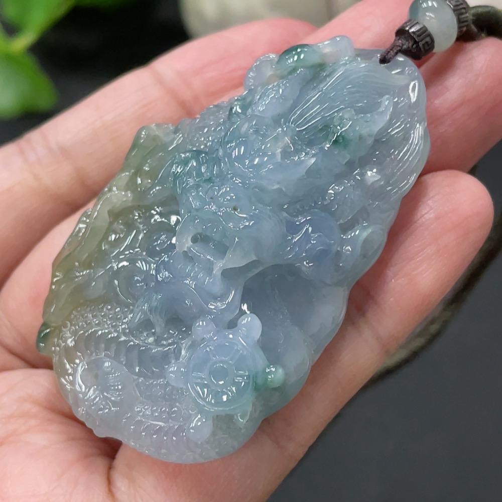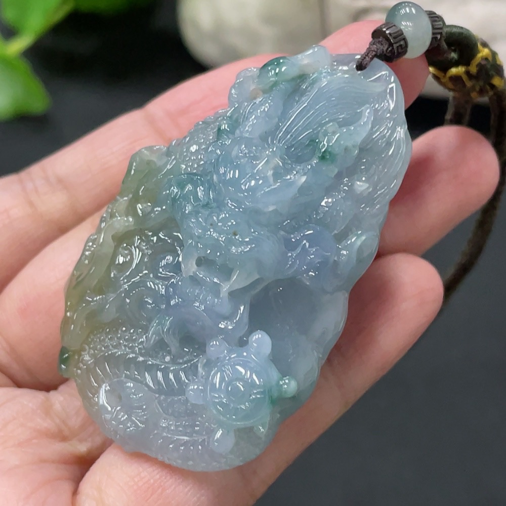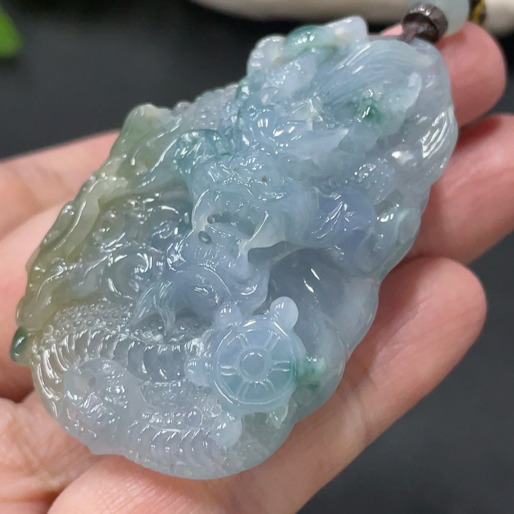 Jadeite Dragon Soaring Worldwide Pendant Total Weight Approx. 46.3g (Including Rope) Master Collection Certificate