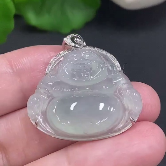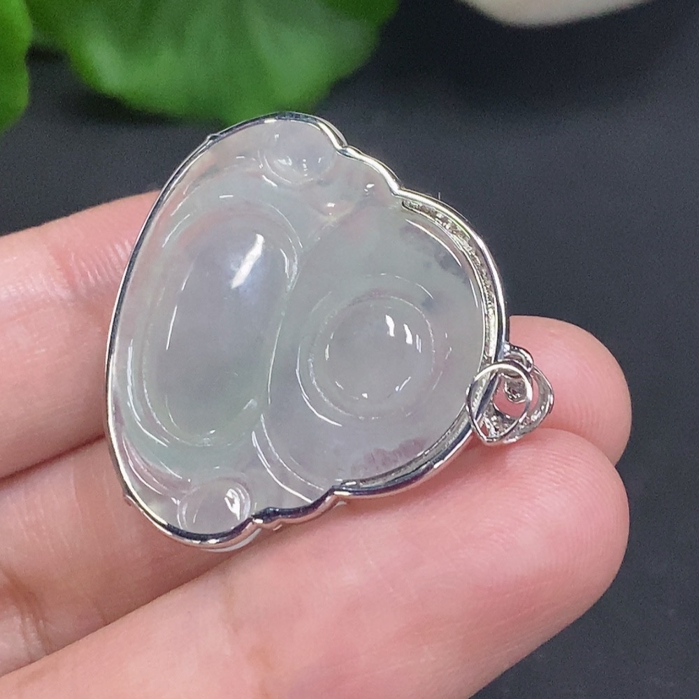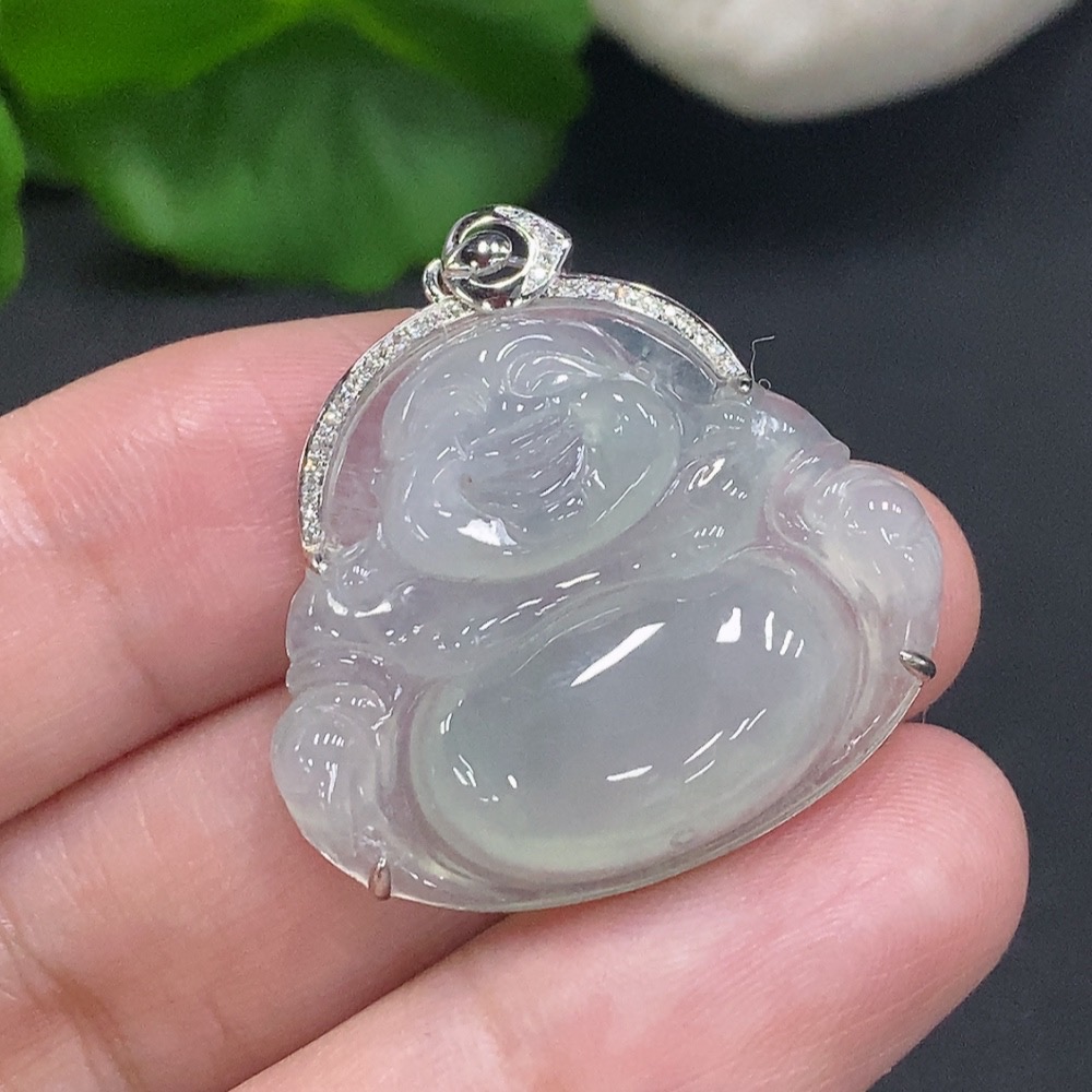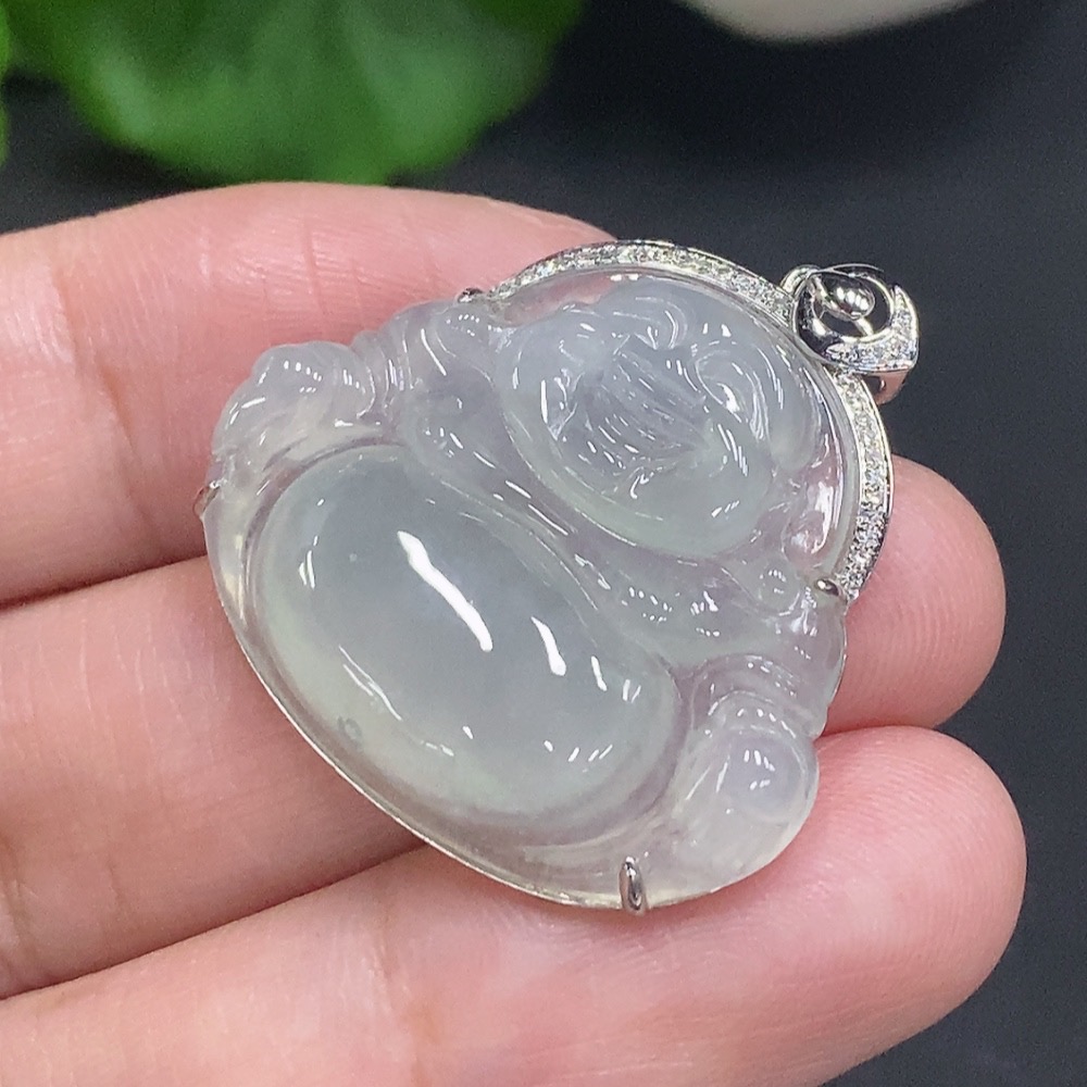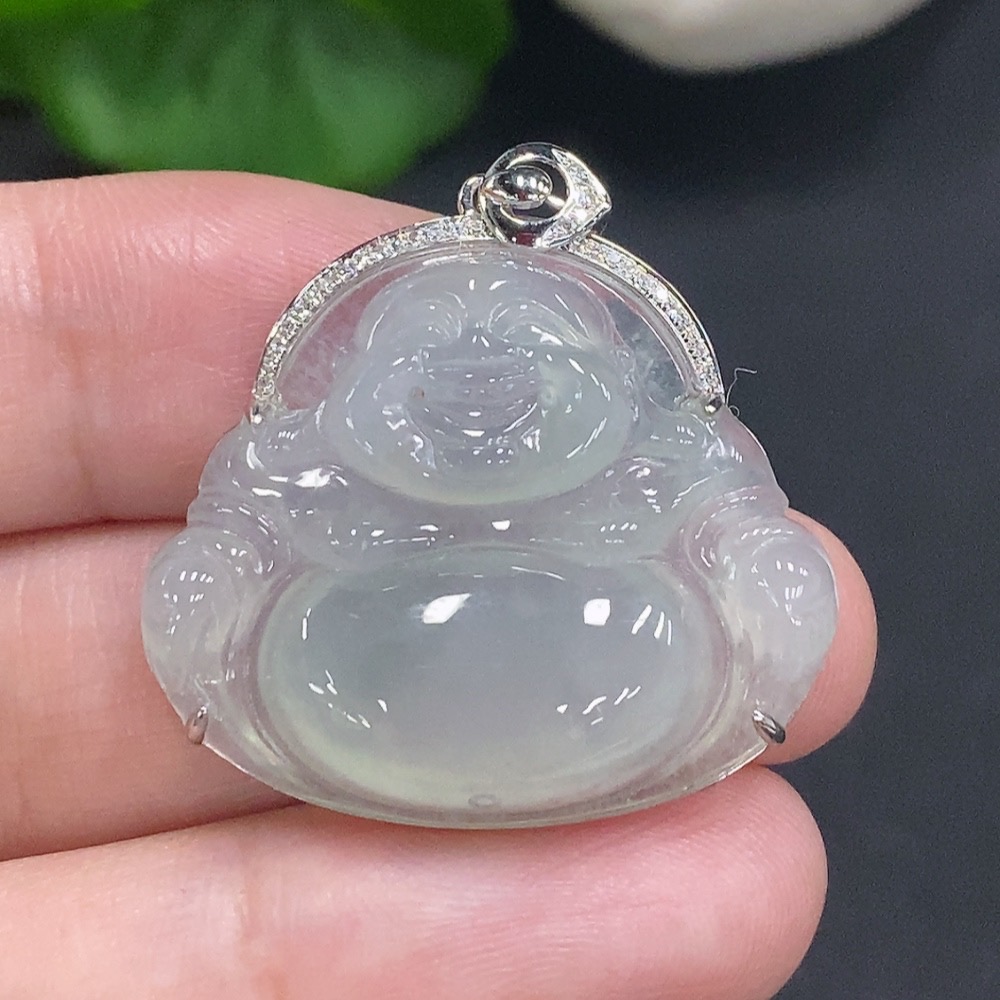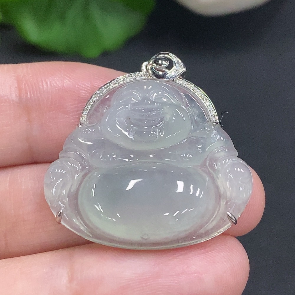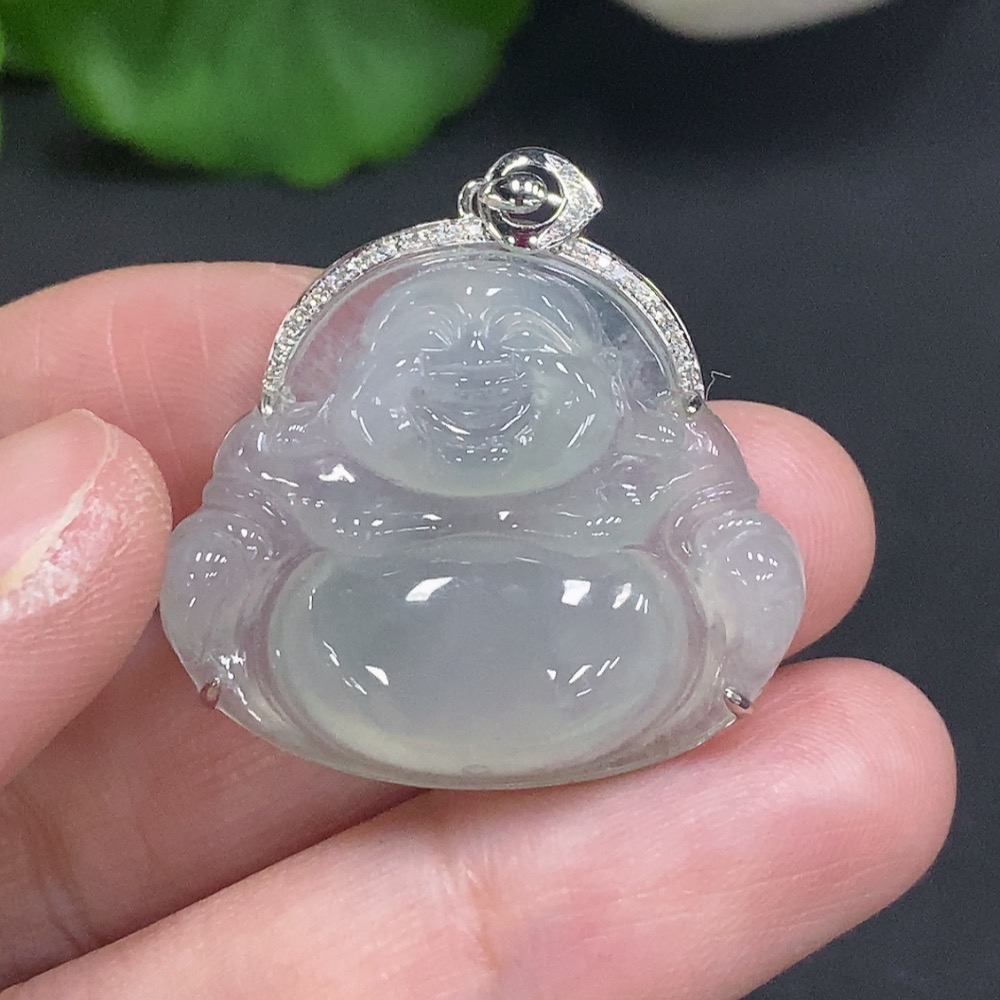 Jadeite Buddha Pendant with 18K Gold, Total Weight Approx. 6g, Diamond Accented