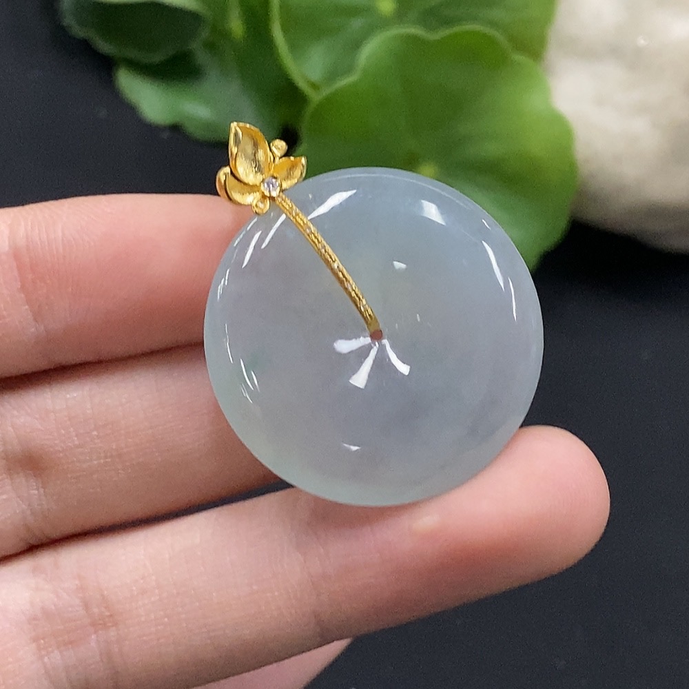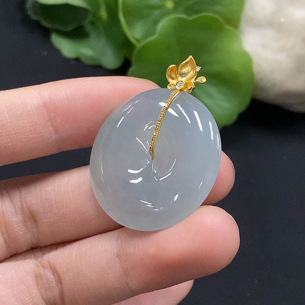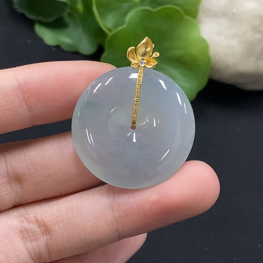 Jadeite Safety Buckle Pendant with 18K Gold and Diamond Accents, Total Weight Approximately 9.94g