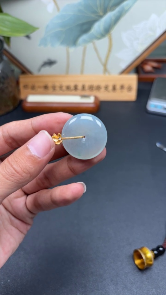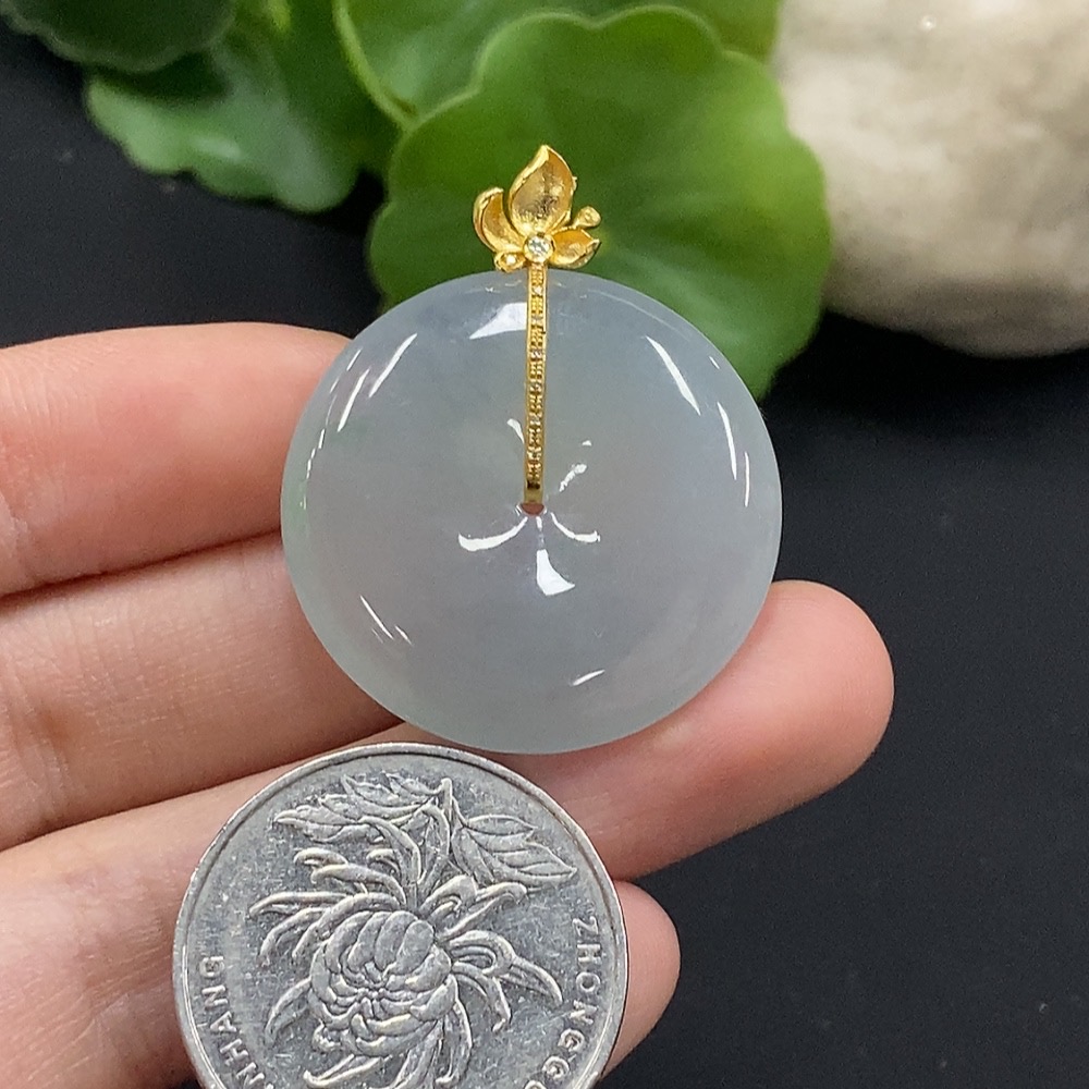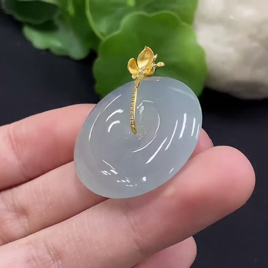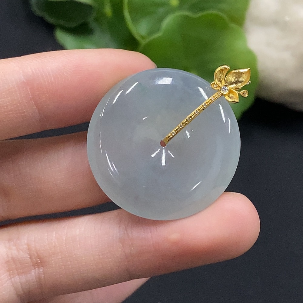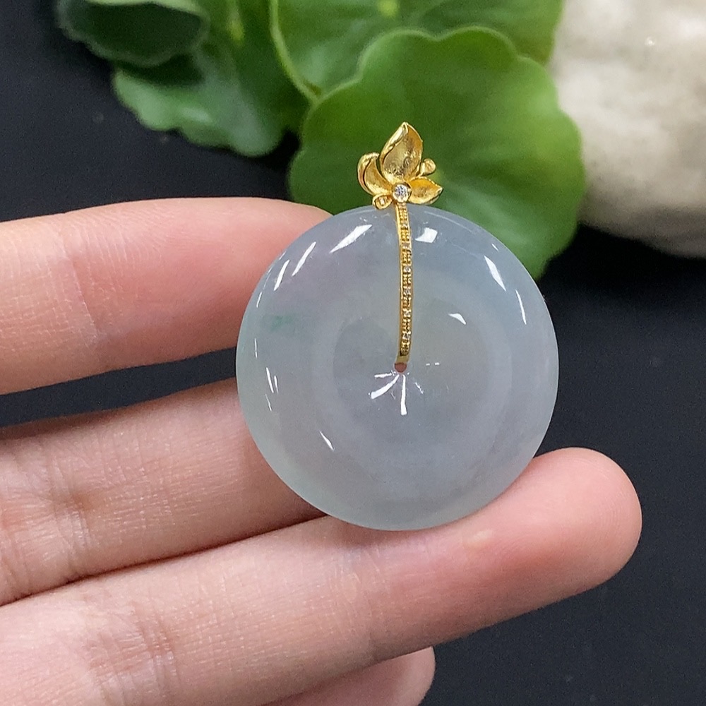Jadeite Safety Buckle Pendant with 18K Gold and Diamond Accents, Total Weight Approximately 9.94g