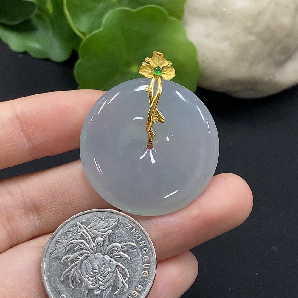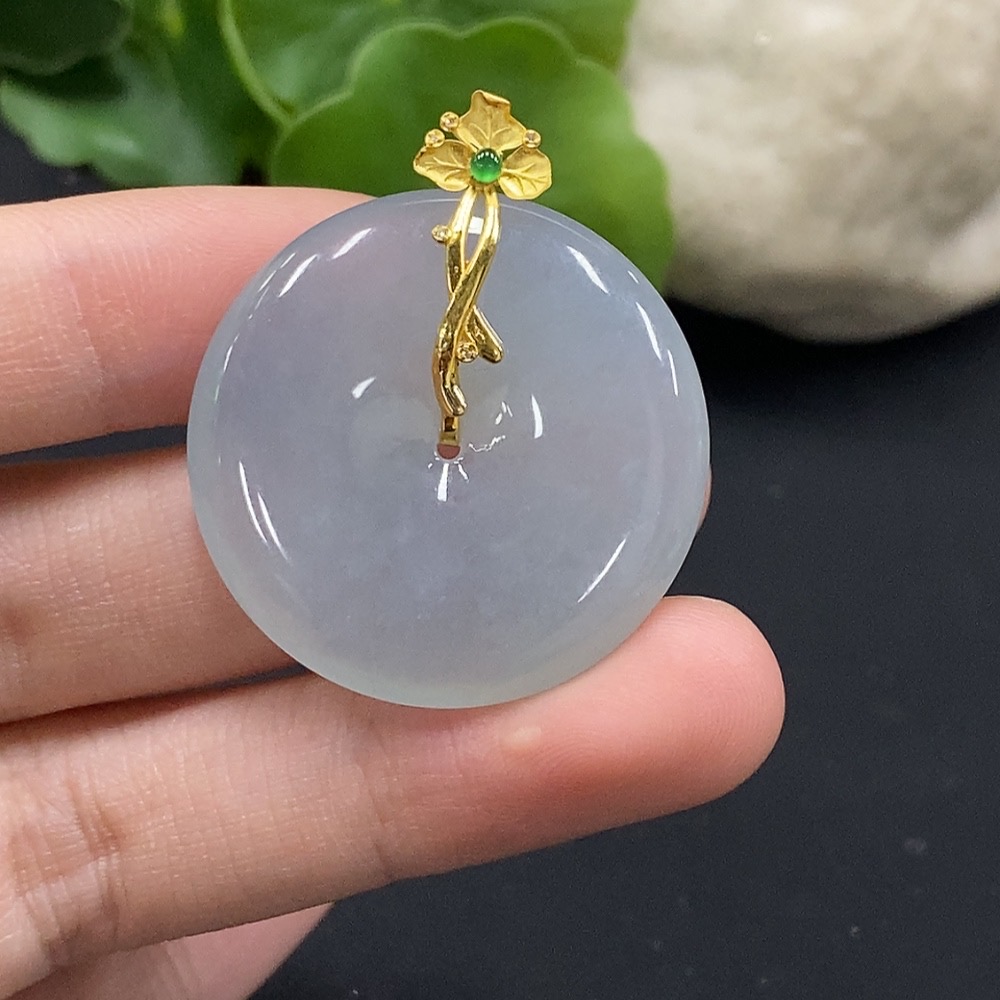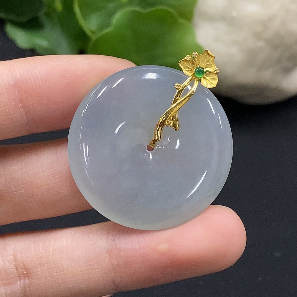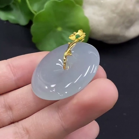 Jadeite Peace Knot Pendant with 18K Gold and Diamond Accents, Total Weight Approx. 12g