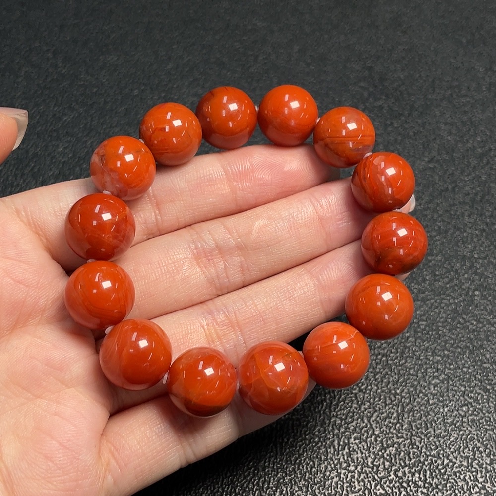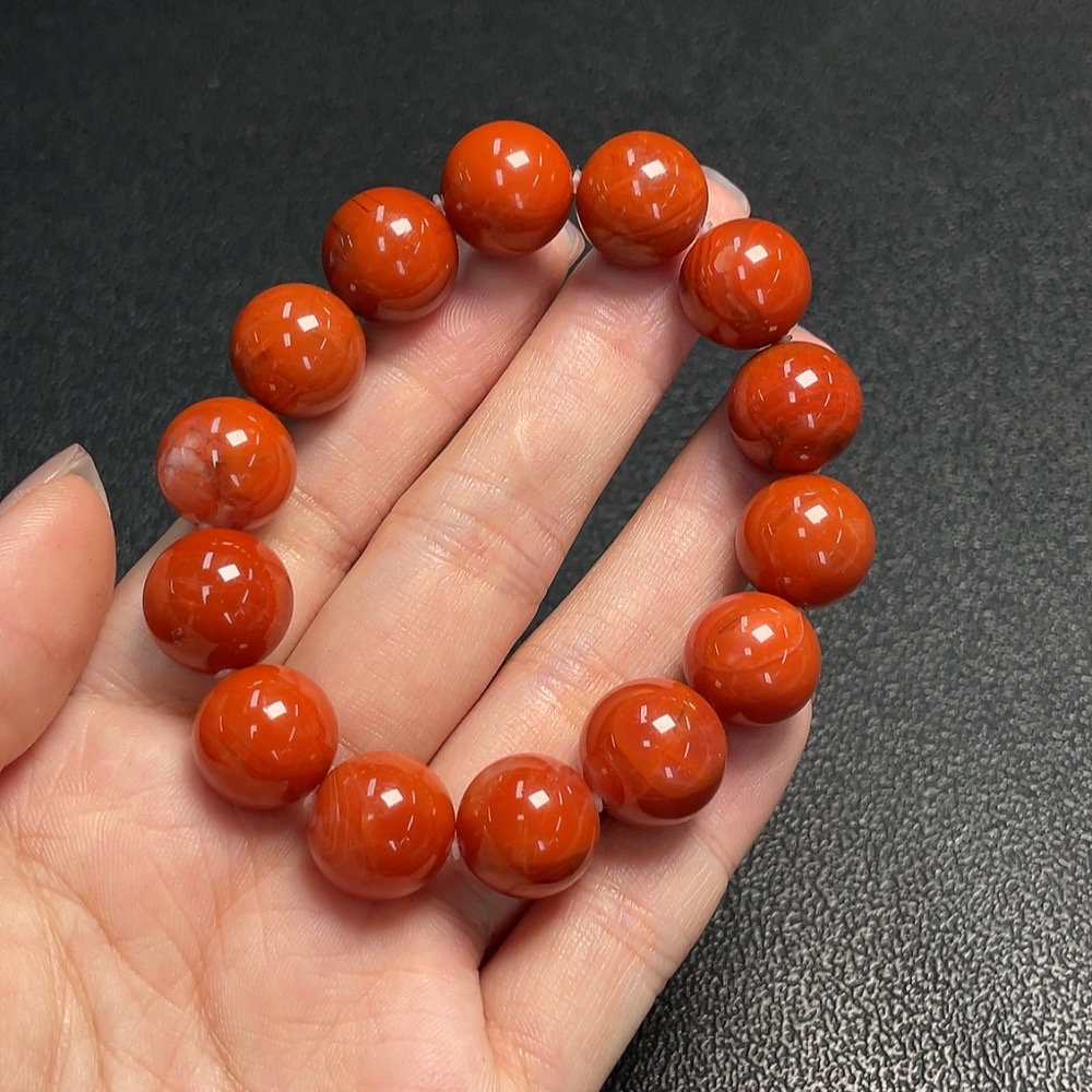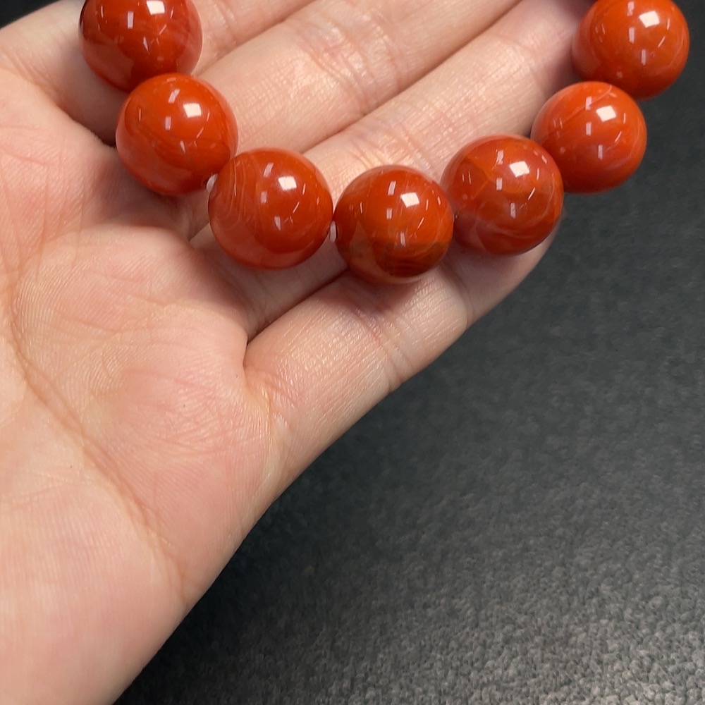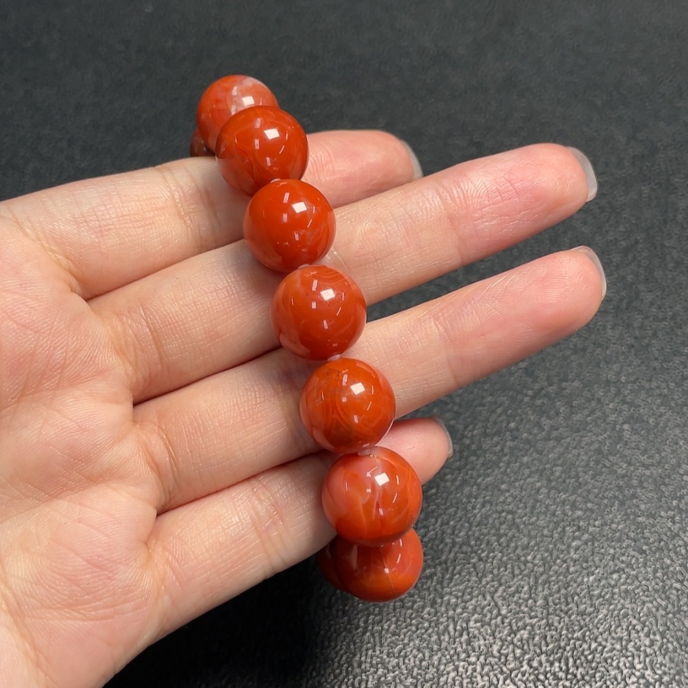 Red Agate Bracelet with Visible Organic Matter, Total Weight Approx. 45.8g, Size About 13mm