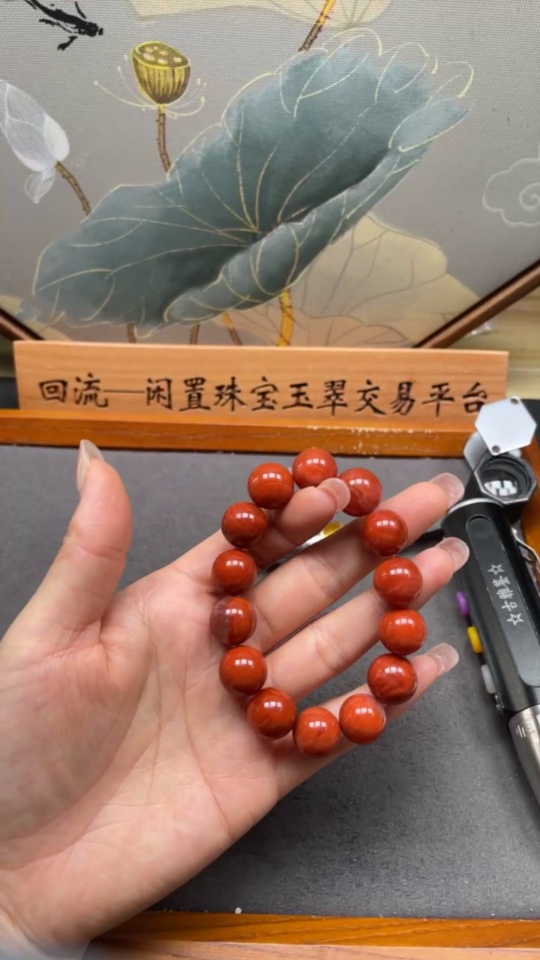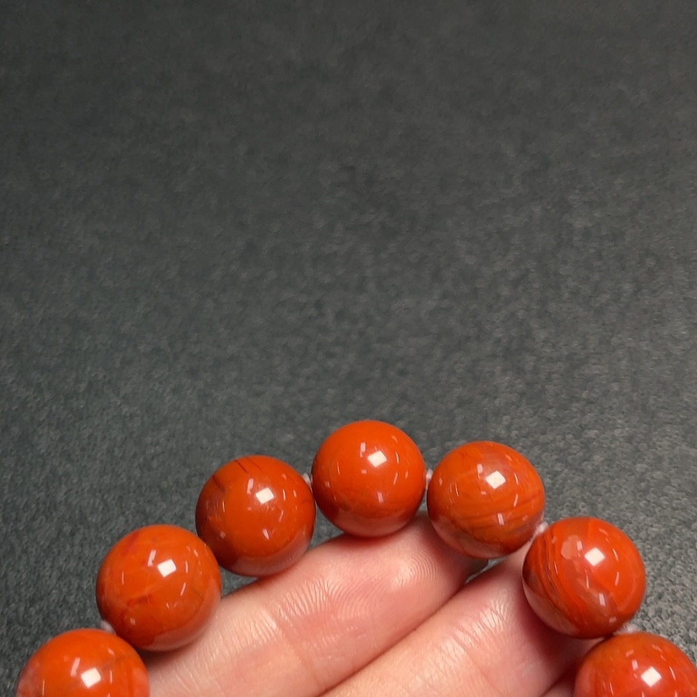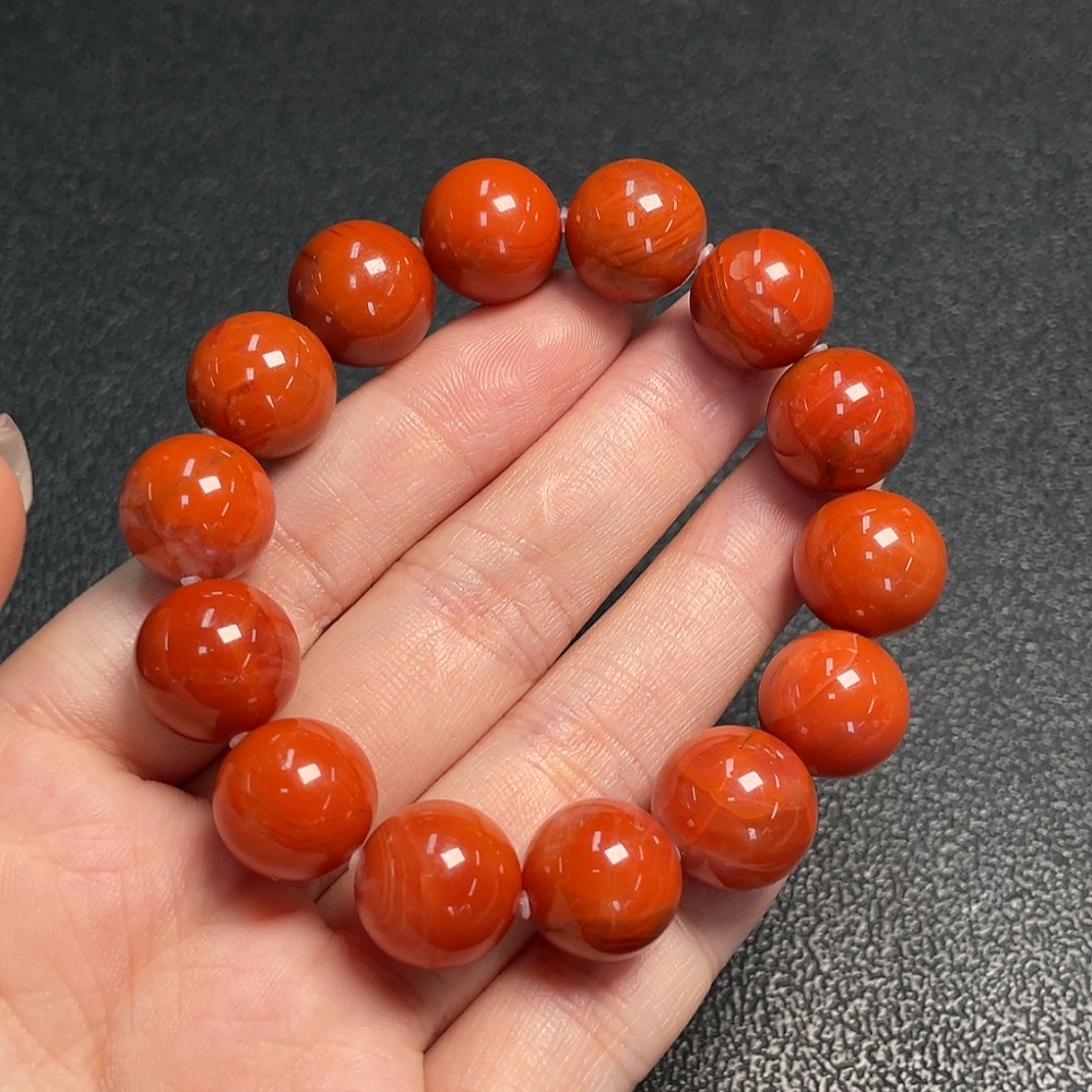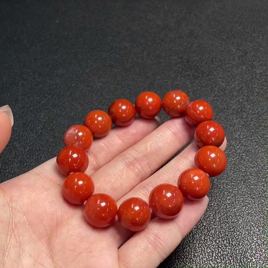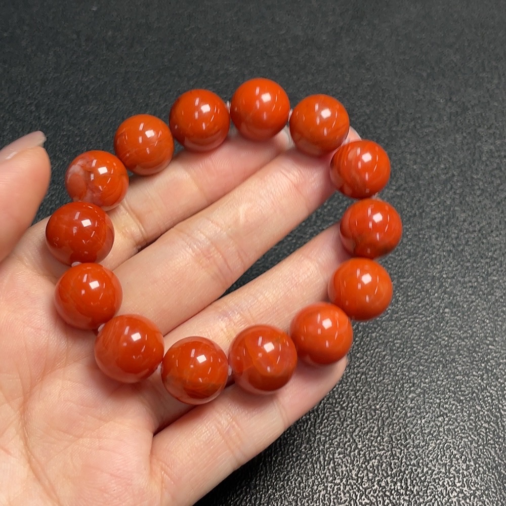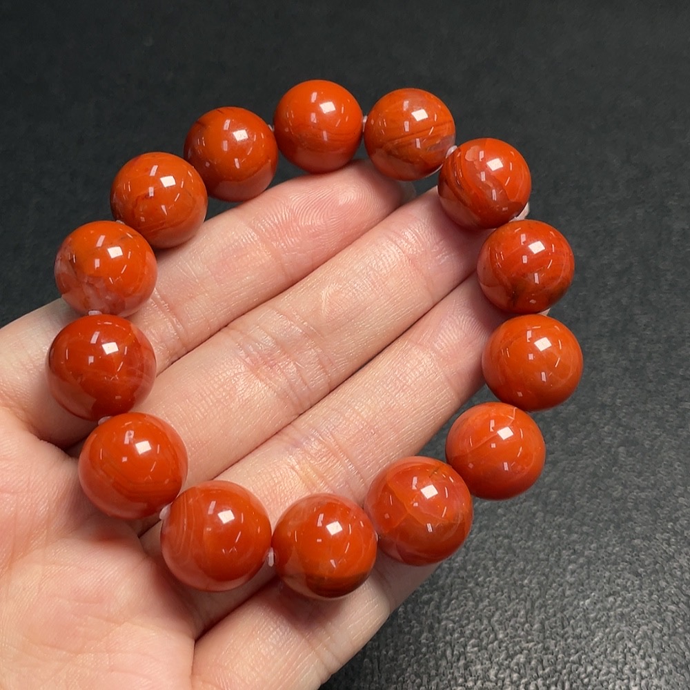 Red Agate Bracelet with Visible Organic Matter, Total Weight Approx. 45.8g, Size About 13mm