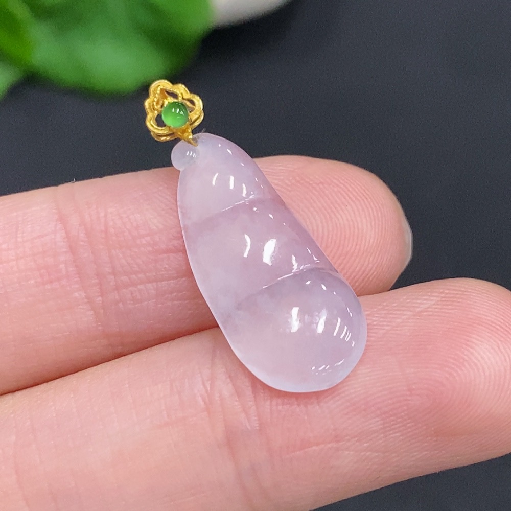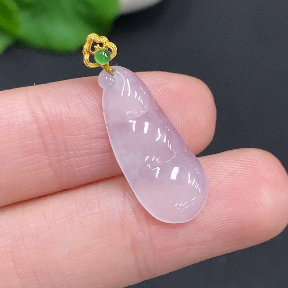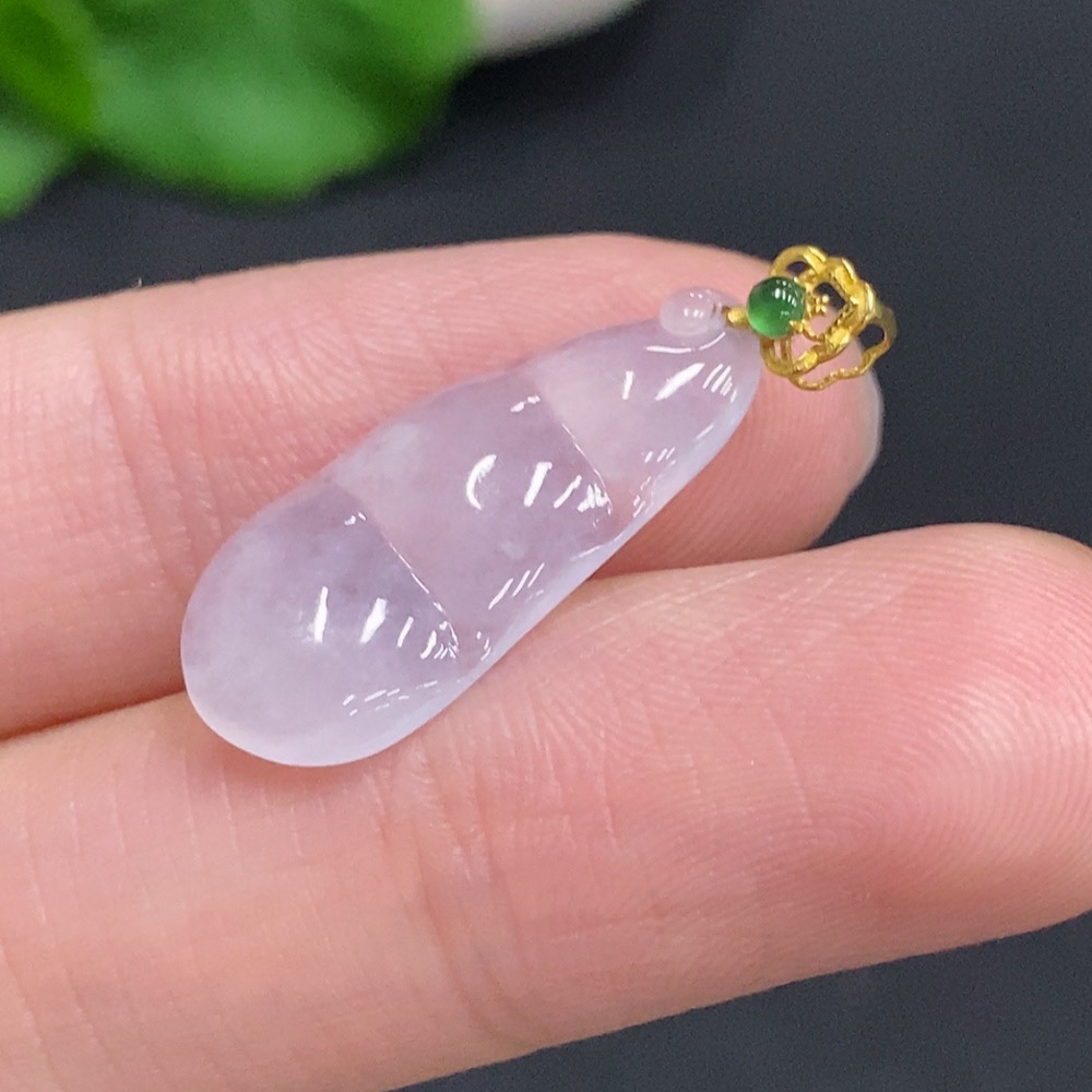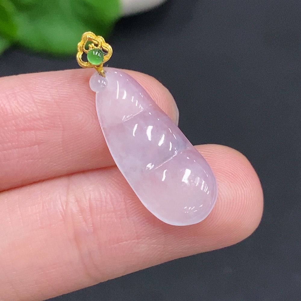 Jadeite Lucky Bean Pendant with 18k Gold Clasp, Total Weight Approximately 1.4g