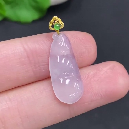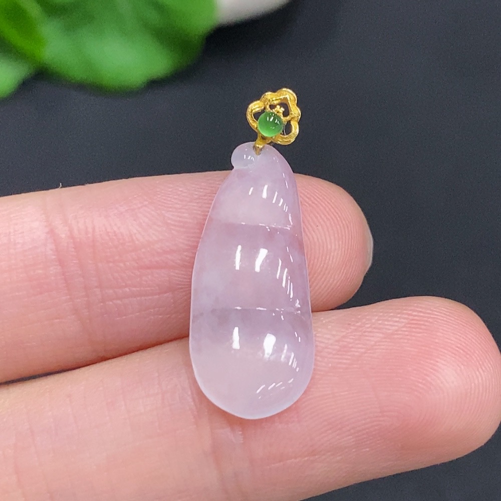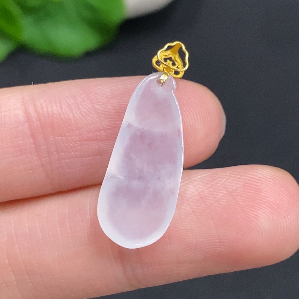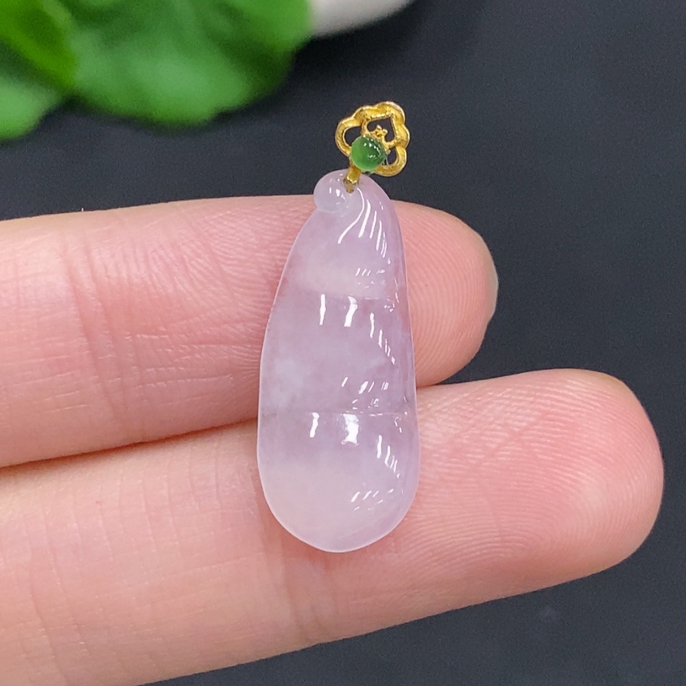 Jadeite Lucky Bean Pendant with 18k Gold Clasp, Total Weight Approximately 1.4g