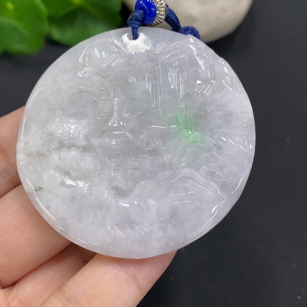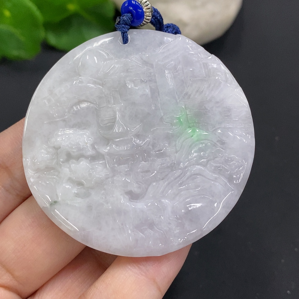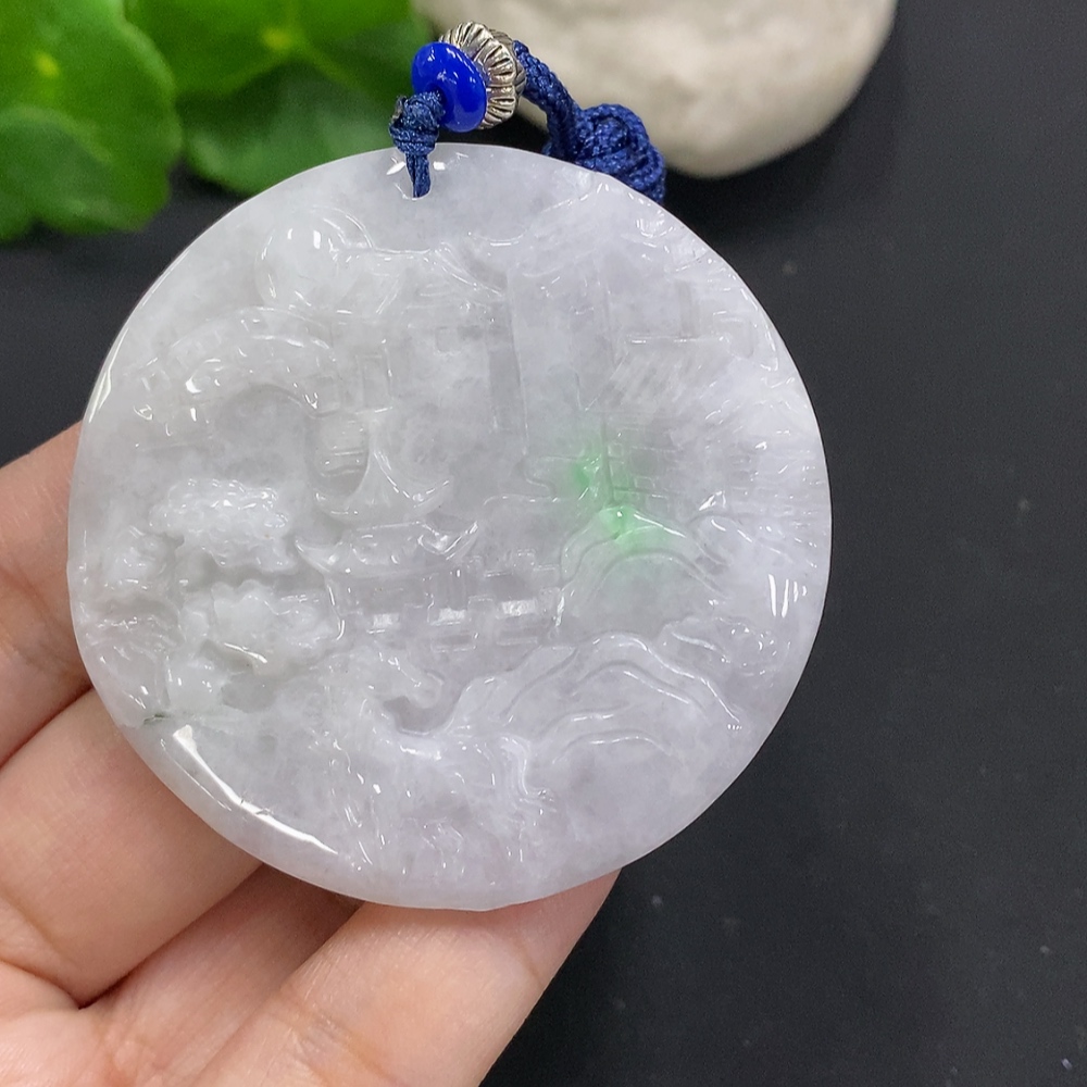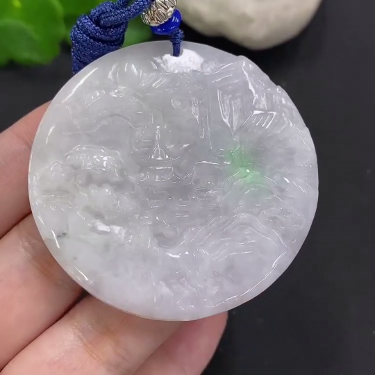 Jadeite landscape pendant with total weight of about 36g (matching beads not grade A)