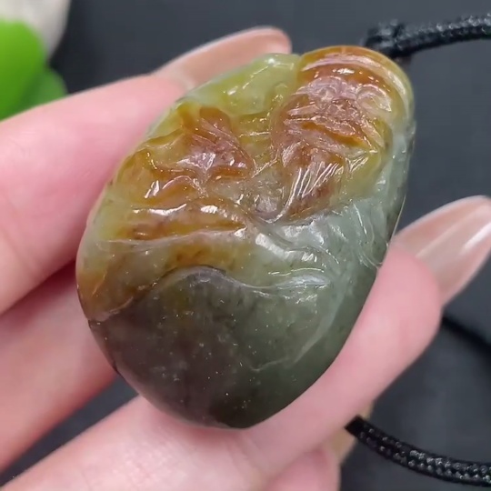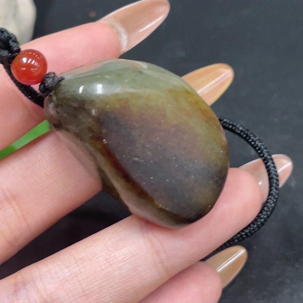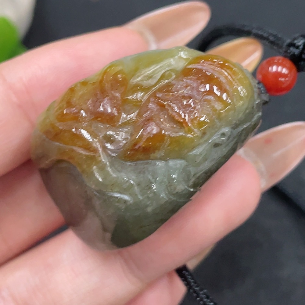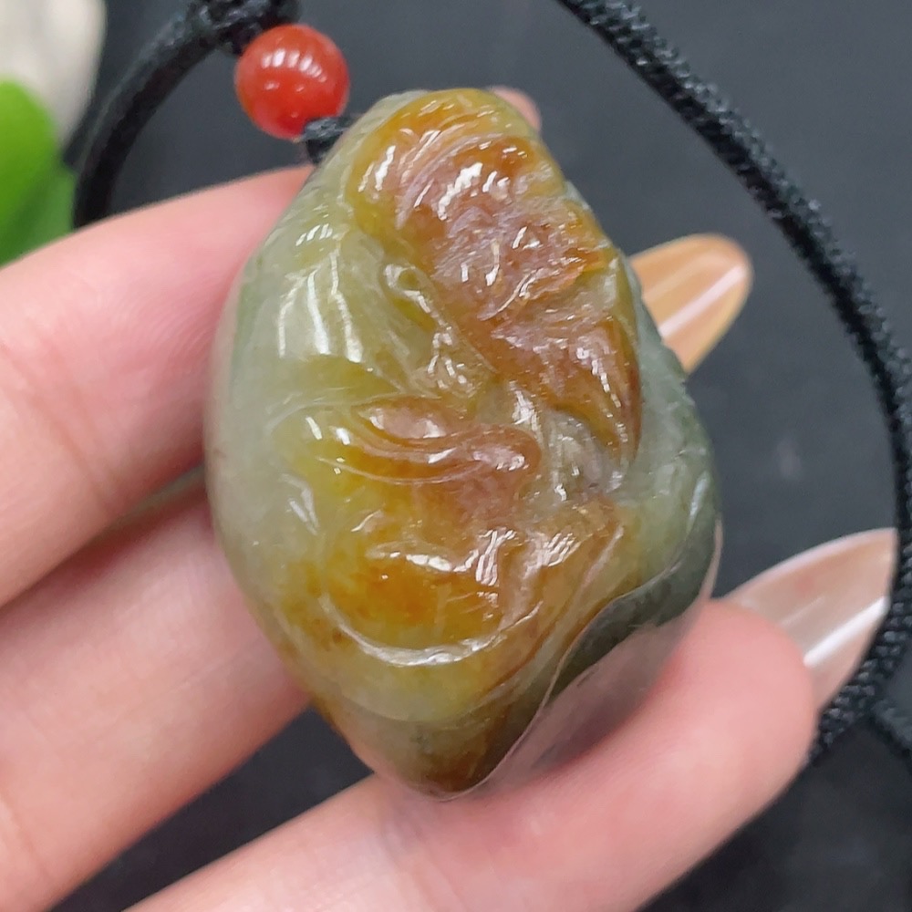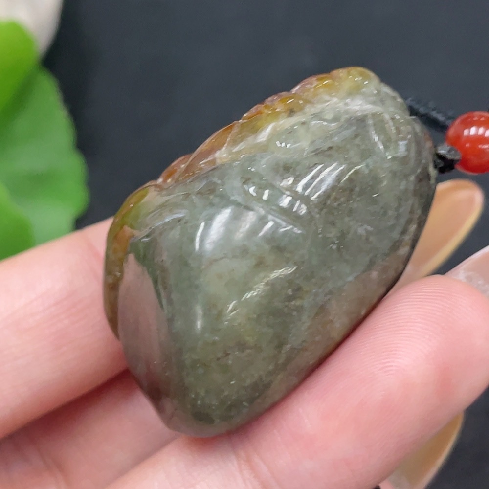 Hetian Jade Pendant, God of Wealth, containing other mineral components, undetermined skin color origin, total weight approximately (including rope) 35.8g
