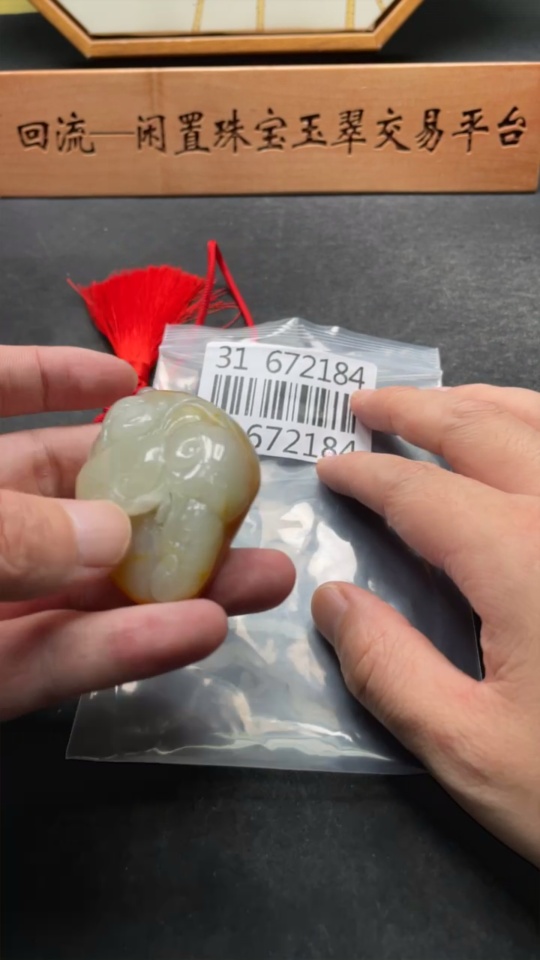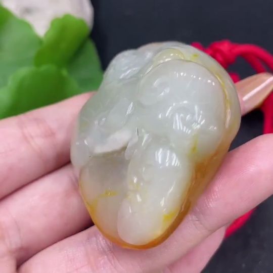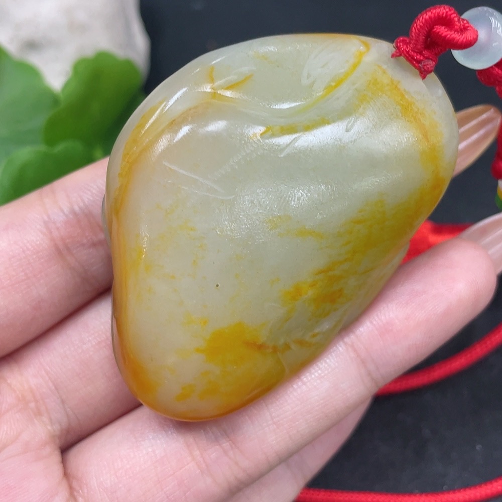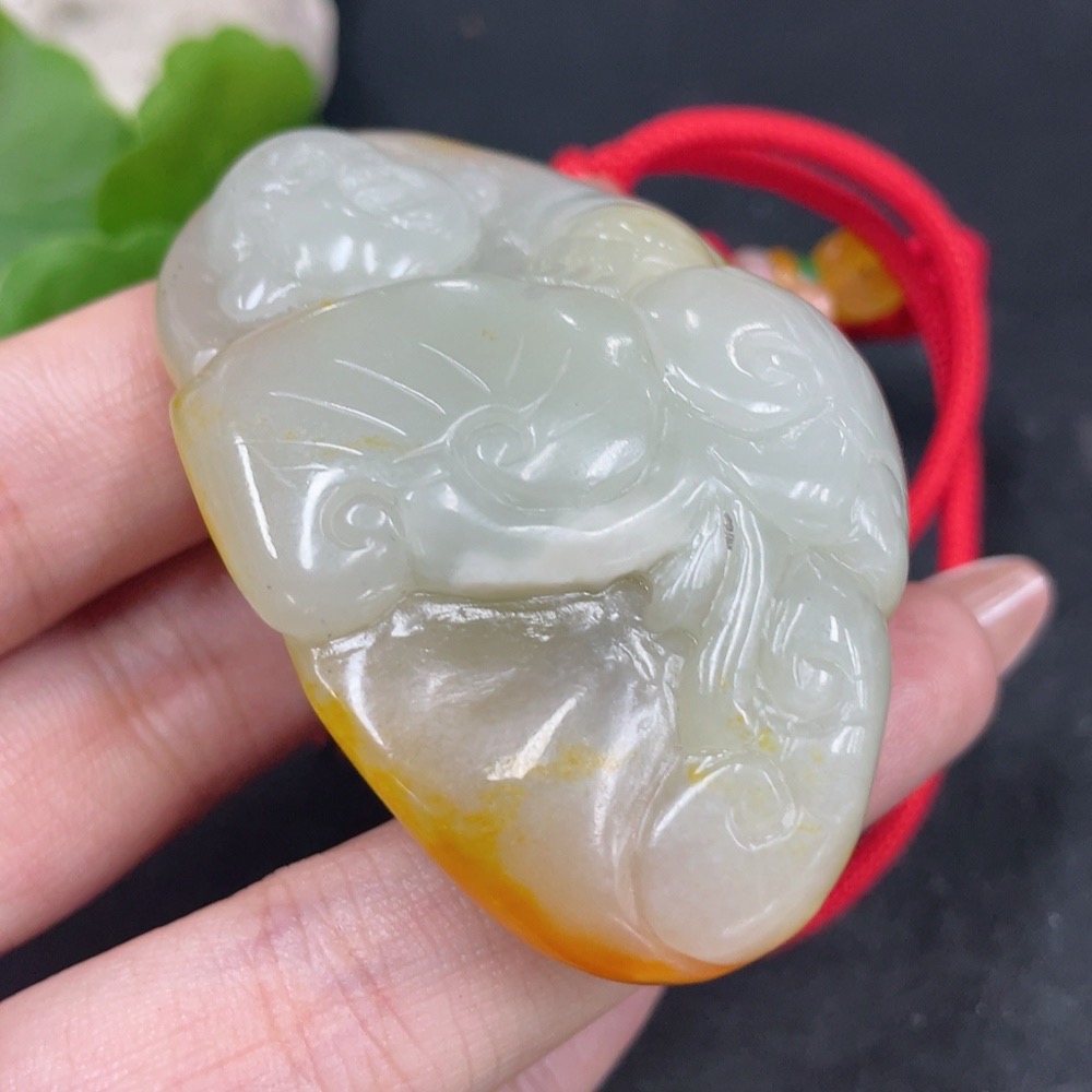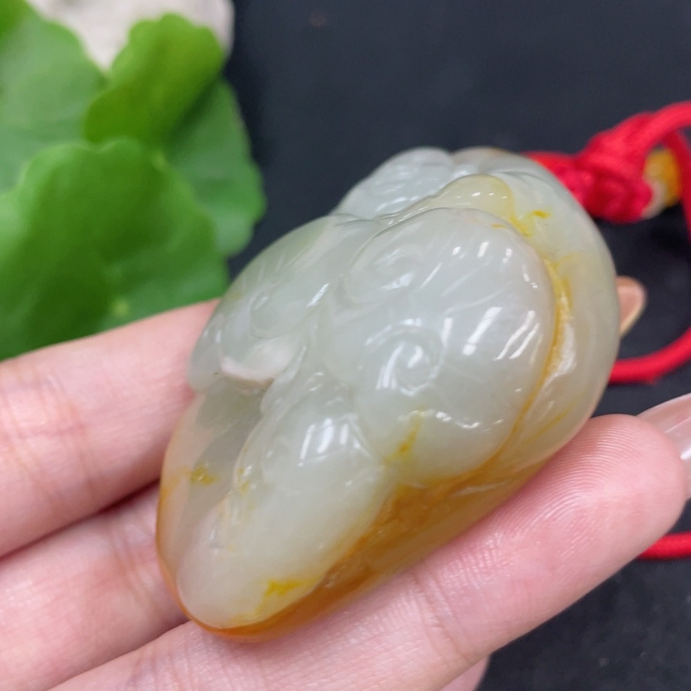 Hetian Jade Pendant Buddha with Other Mineral Components, Undetermined Skin Color Origin, Total Weight (Including String) Approximately 75.1g
