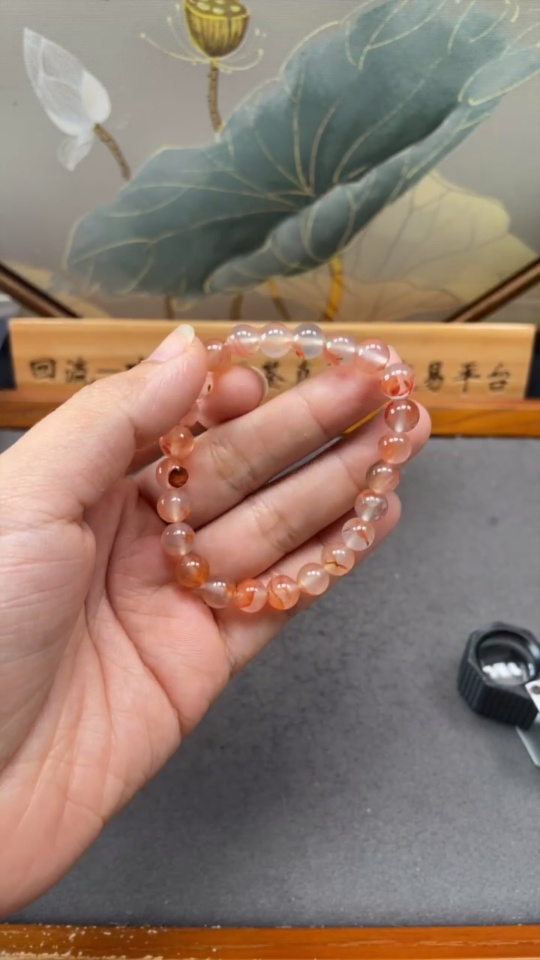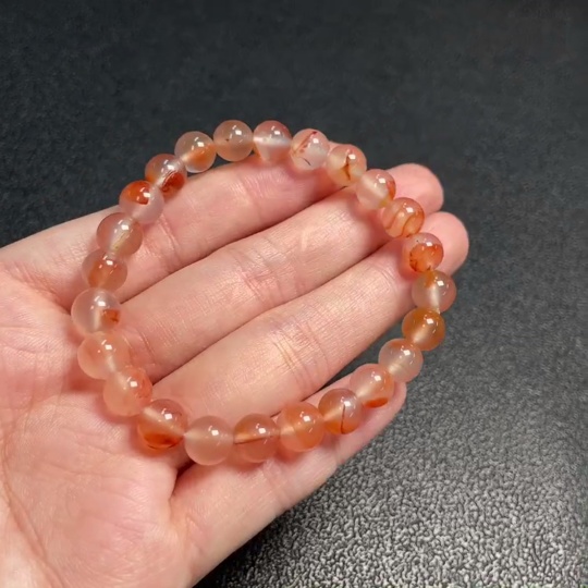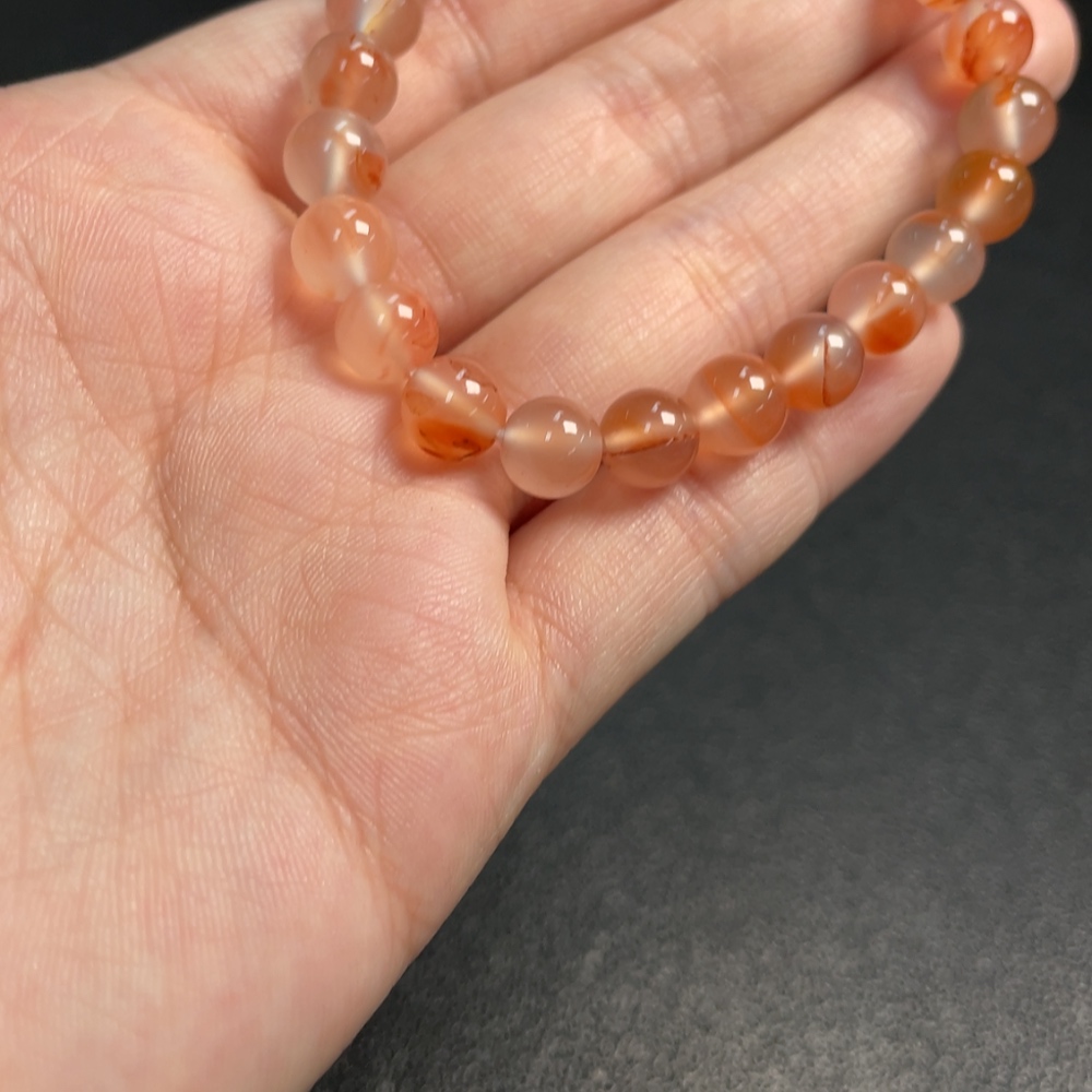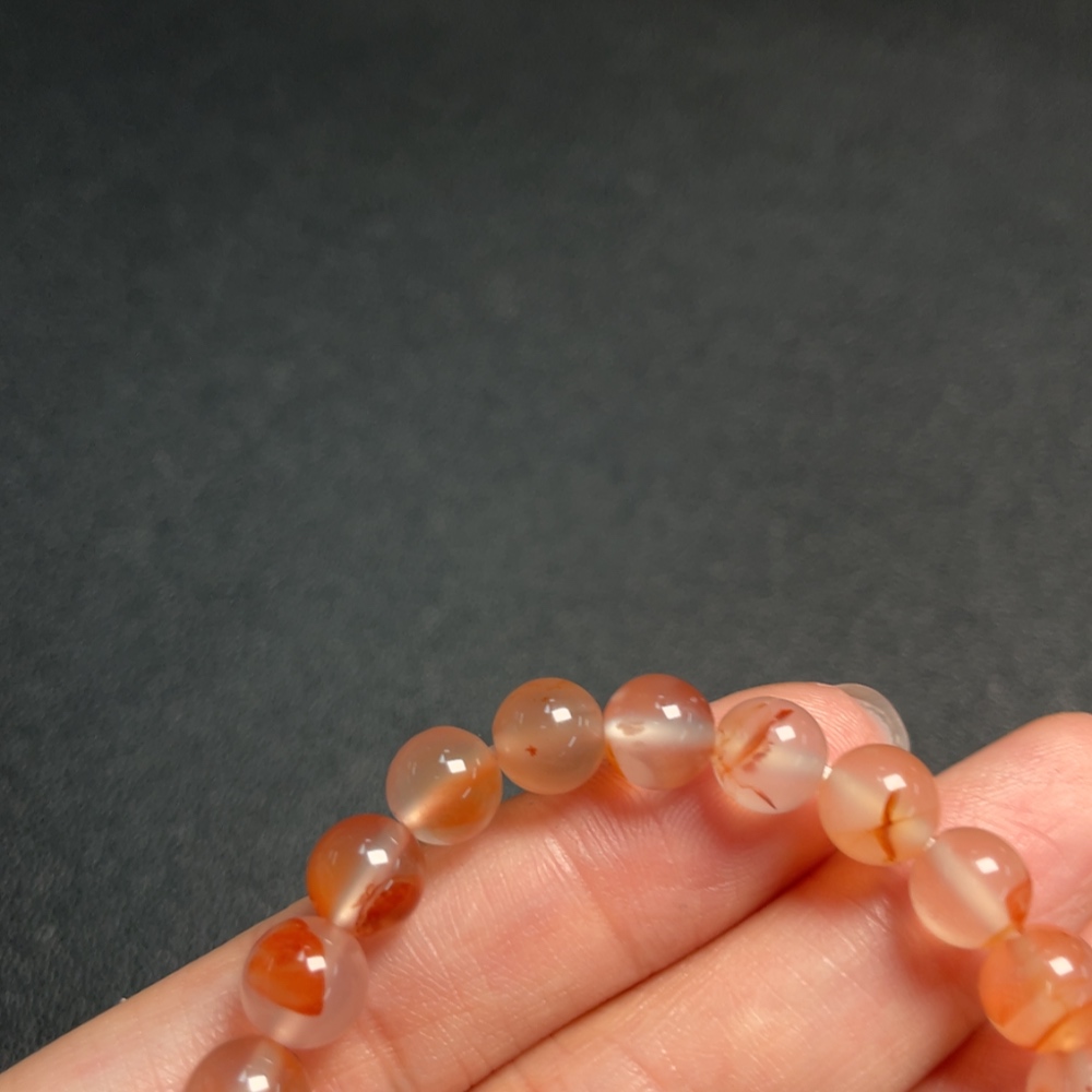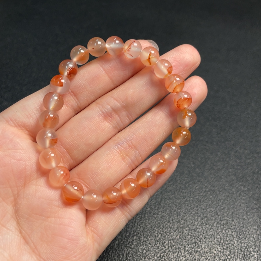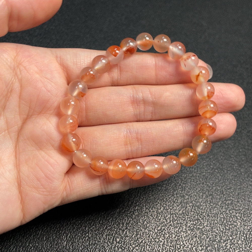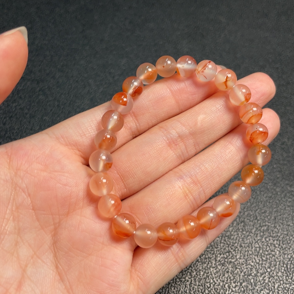 Red Agate Bracelet with Visible Organic Matter, Total Weight Approx. 14.18g, Size About 7.6mm