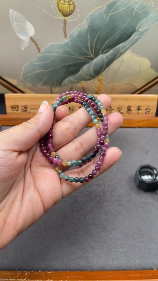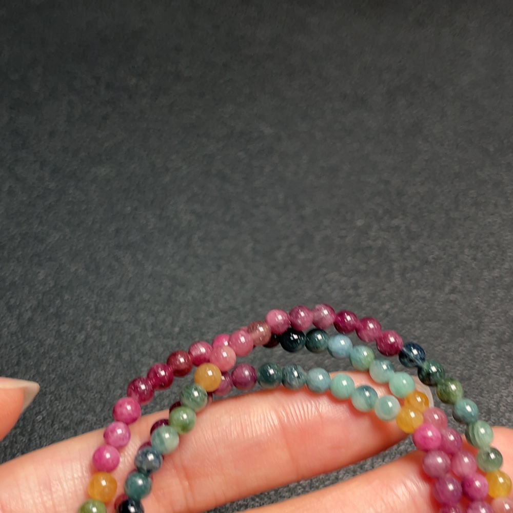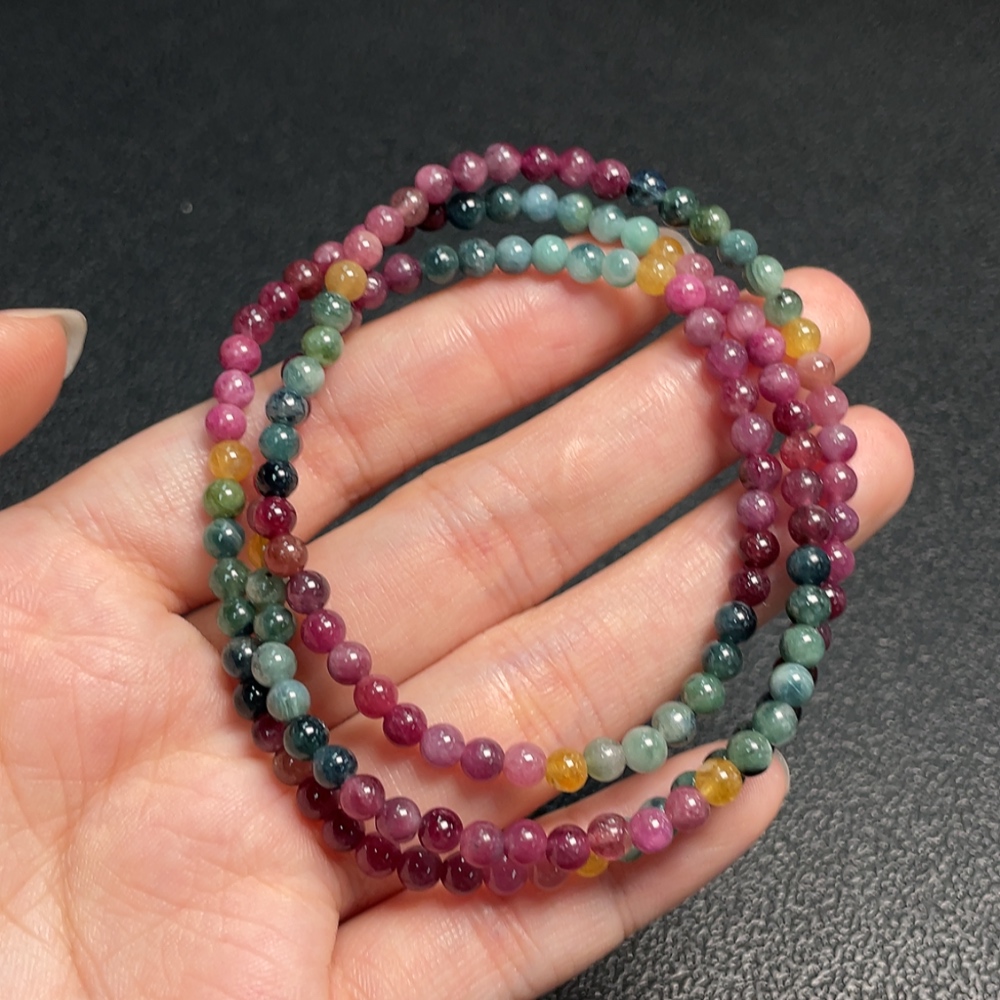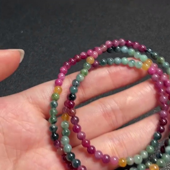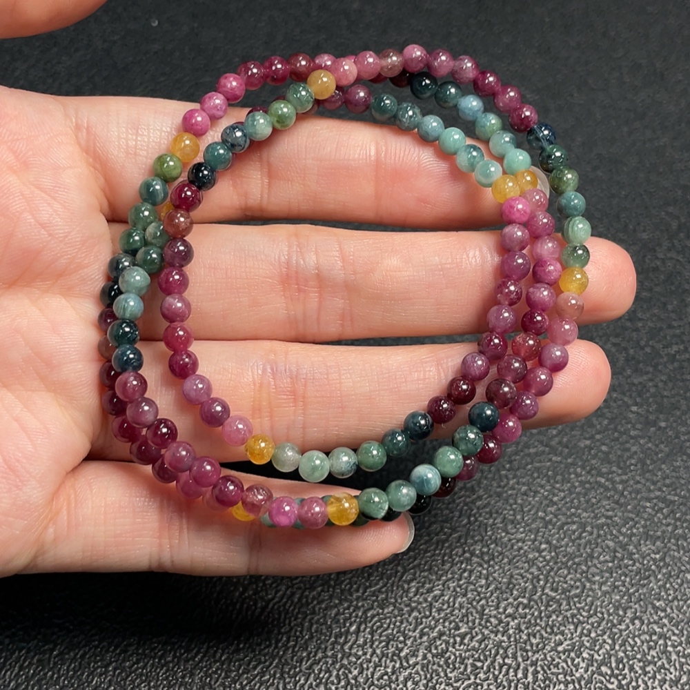 Tourmaline bead bracelet containing other mineral components with visible organic matter, total weight approximately 14.49g, bead size about 4.1mm