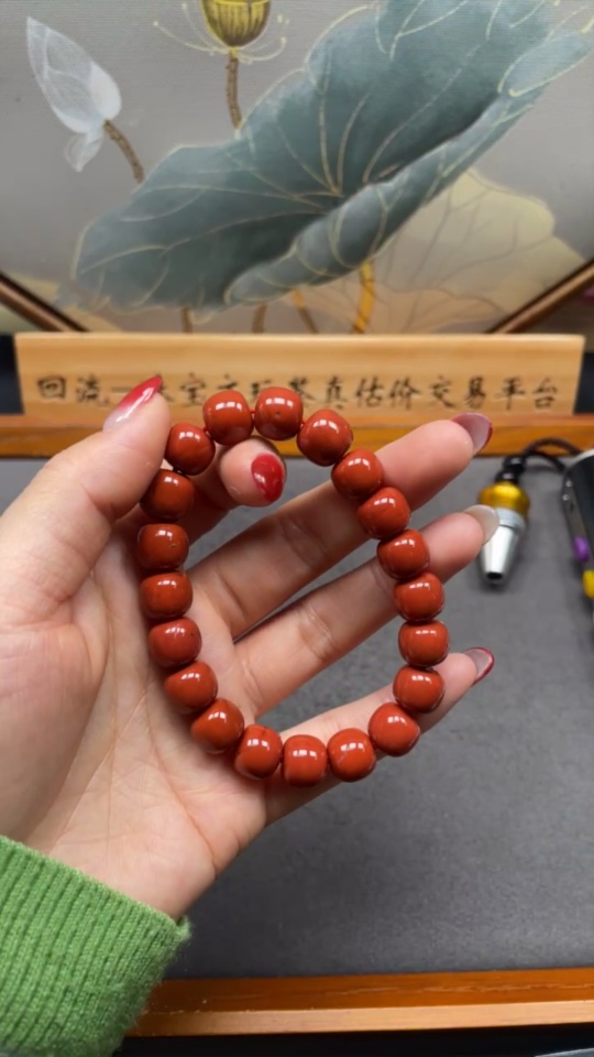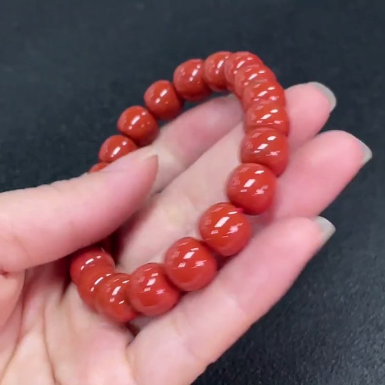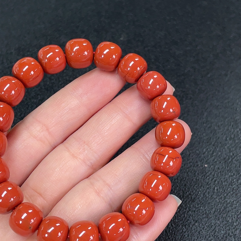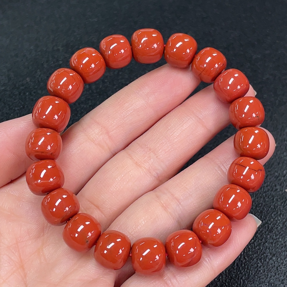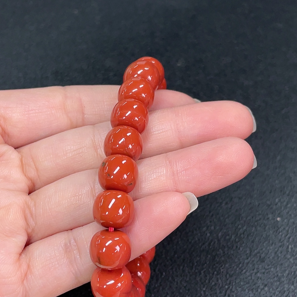 South Red Agate Bracelet with Visible Organic Matter, Total Weight Approximately 33.24g, Bead Size Around 9.2mm