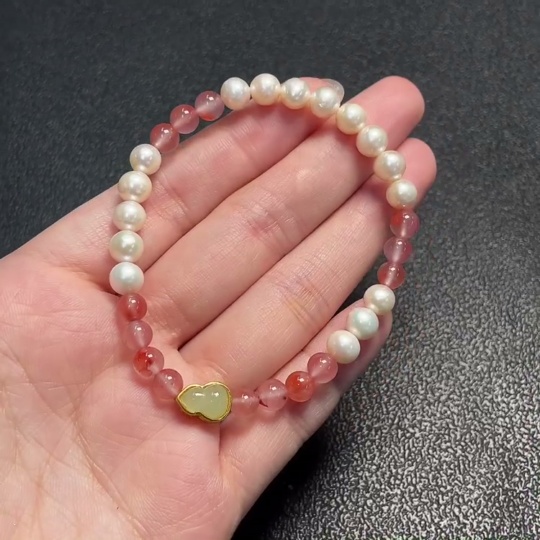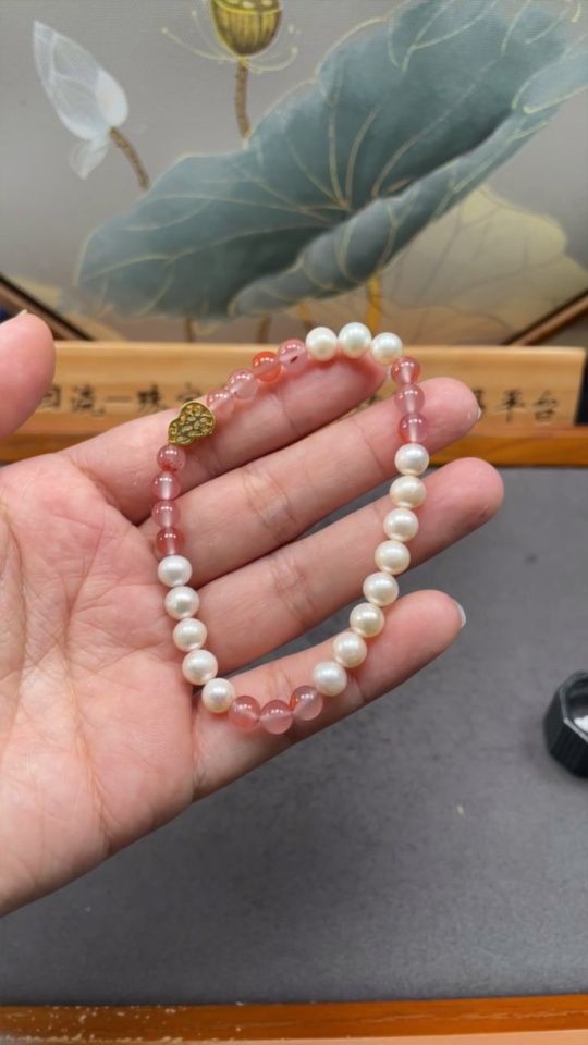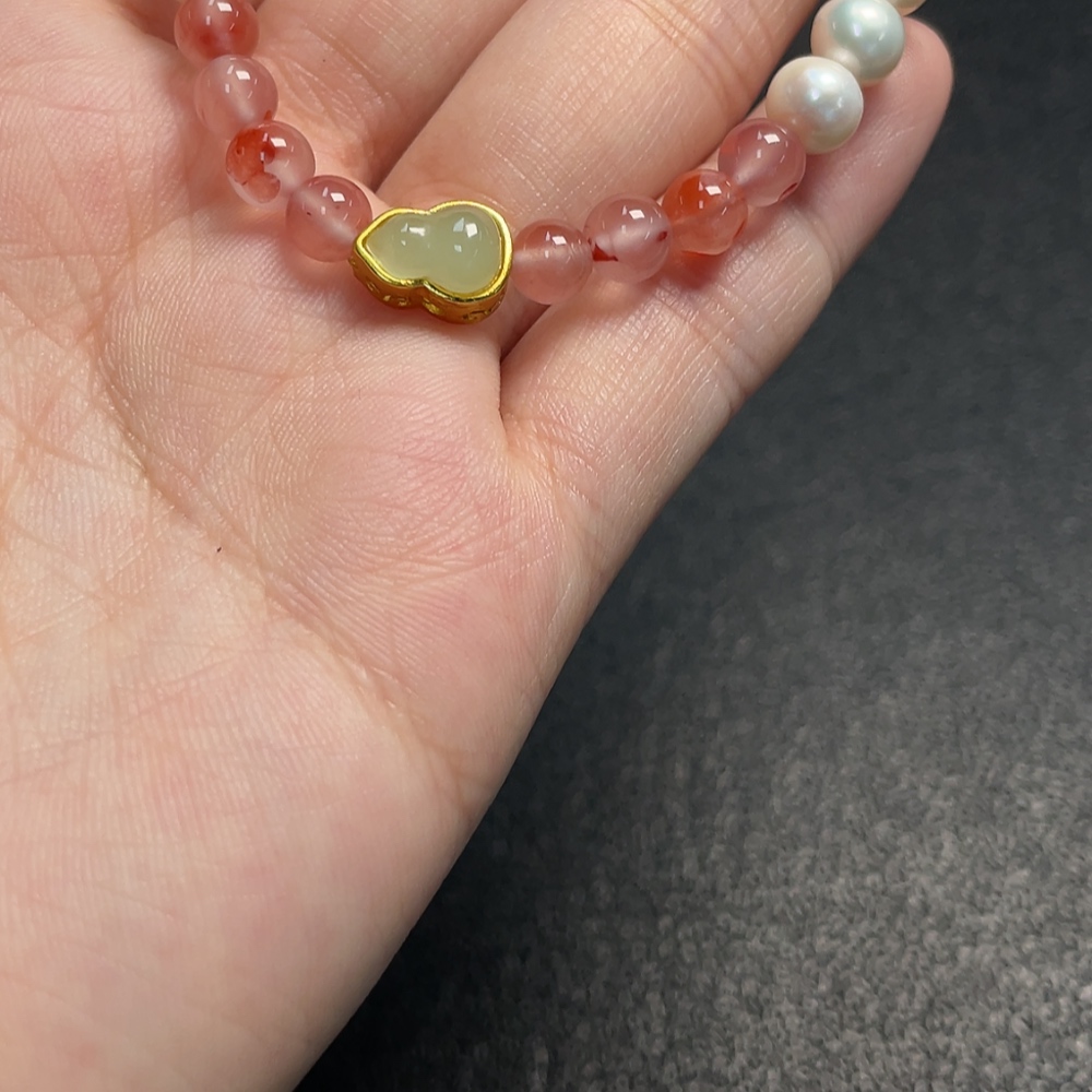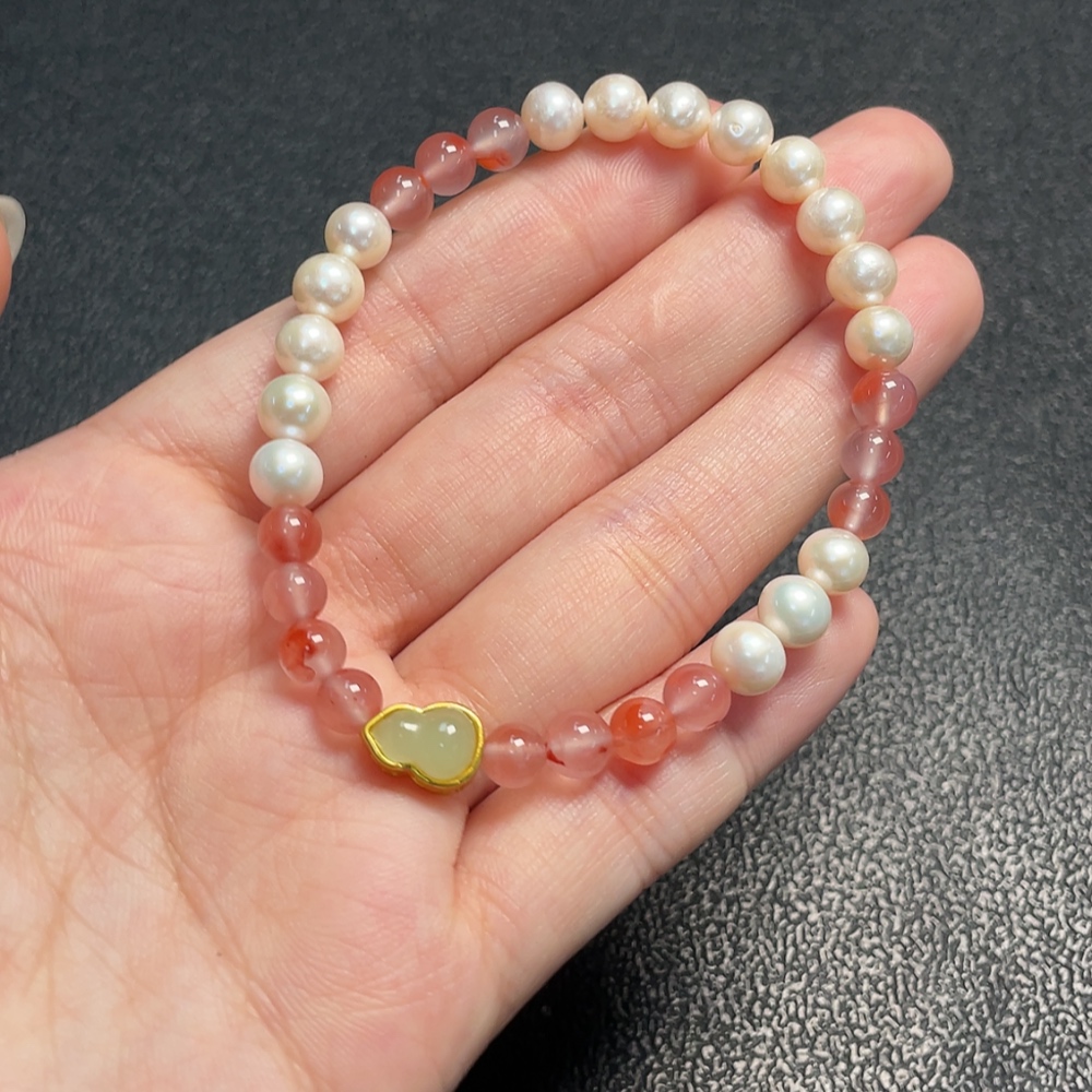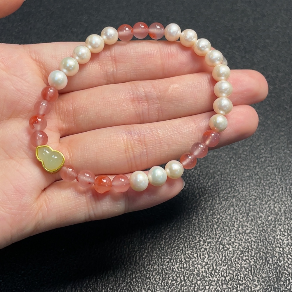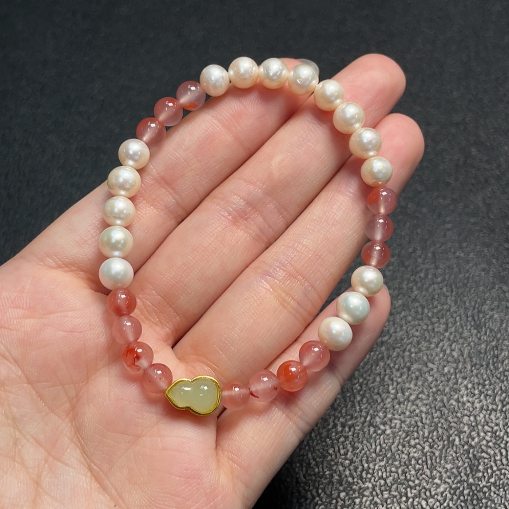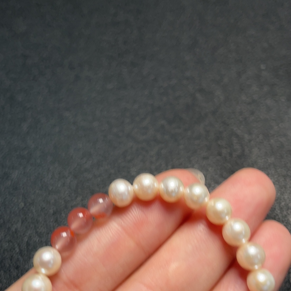 Pearl Bracelet with South Red Agate, Non-Natural Accent Stones, Non-Gold, Total Weight Approx. 9.73g, Size ~6.2mm