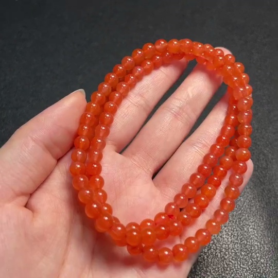 South Red Agate Bead Strand with Visible Organic Matter, Total Weight Approx. 32.58g, Size About 4.4mm
