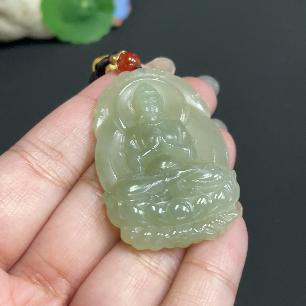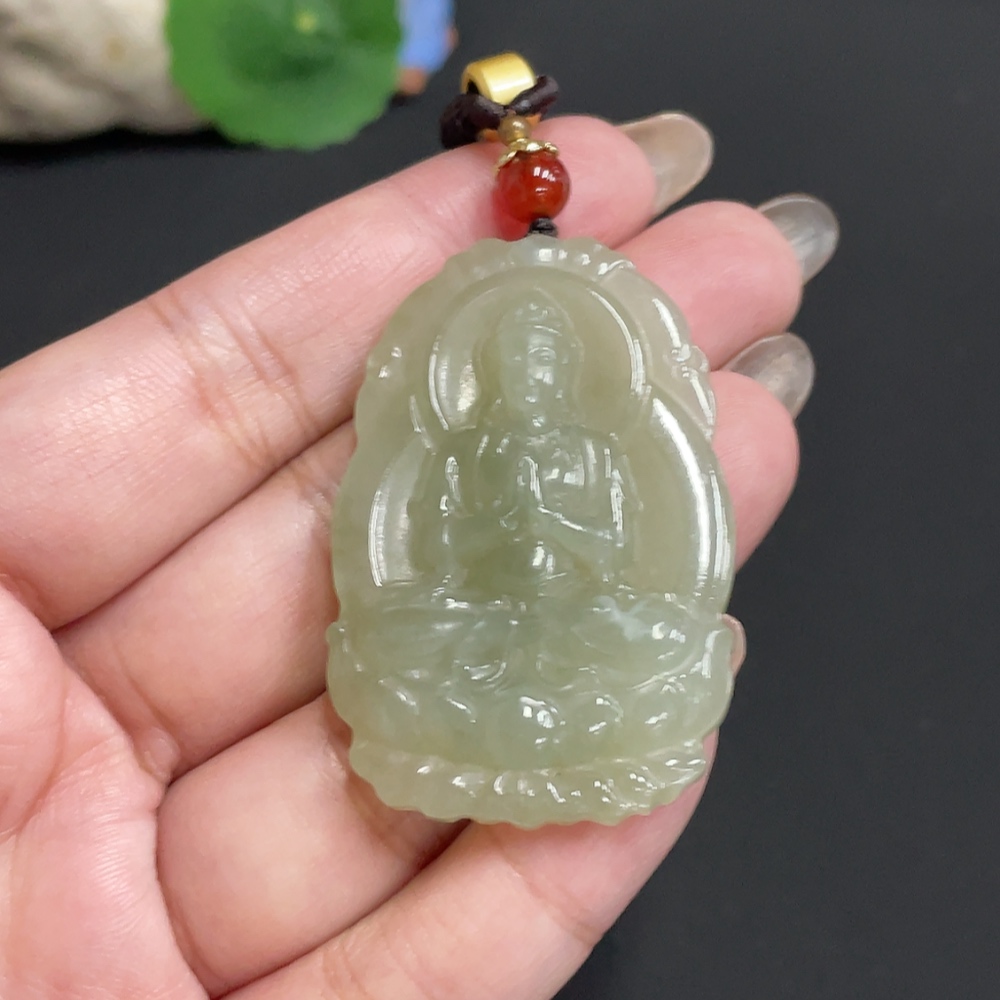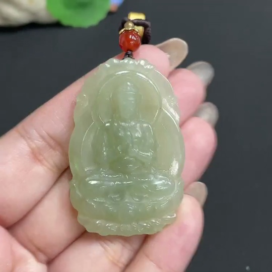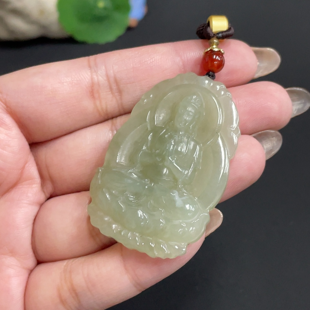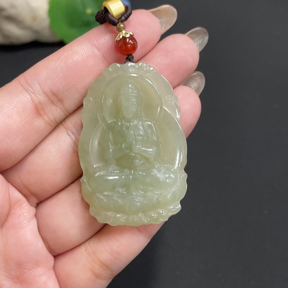 Hetian Jade Pendant Guanyin with Non-Hetian Jade Beads Total Weight Approx. [Including Rope] 23.6g