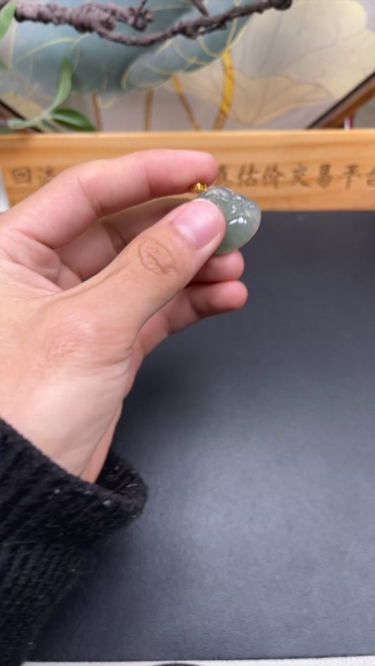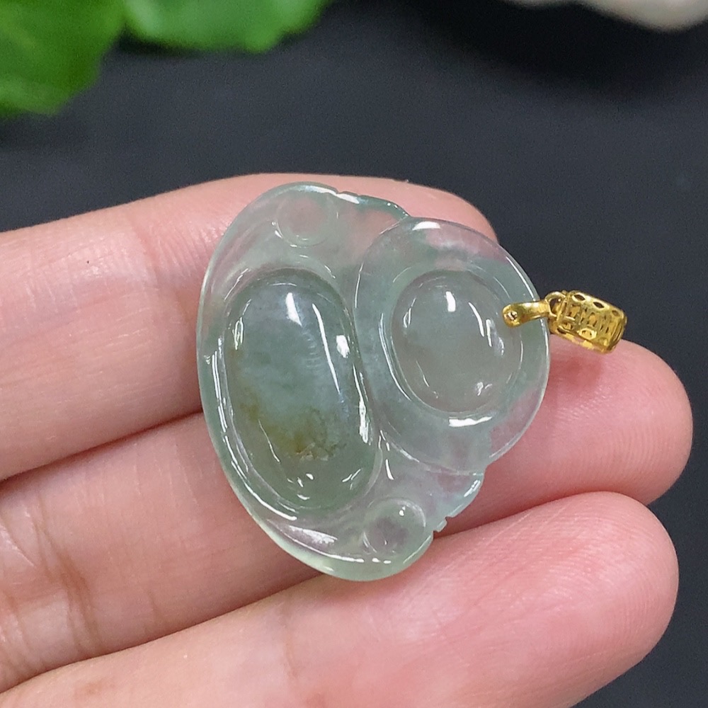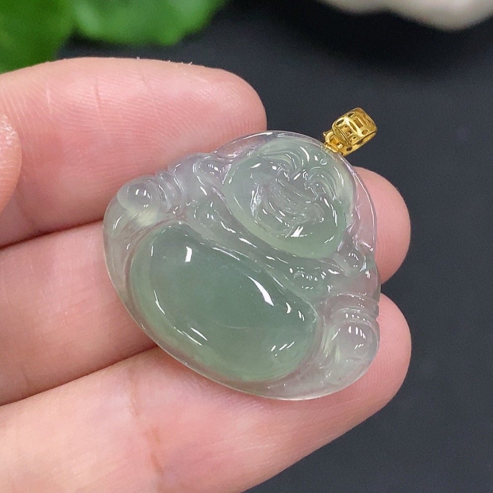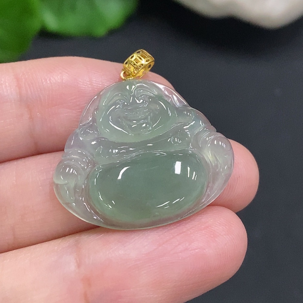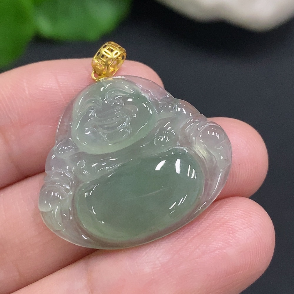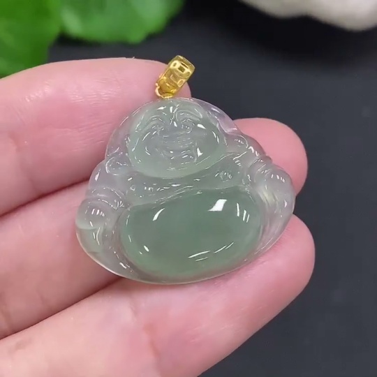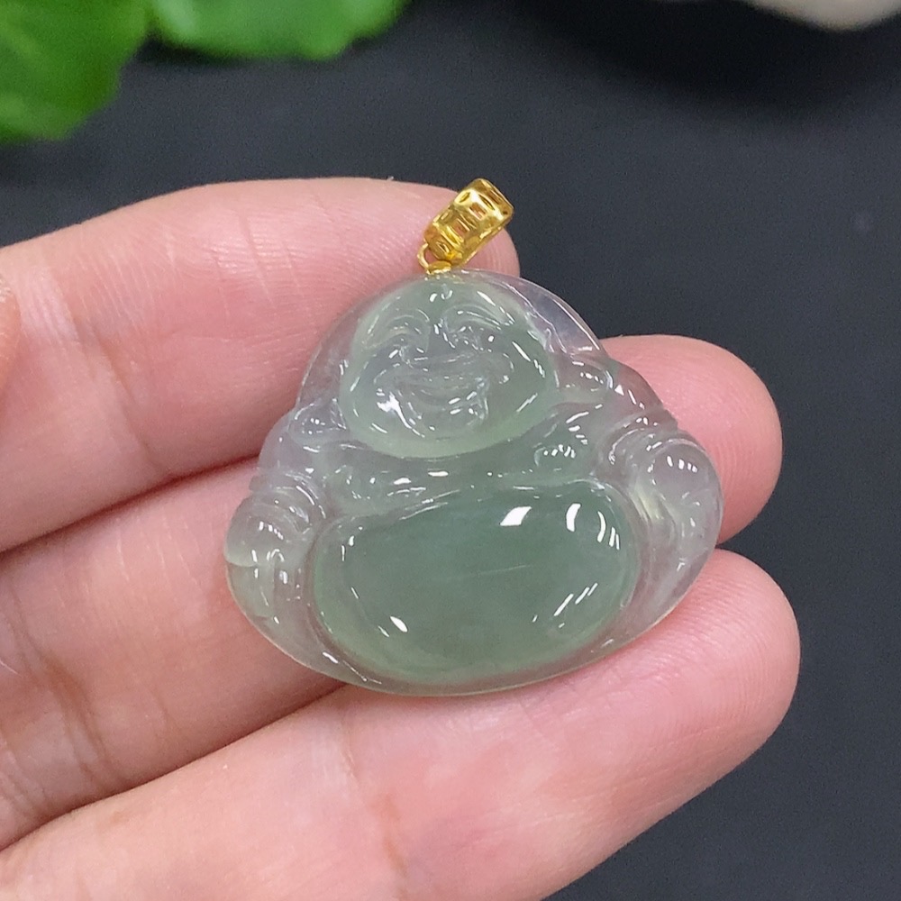 Jadeite Buddha Pendant with 18K Gold Clasp, Total Weight Approximately 3.9g