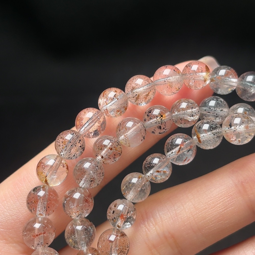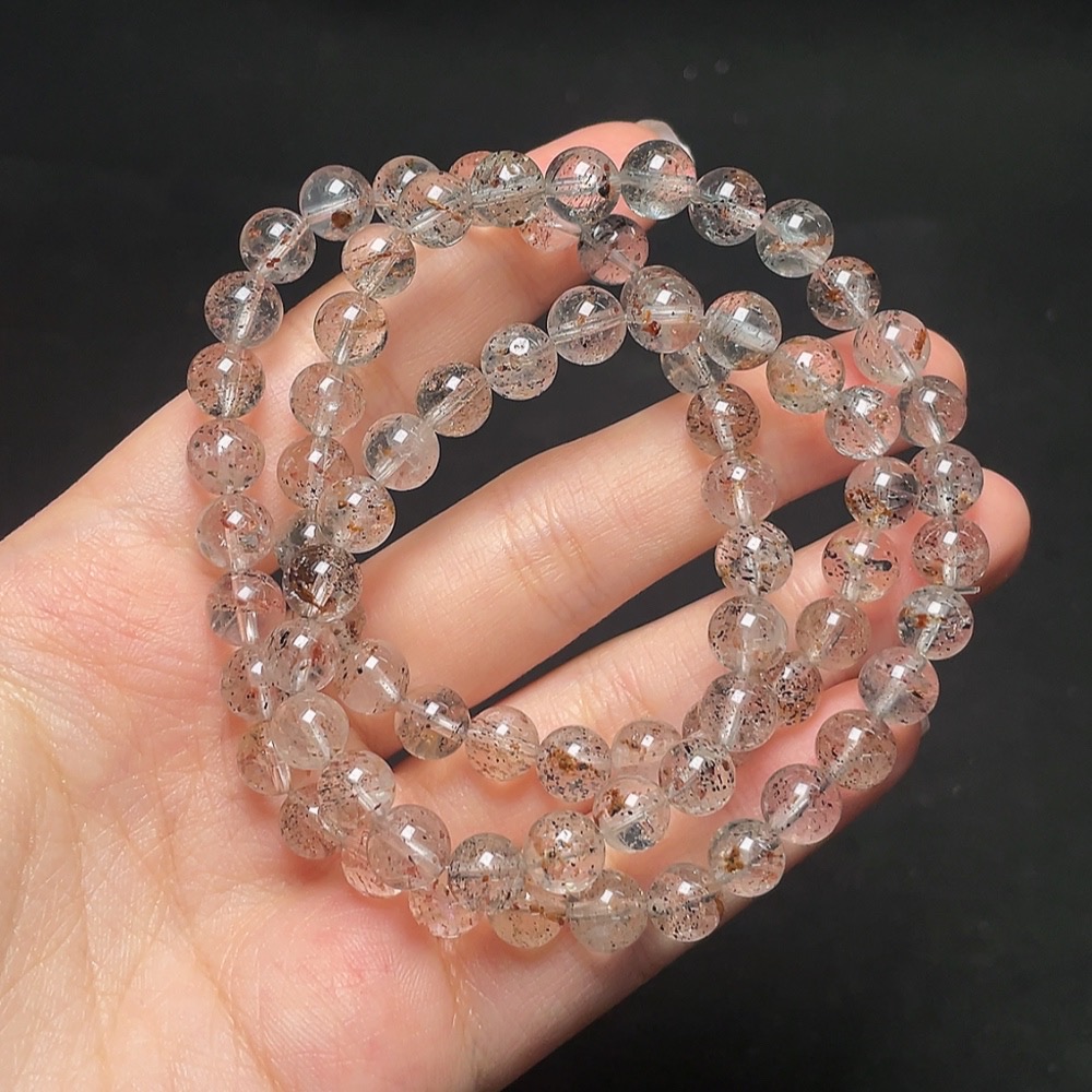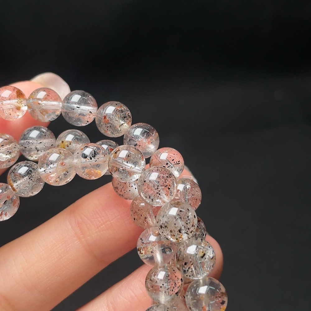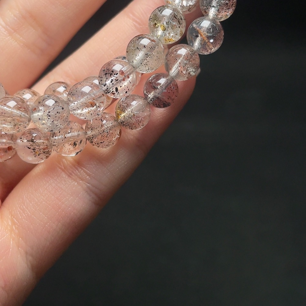Crystal Bead Necklace with Visible Organic Matter, Total Weight Approx. 38.9g, Size About 7.2mm