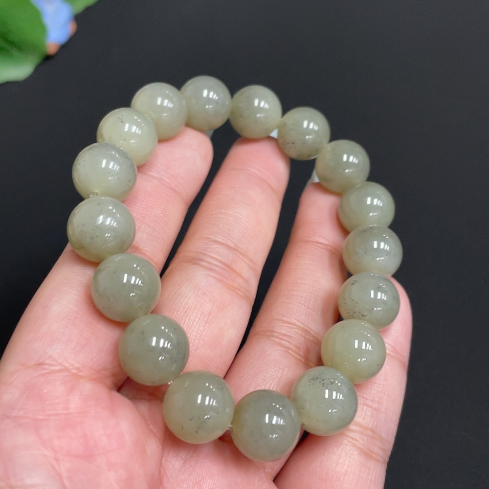 Hetian Jade Bracelet, approx. 11.8mm beads, total weight approx. 46.1g