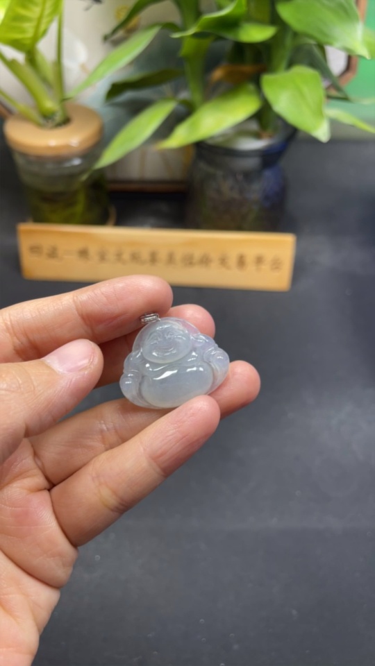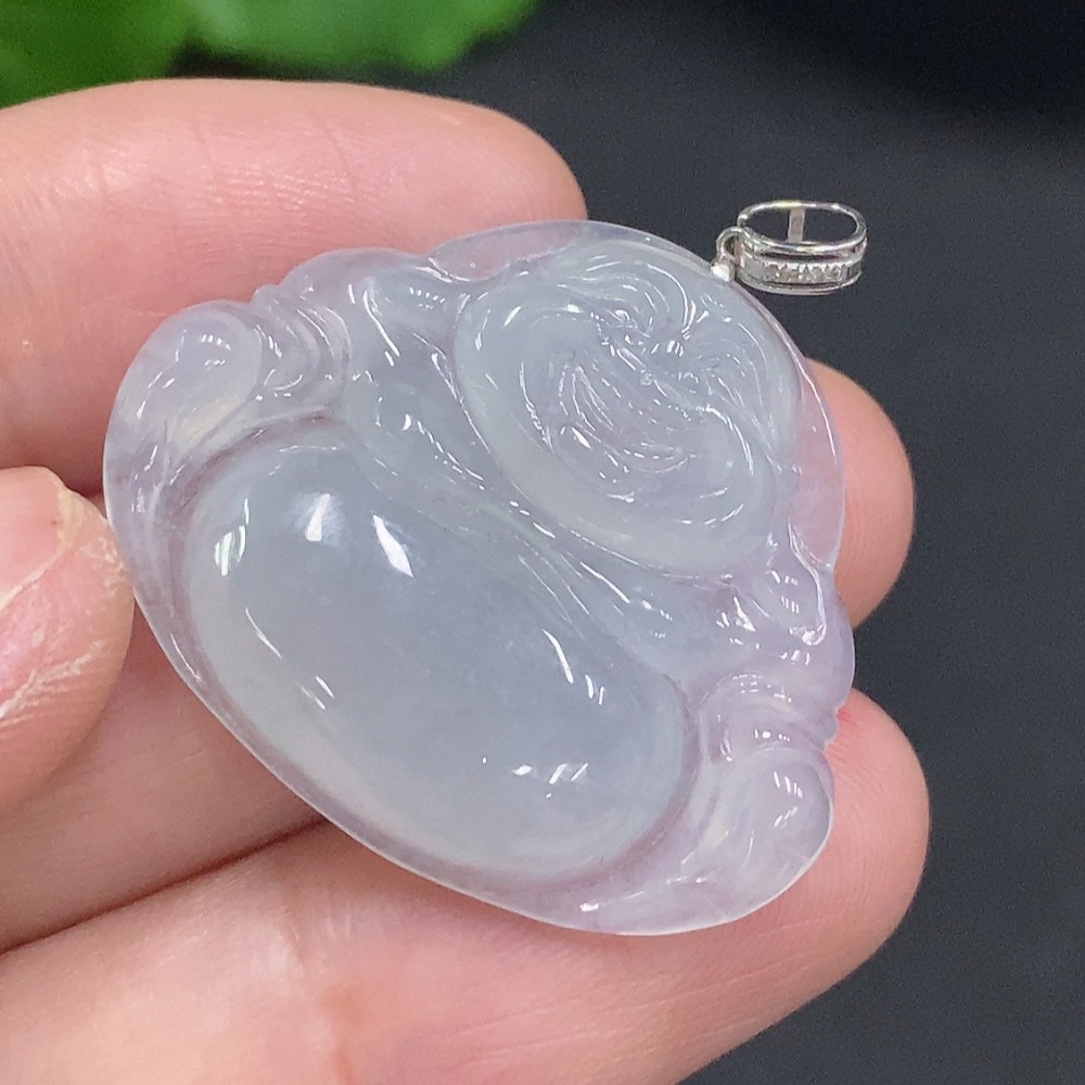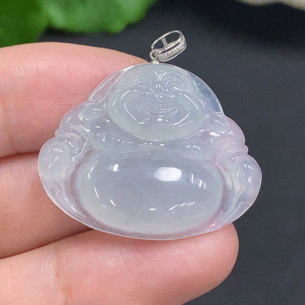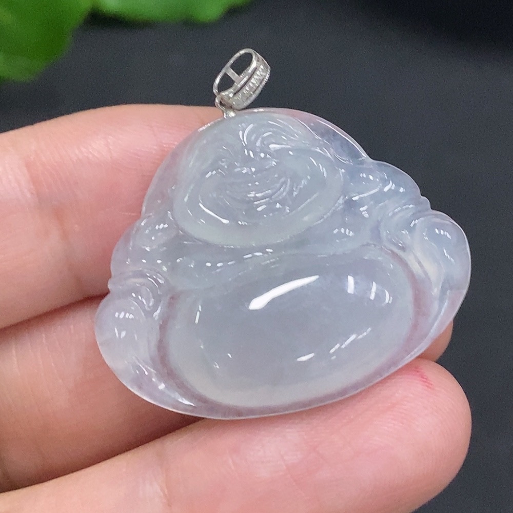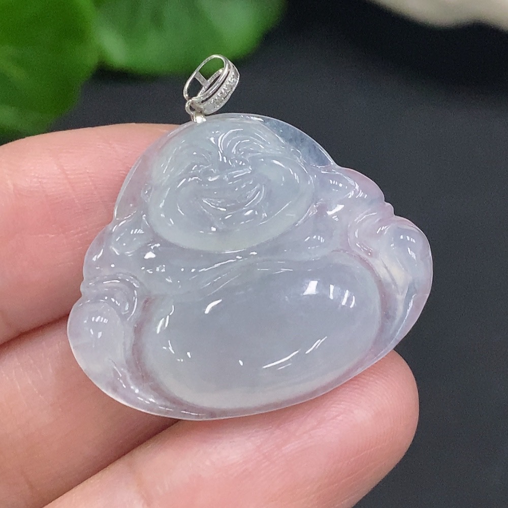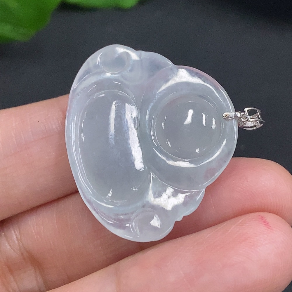 Jadeite Buddha Pendant with 18K Gold Clasp, Total Weight Approx. 6g (Diamond Accented)