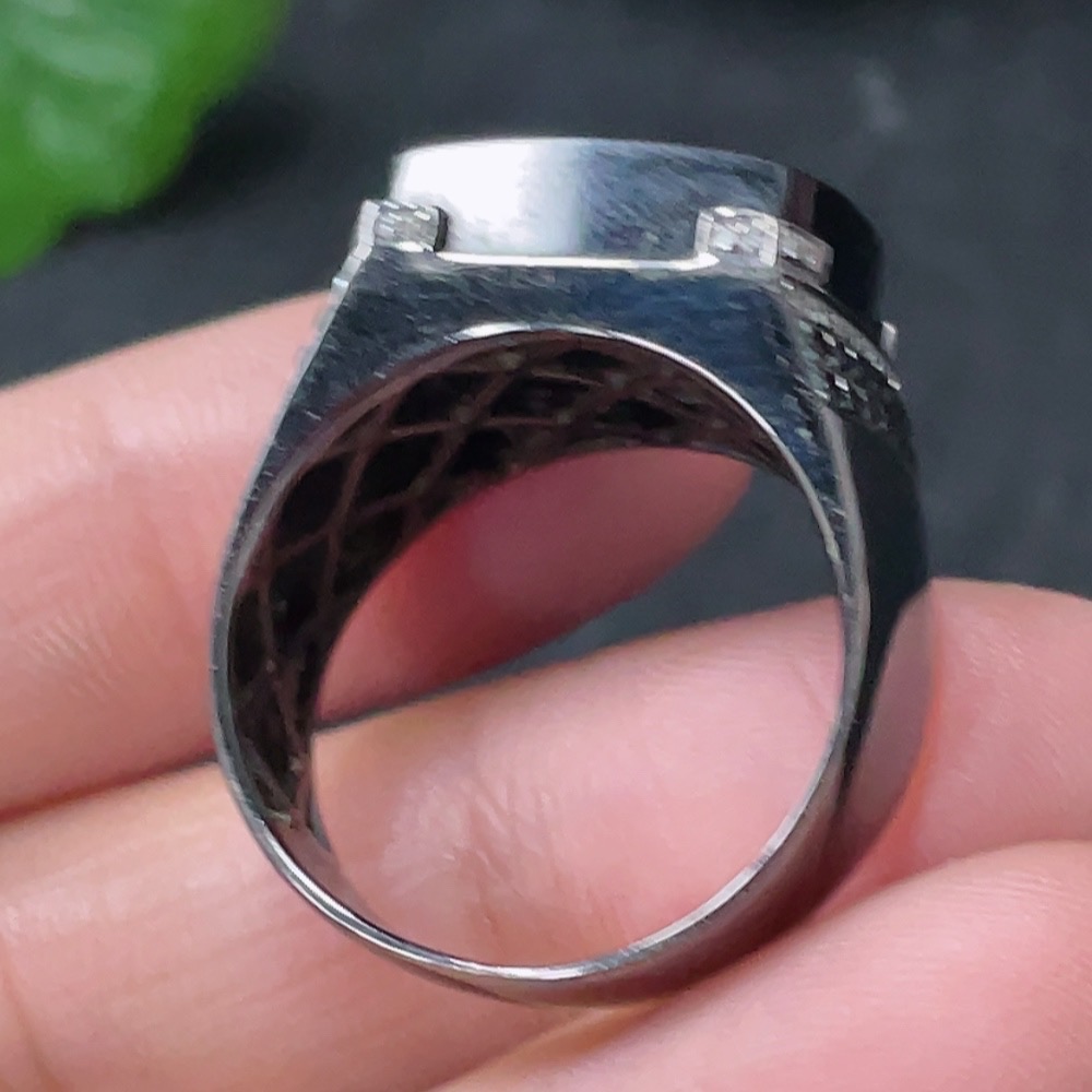 Jadeite Ring with 18k Gold and Diamond Accents, Size 19, Total Weight Approximately 6.6g