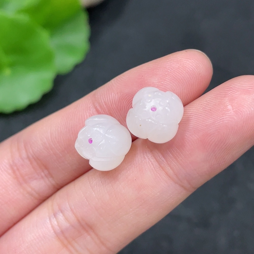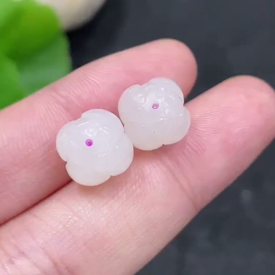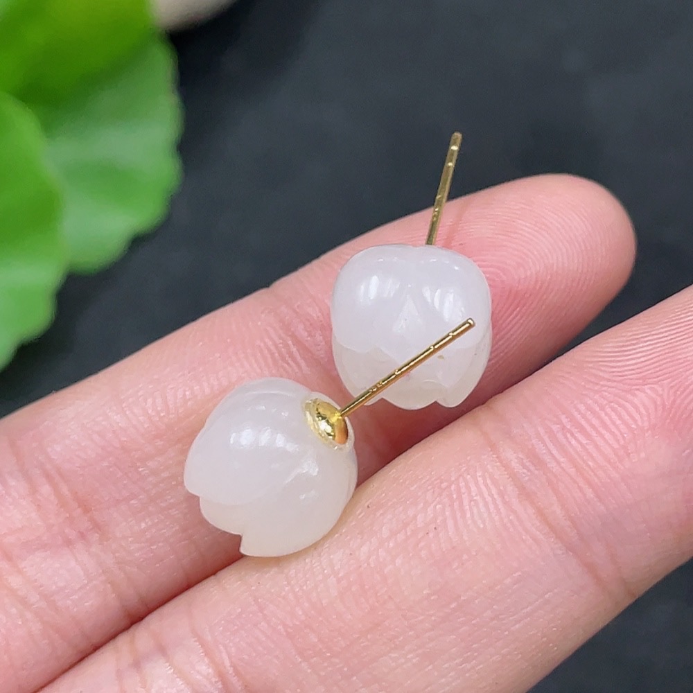 Hetian Jade Earrings with 18k Gold Inlay, Total Weight Approx. 3.1g