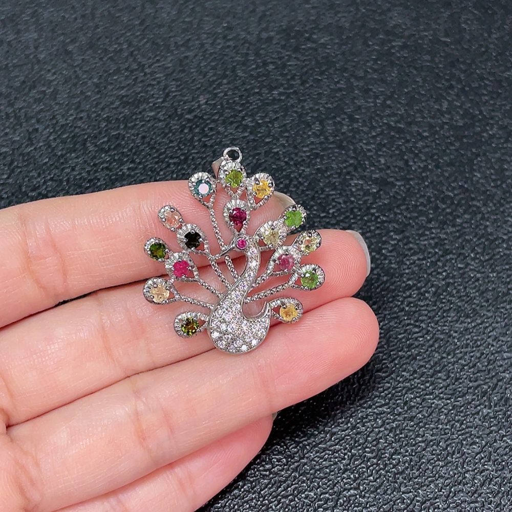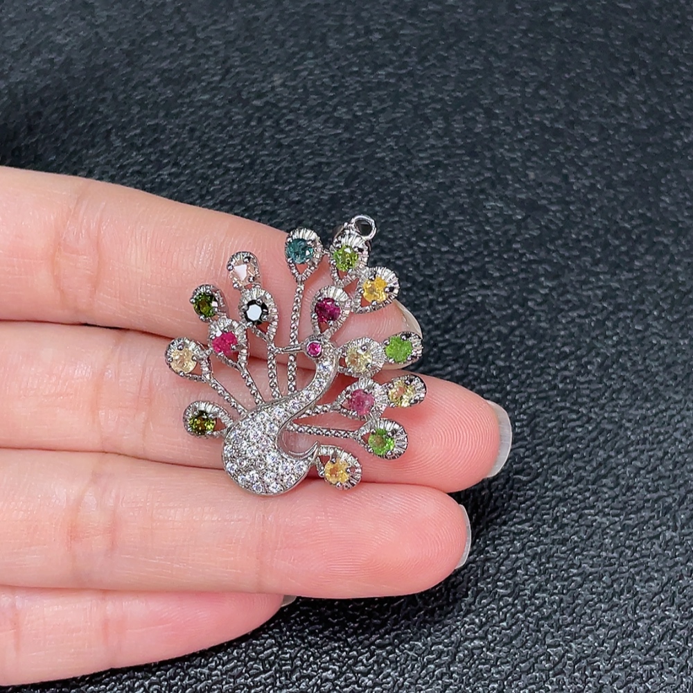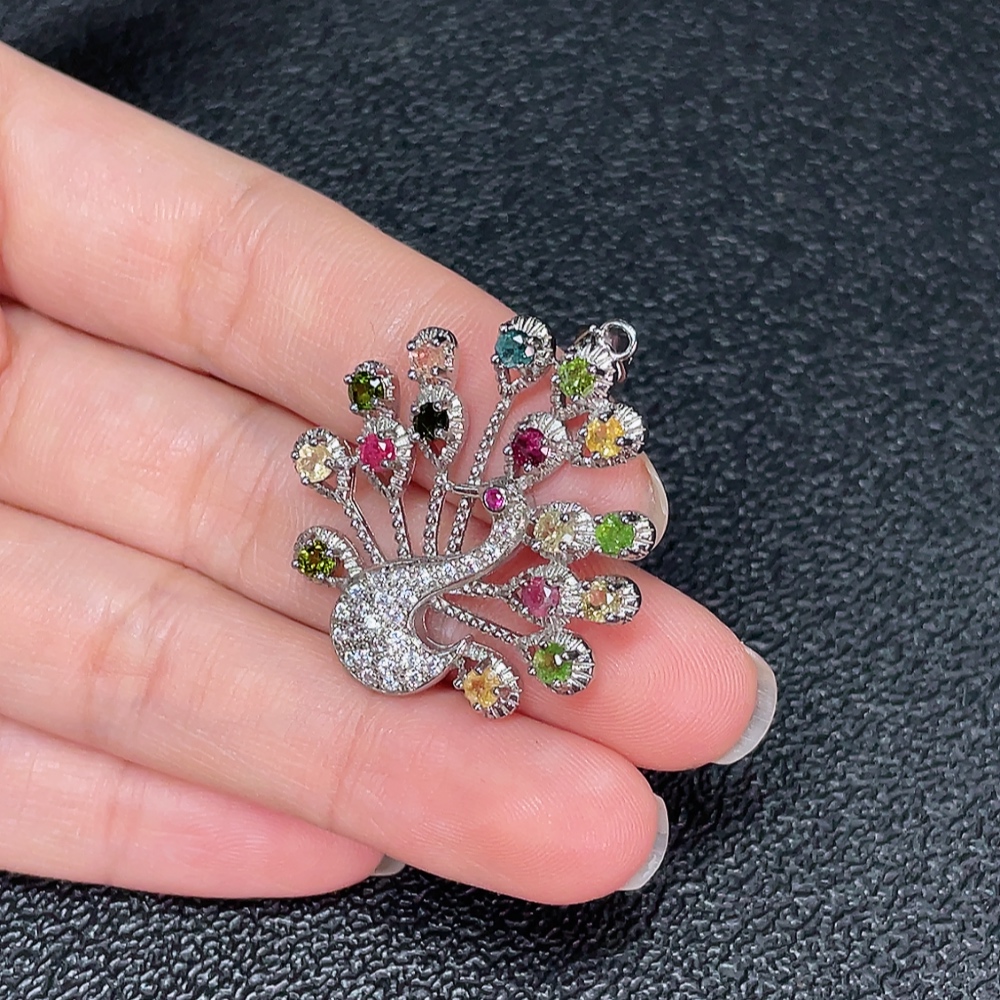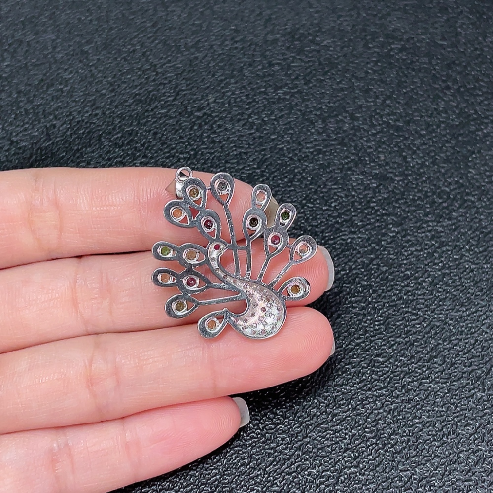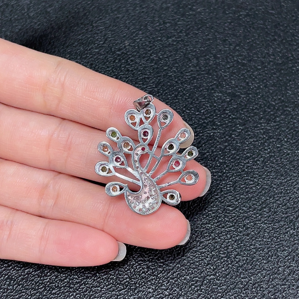 Tourmaline Pendant with Visible Organic Matter, Non-Metal, Stones May Be Non-Natural, Total Weight Approx. 5g