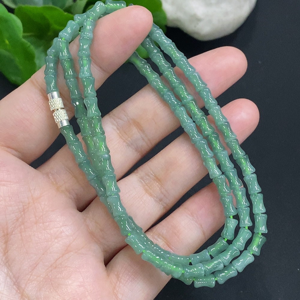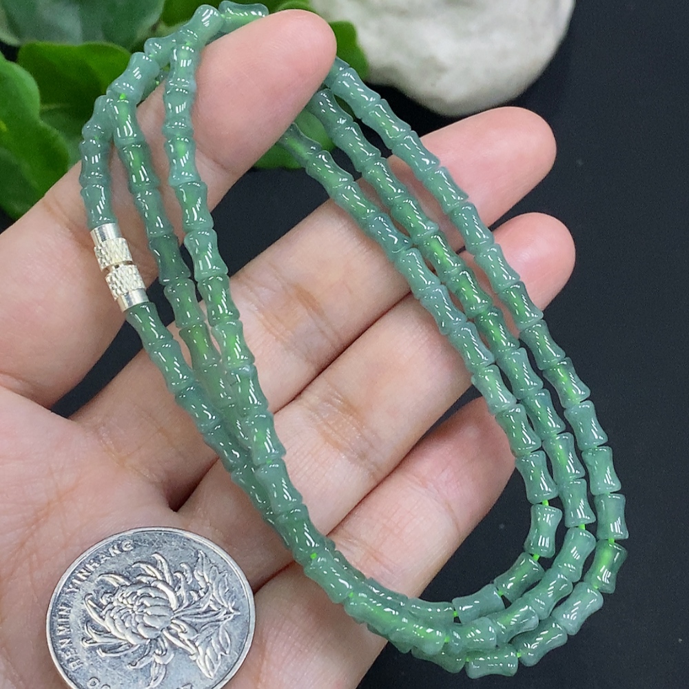 Jadeite Bead Necklace Approx. 3.8mm Non-Gold Total Weight Approx. 20.3g