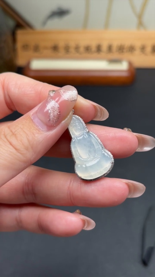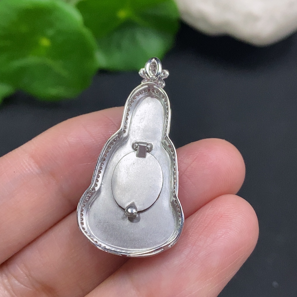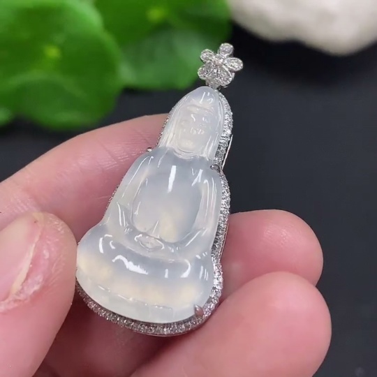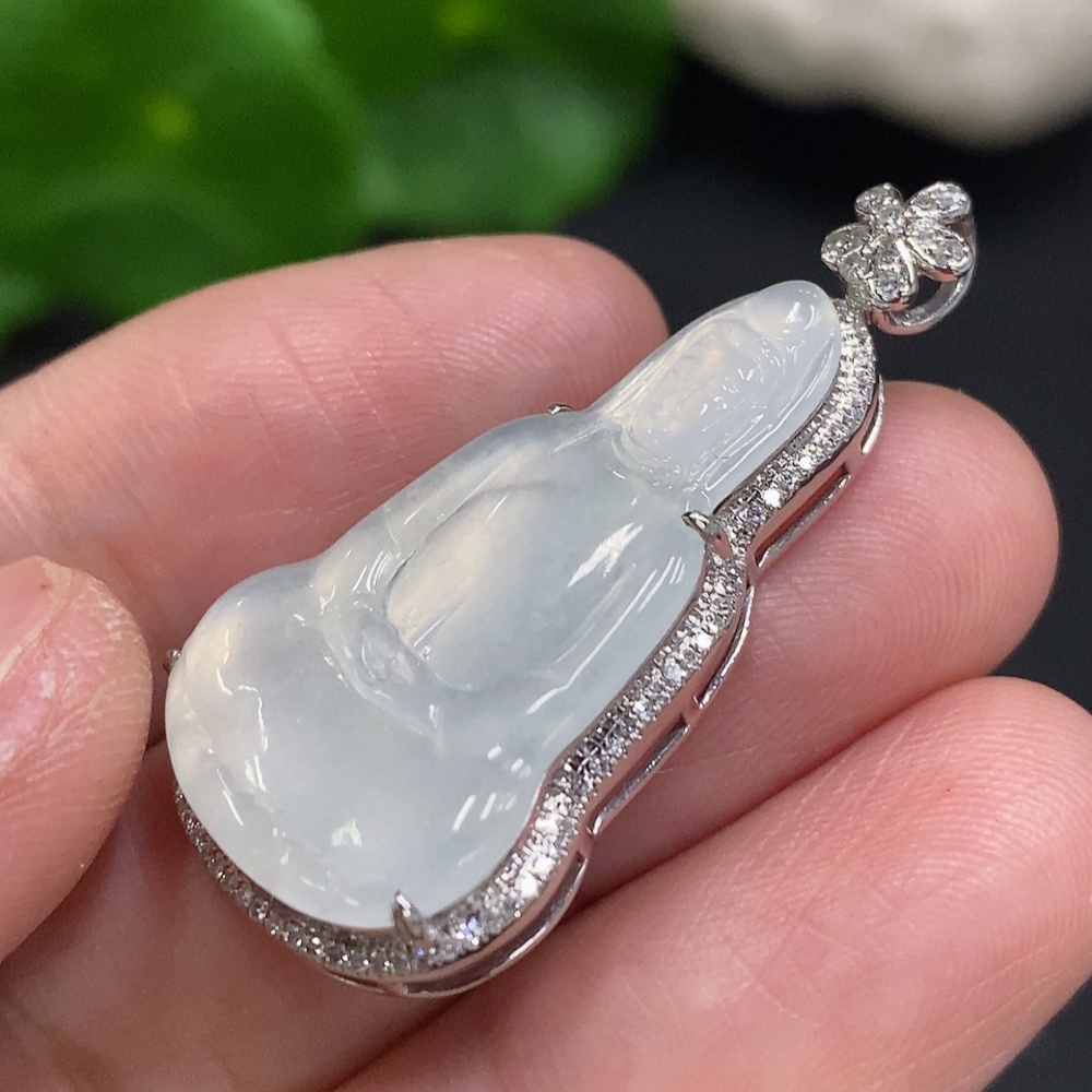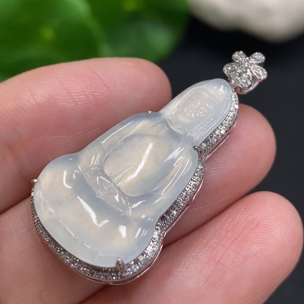 Jadeite Guanyin Inlaid Pendant 18K Gold Total Weight Approx. 4.5g (With Diamond Accents)