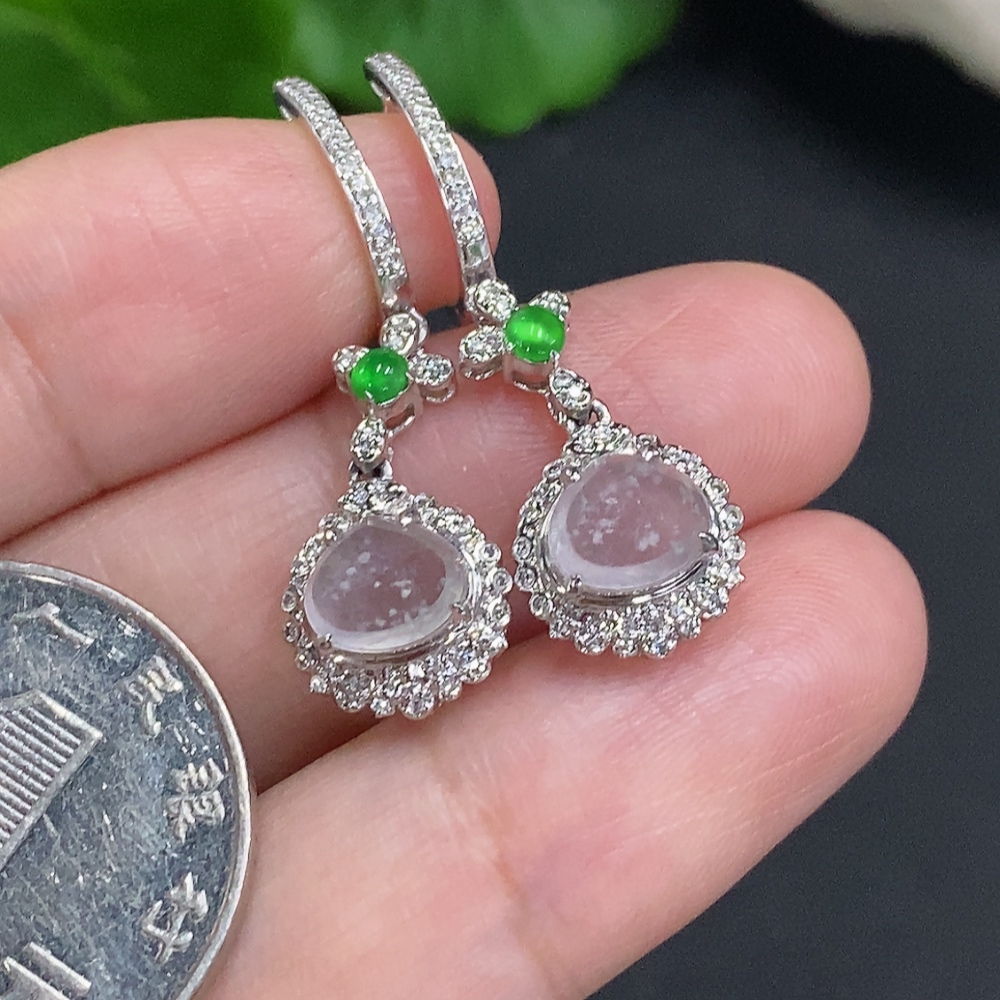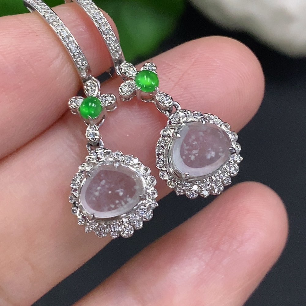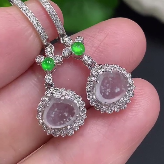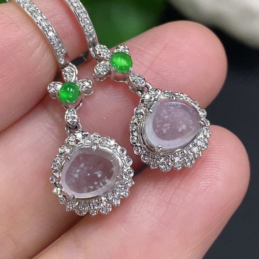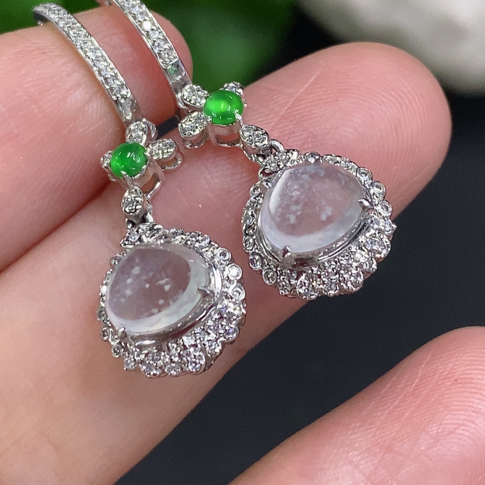 Jadeite earrings set in 18K gold, total weight approximately 3.7g (with diamond accents)