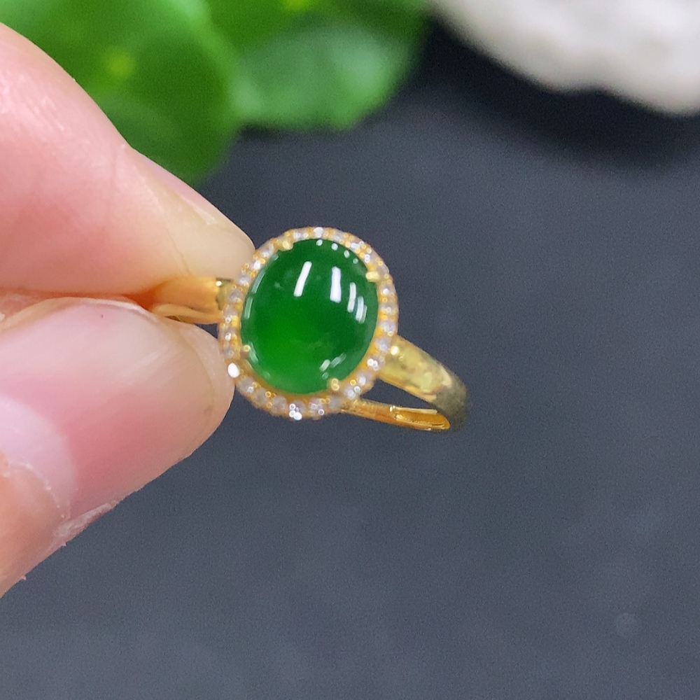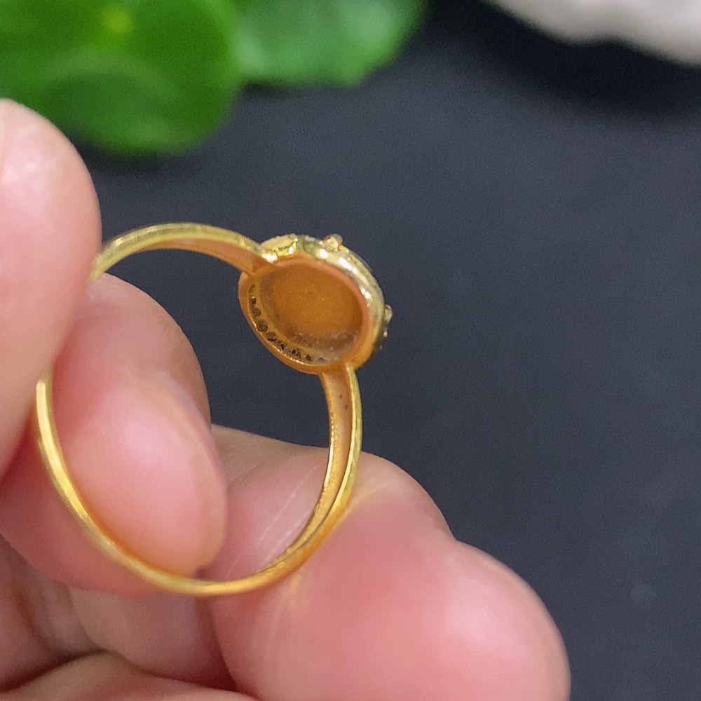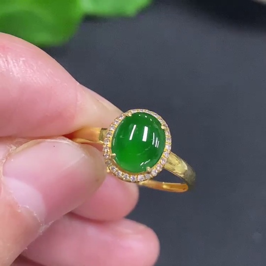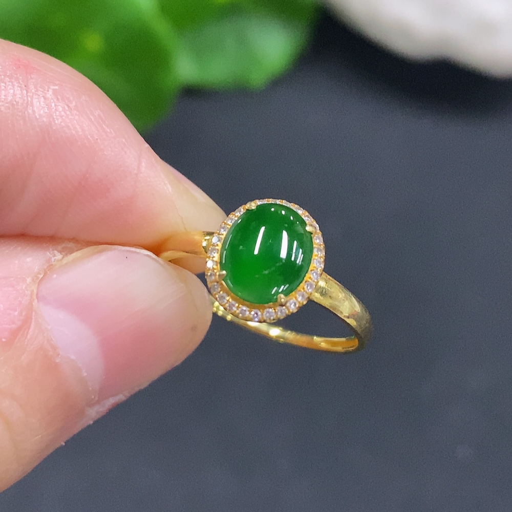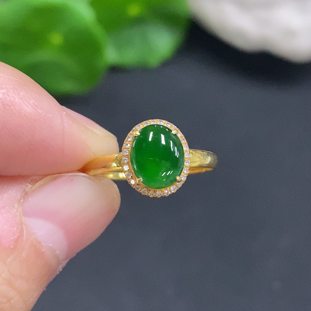 Jadeite cabochon ring in 18K gold size 13 total weight approx.1.3g (with diamond accents)