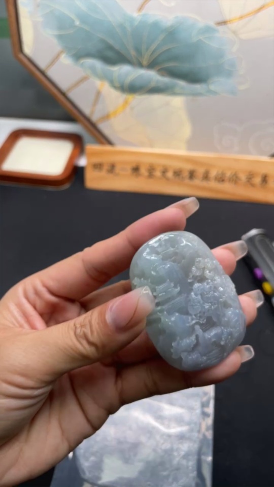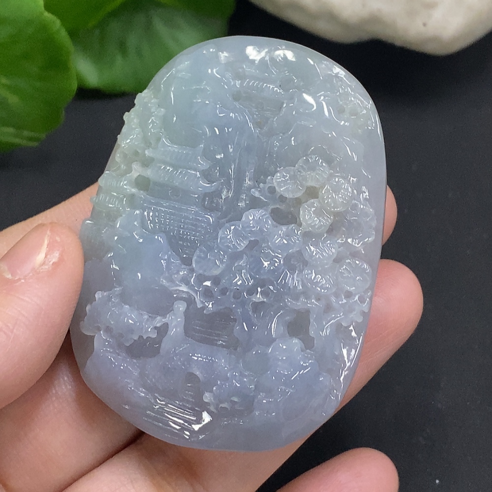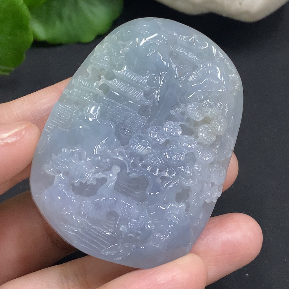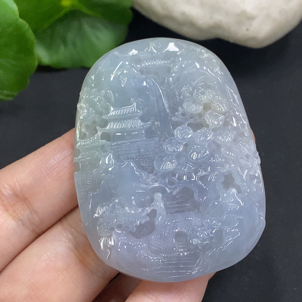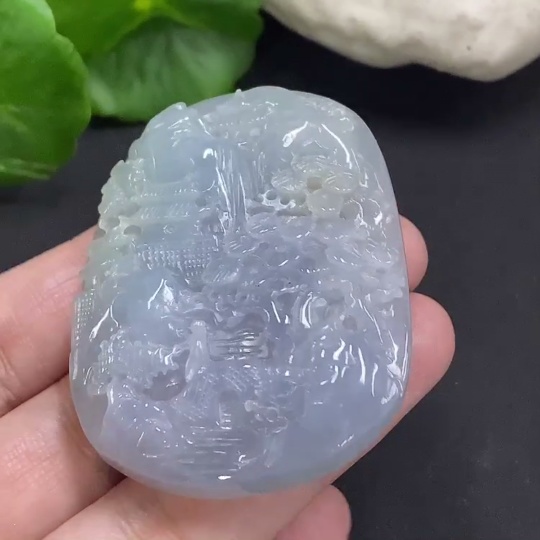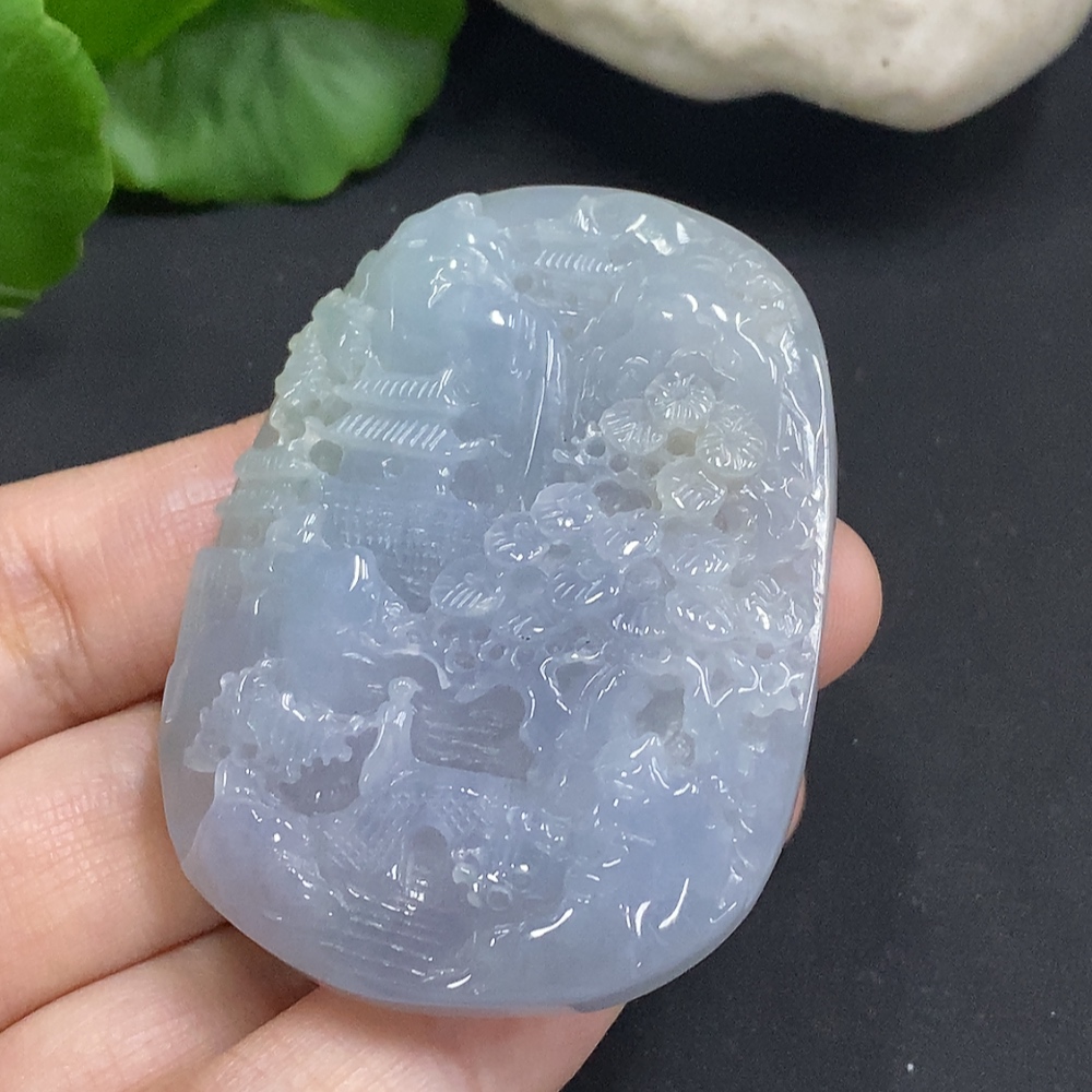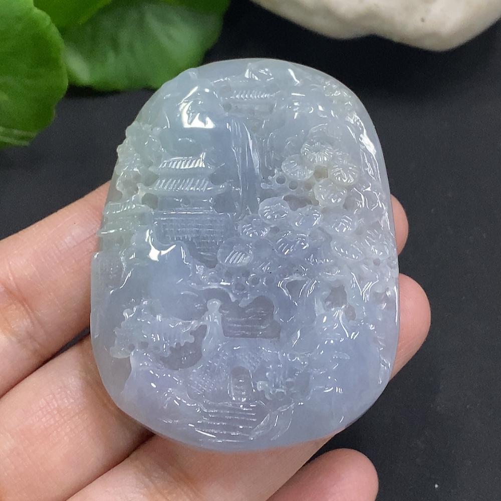 Jadeite Landscape Pendant, Total Weight Approximately 44.7g
