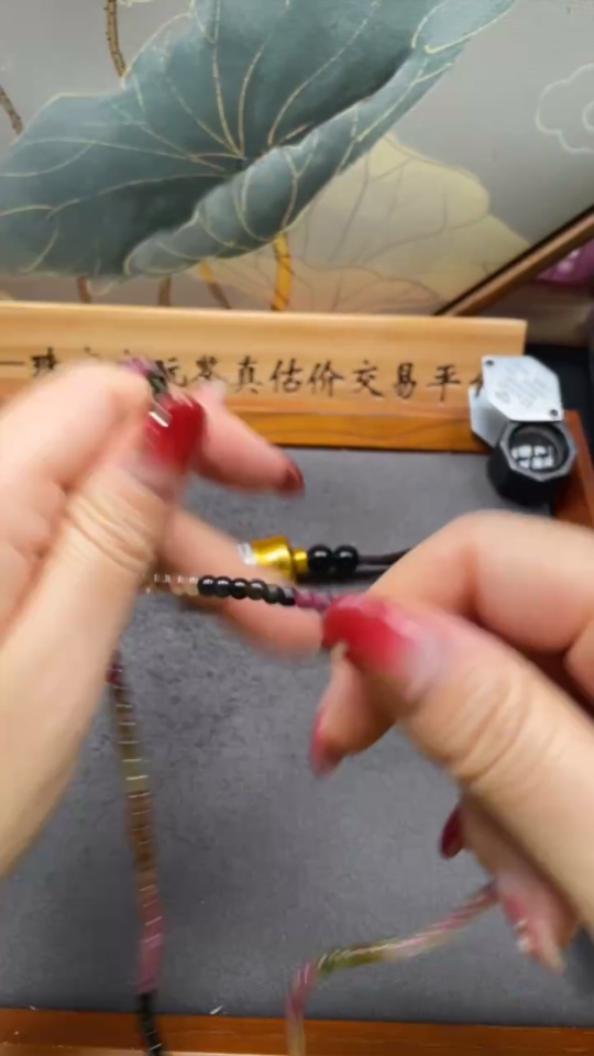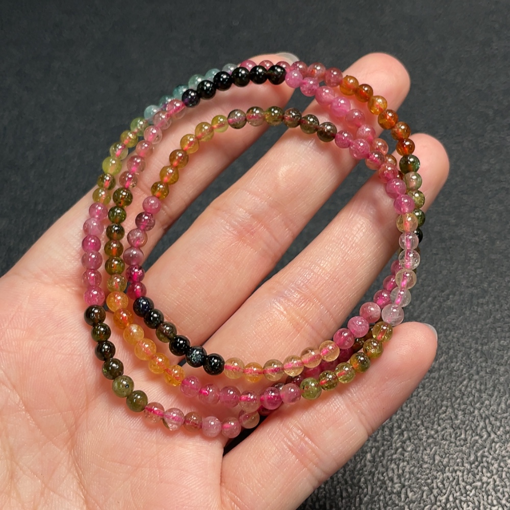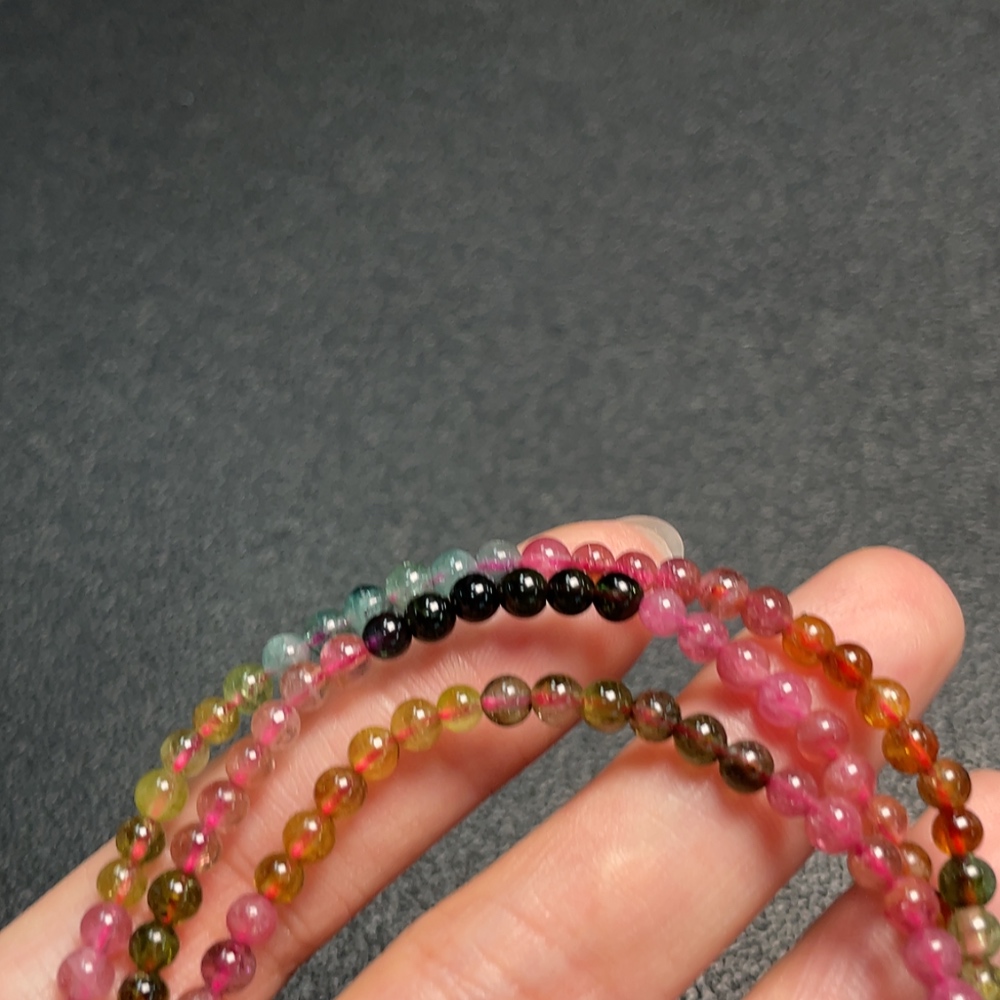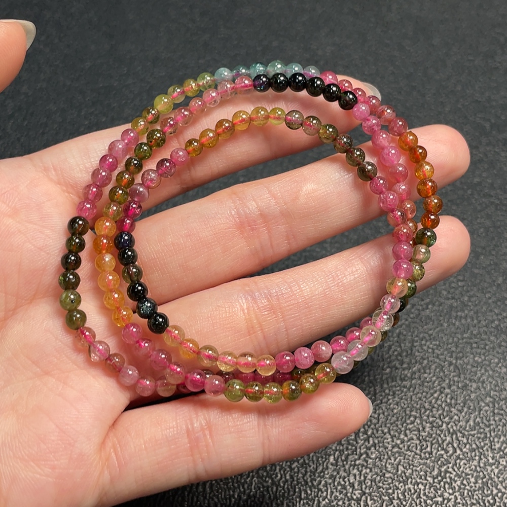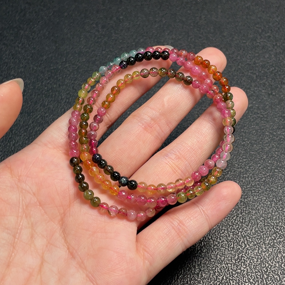 Tourmaline bead bracelet containing other mineral components with visible organic matter, total weight approximately 12.28g, bead size about 3.6mm