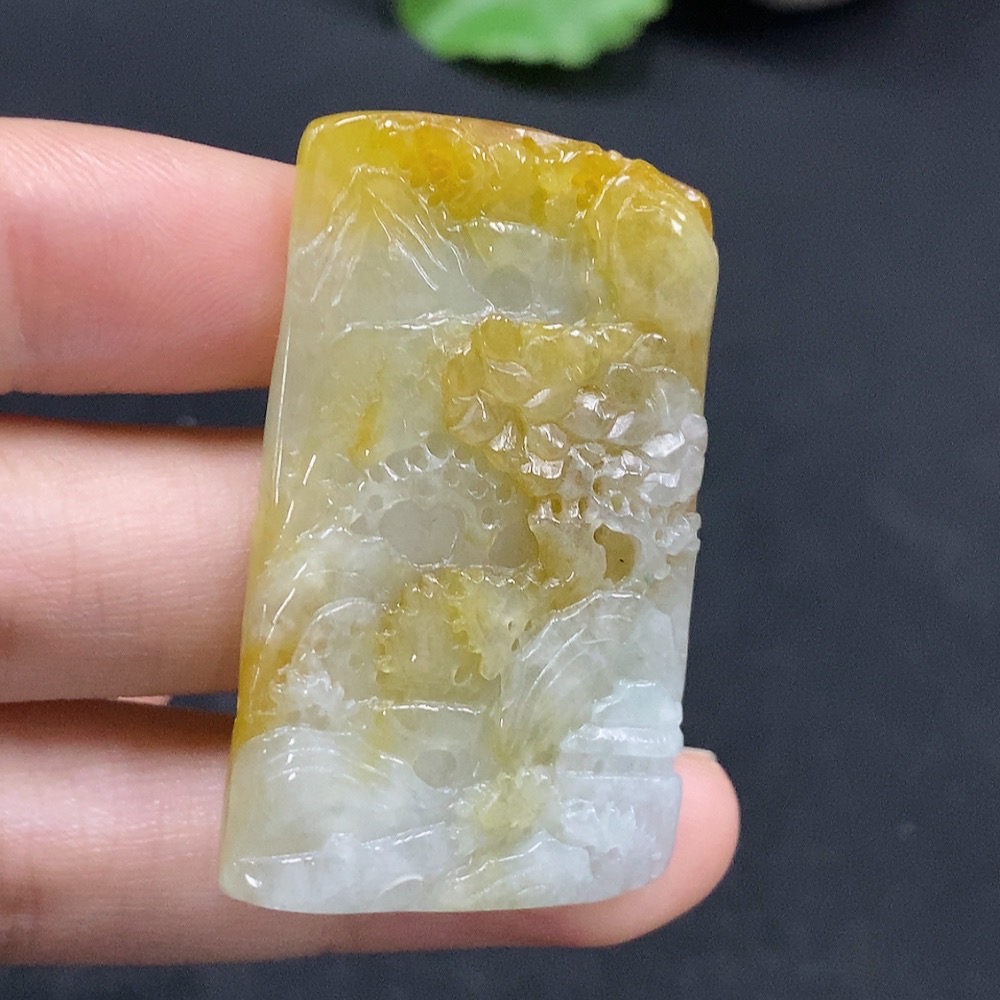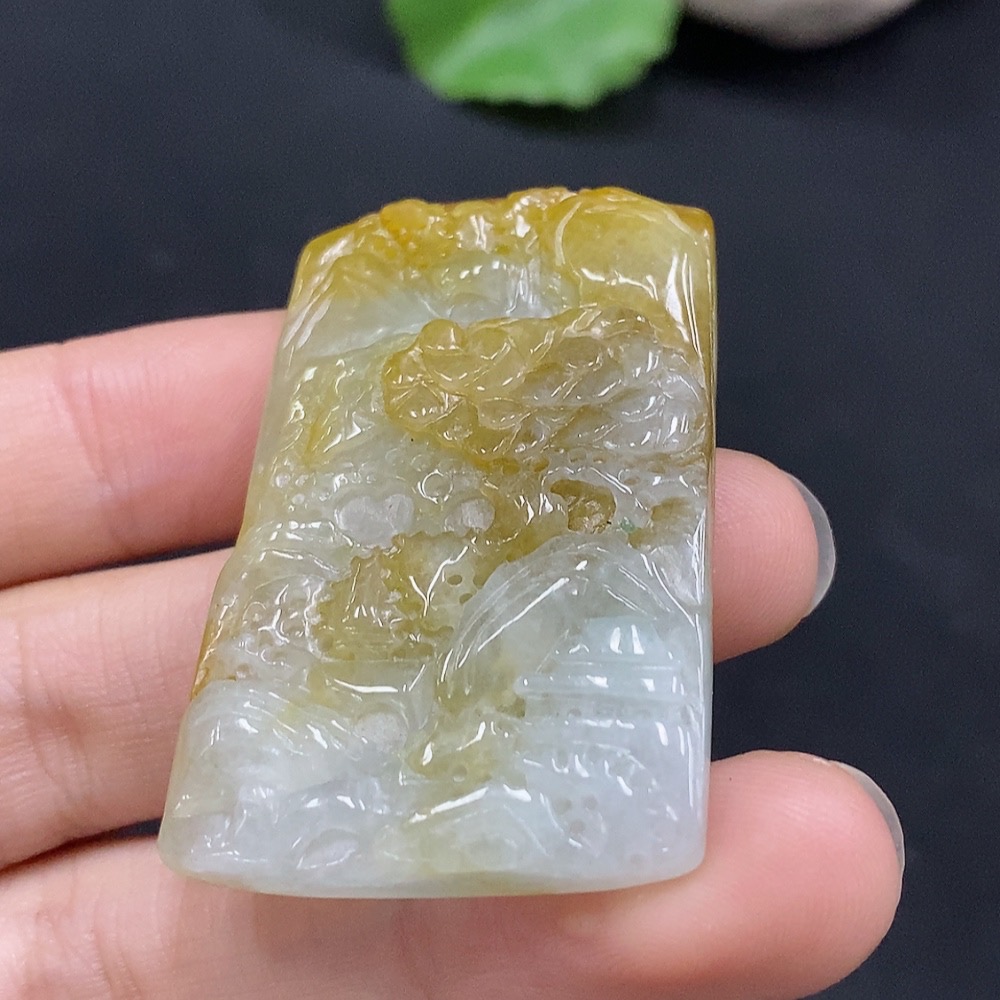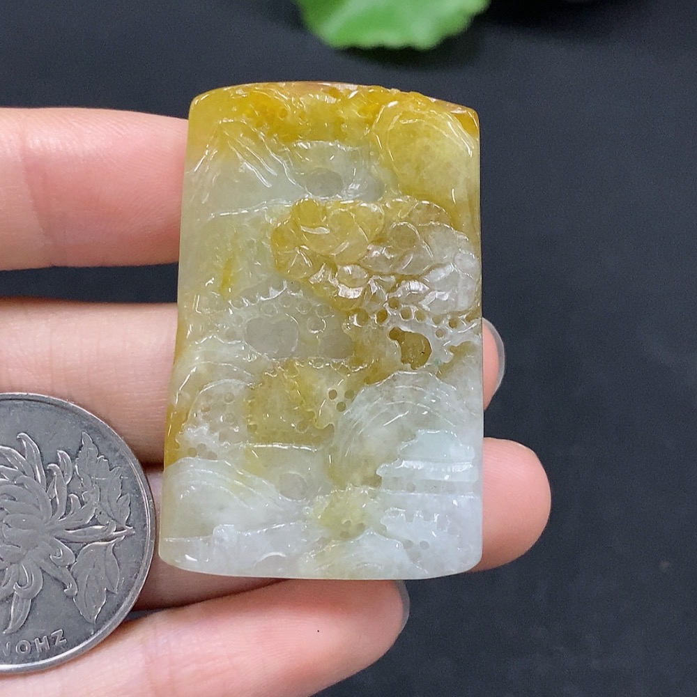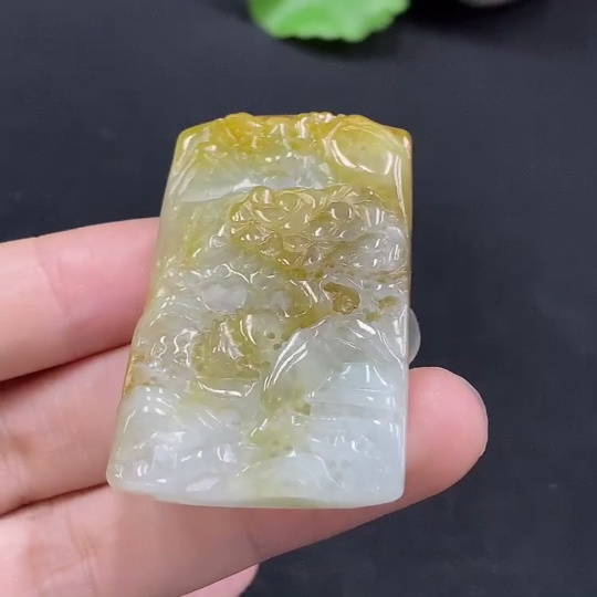 Jadeite Landscape Pendant, Color Origin Undetermined, Total Weight Approx. 16.4g