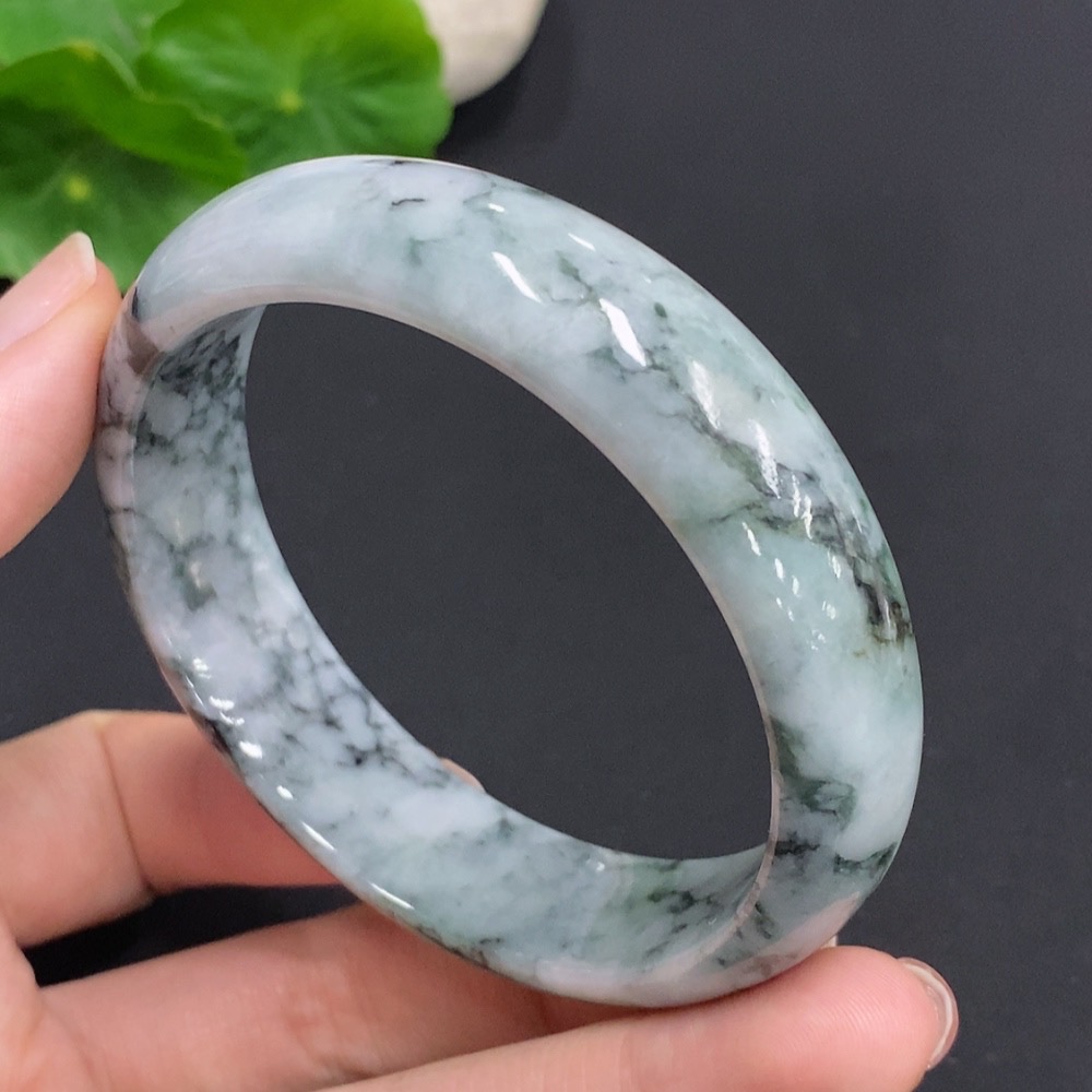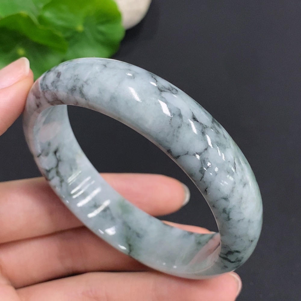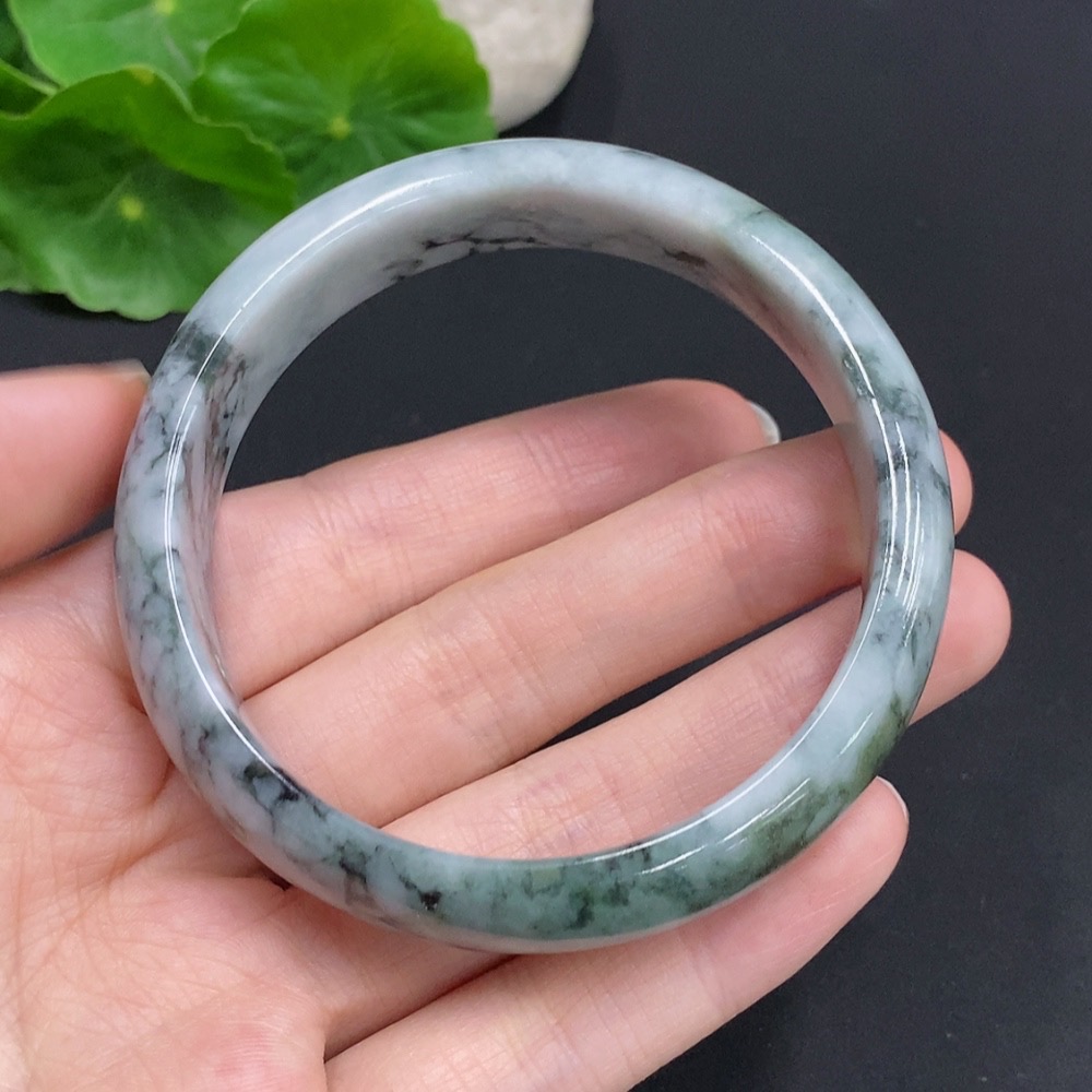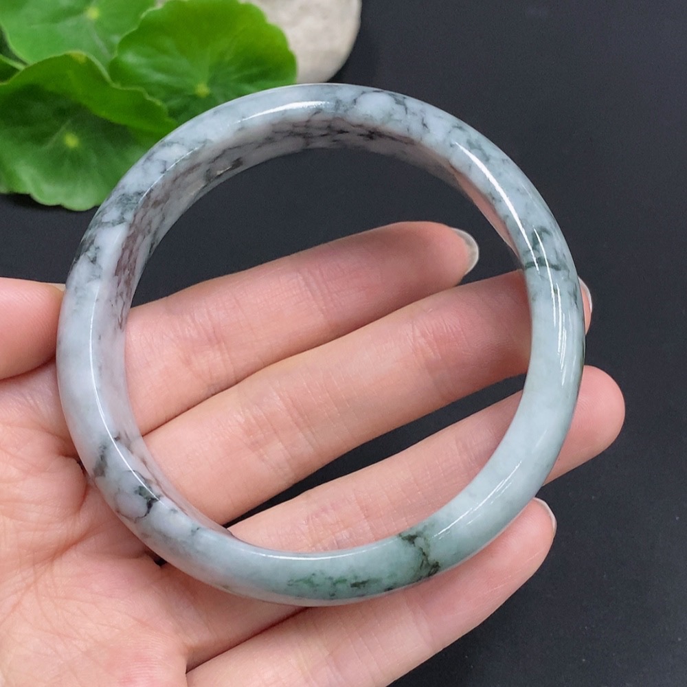 Jadeite Round Bangle, Total Weight Approx. 61.7g, Size 59.2, Containing Other Minerals
