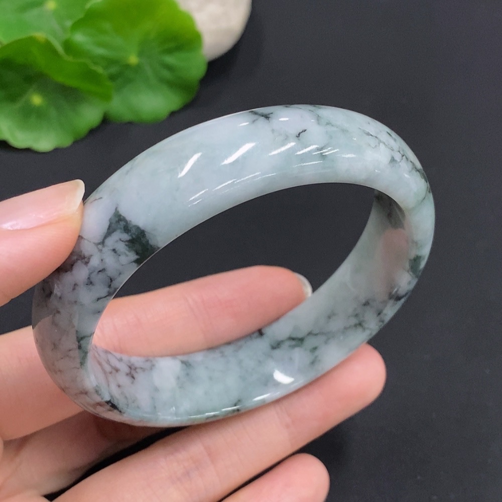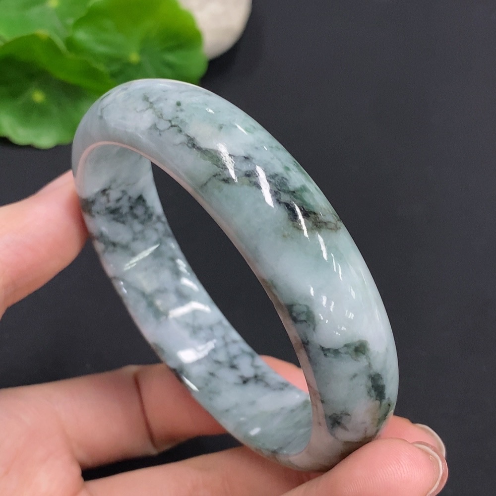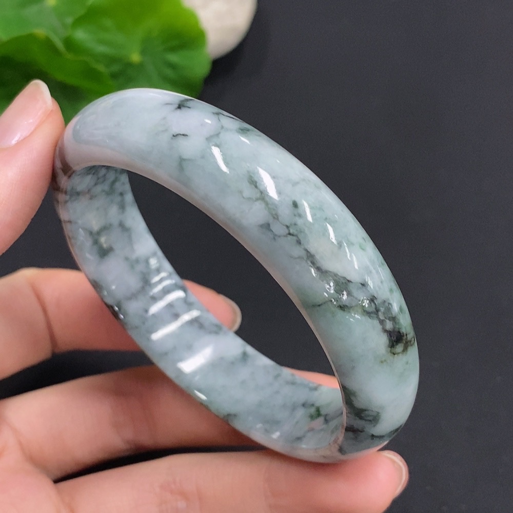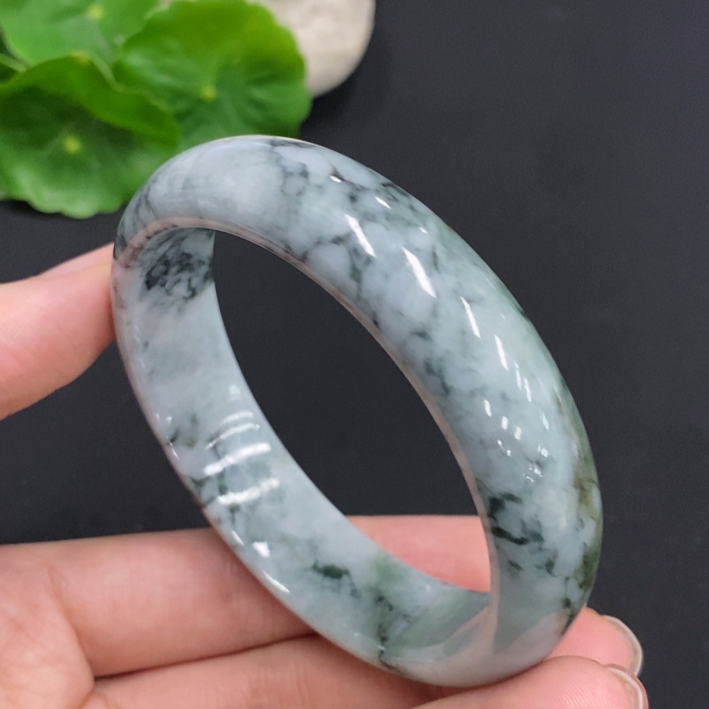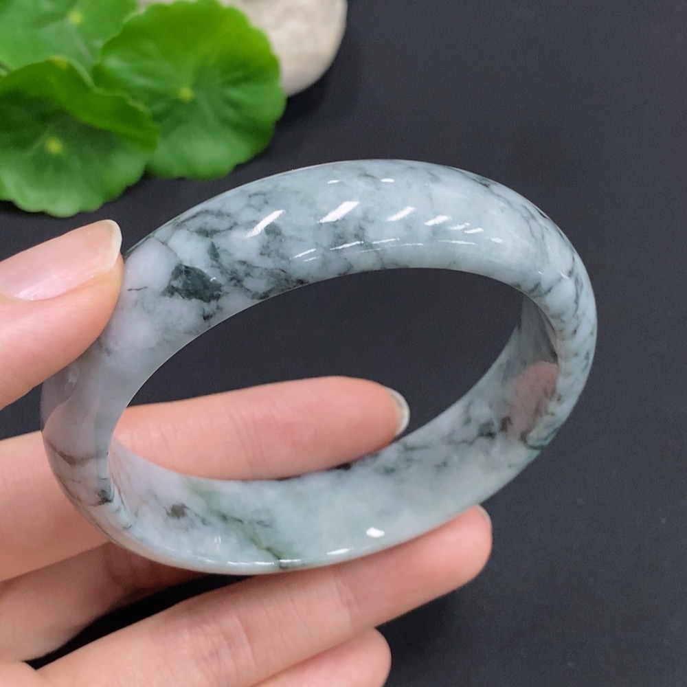 Jadeite Round Bangle, Total Weight Approx. 61.7g, Size 59.2, Containing Other Minerals