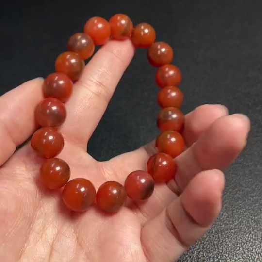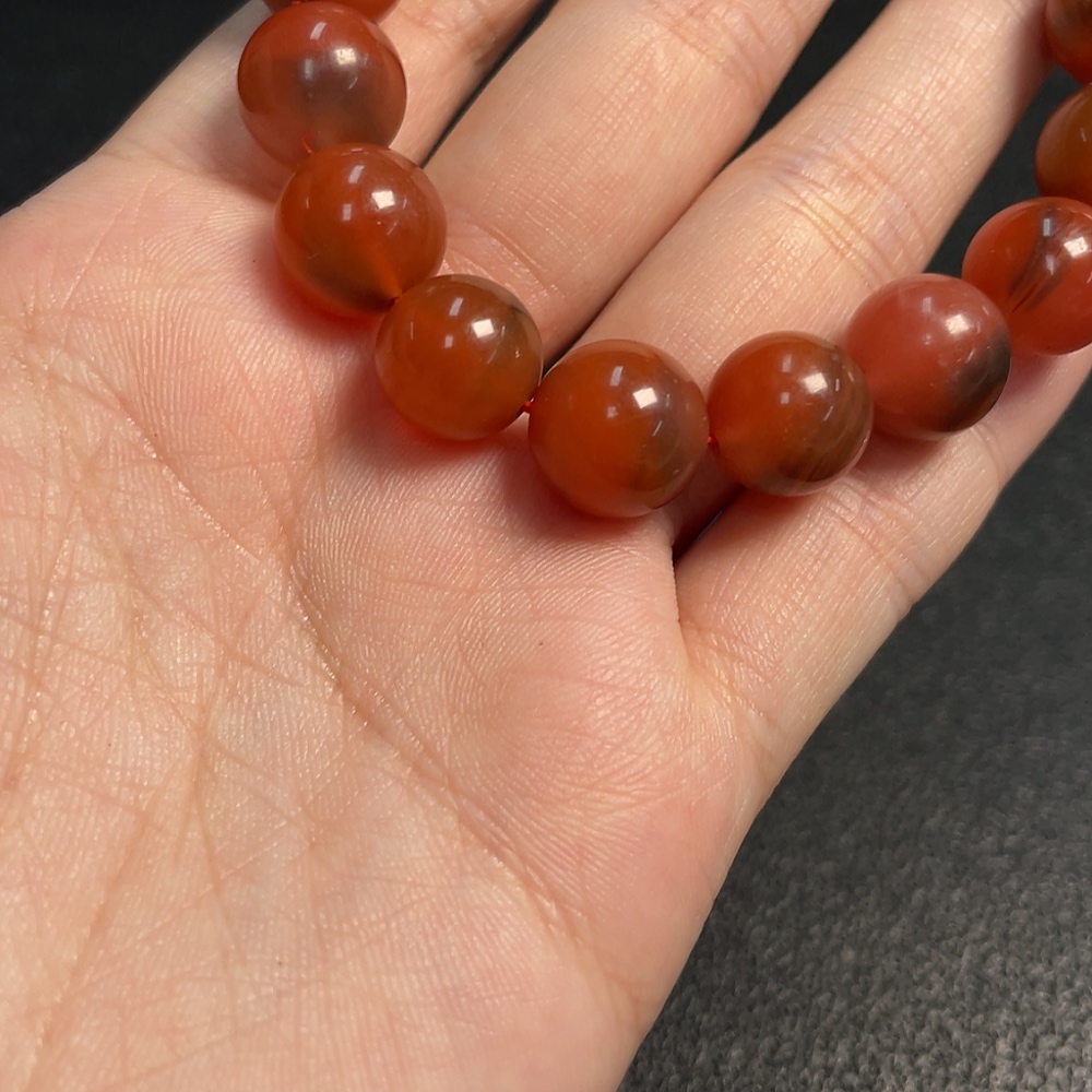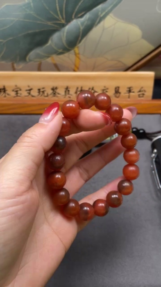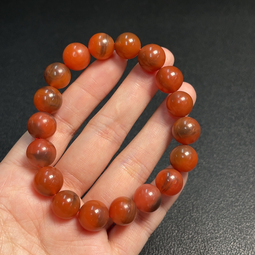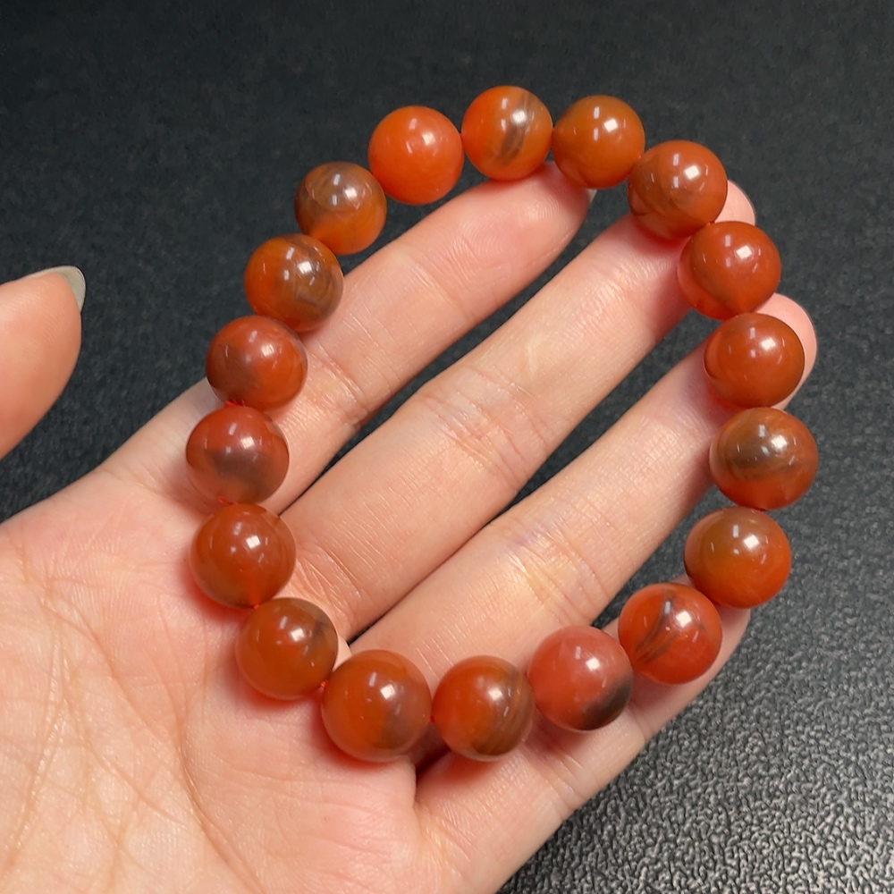 Red Agate Bracelet with Visible Organic Matter, Total Weight Approx. 38.73g, Size About 11.3mm