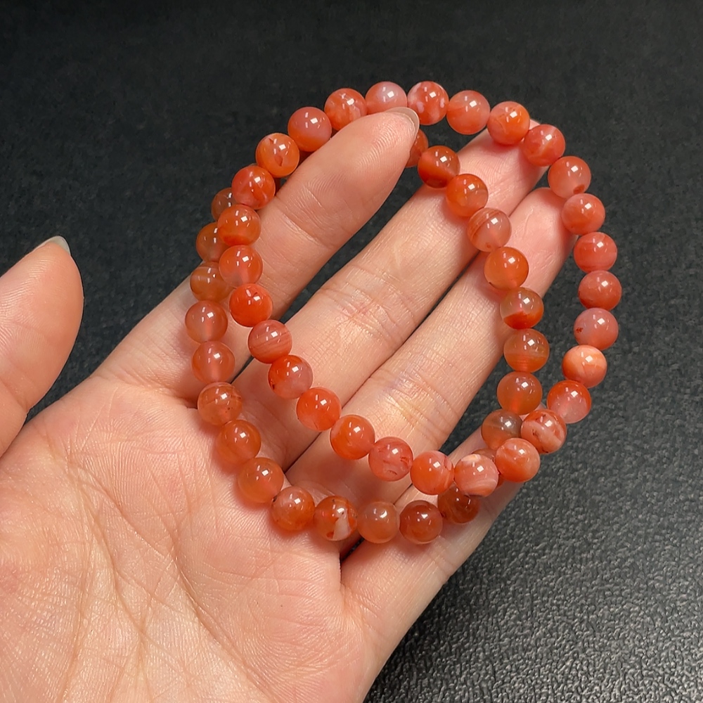 Red Agate Bracelet with Visible Organic Matter, Total Weight Approx. 27.35g, Sell as a Lot