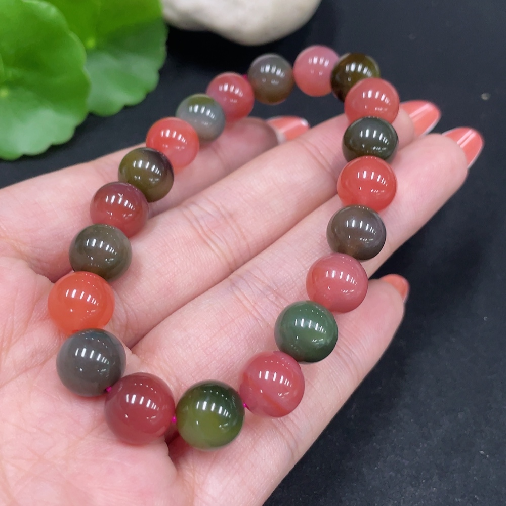 Yanyuan Agate Bracelet, approx. 9.7mm beads, total weight approx. 25.1g