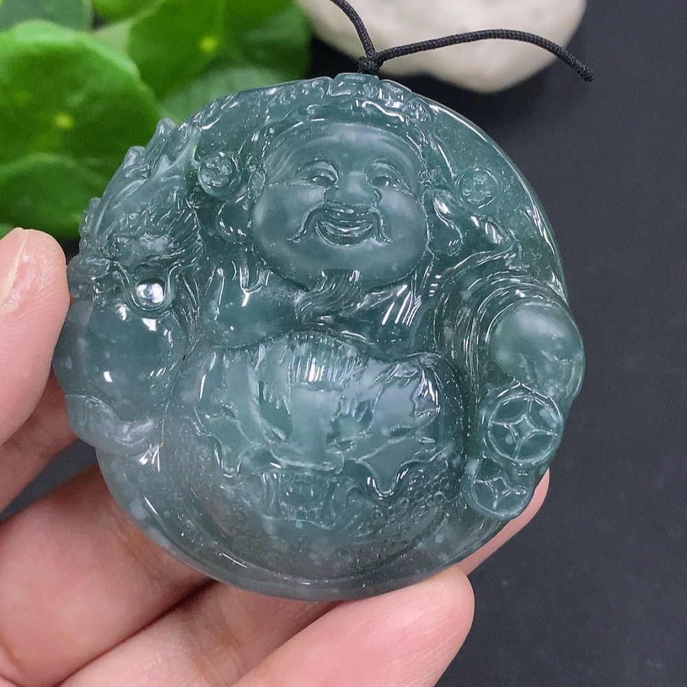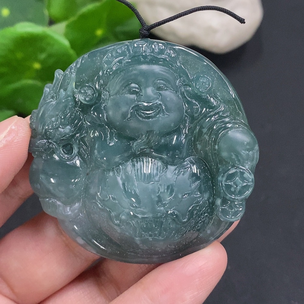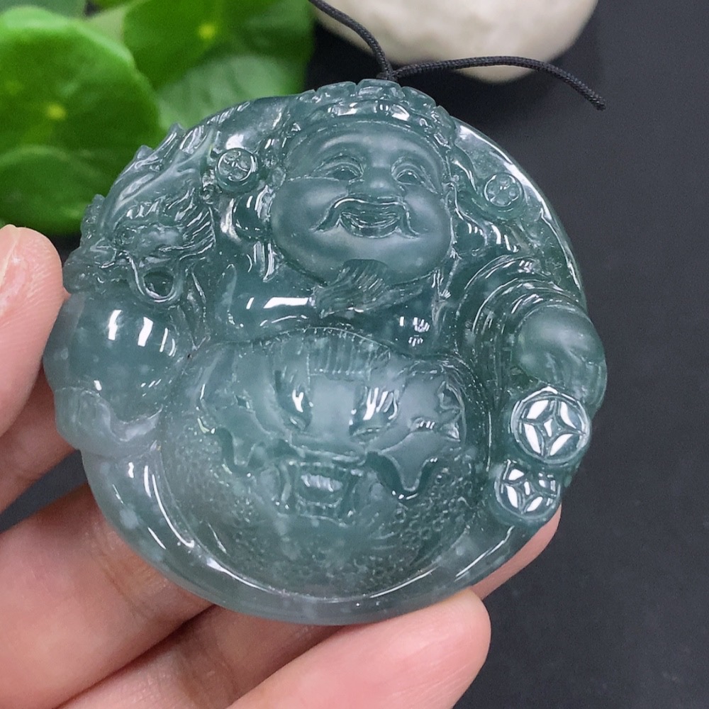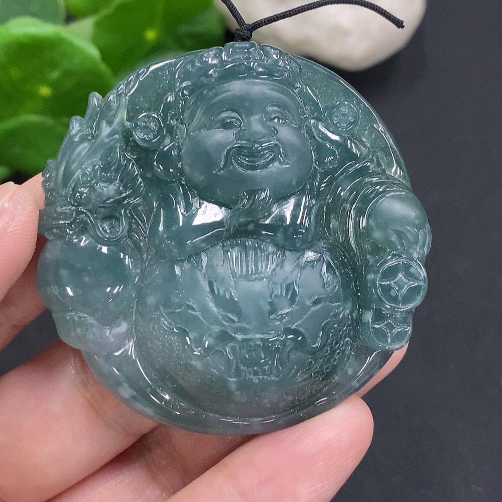 Jadeite God of Wealth Pendant, Total Weight Approx. 56.7g