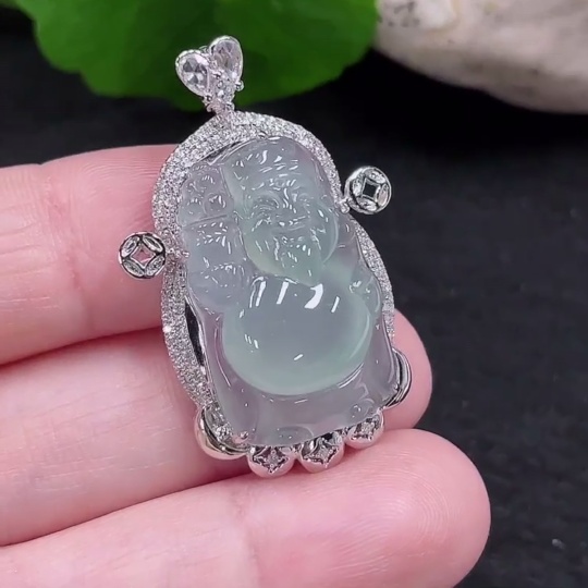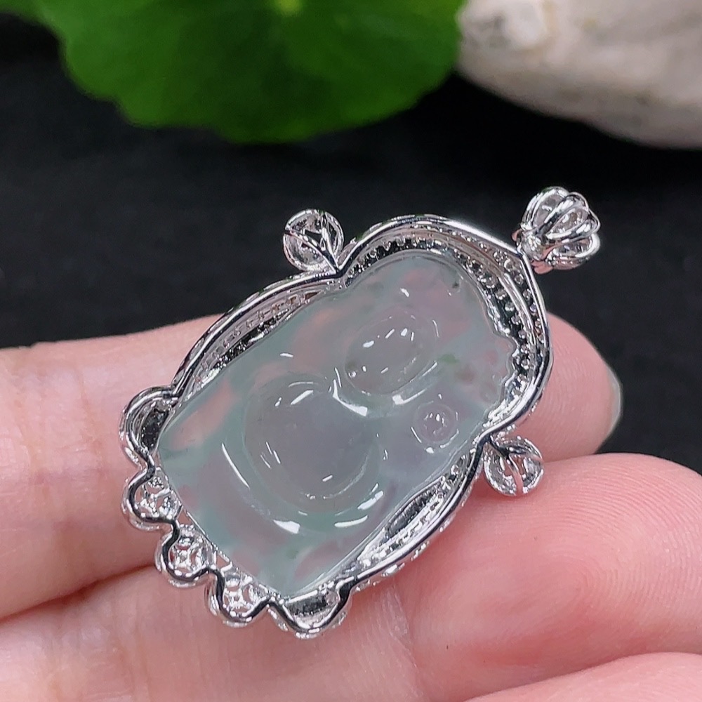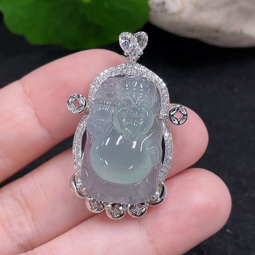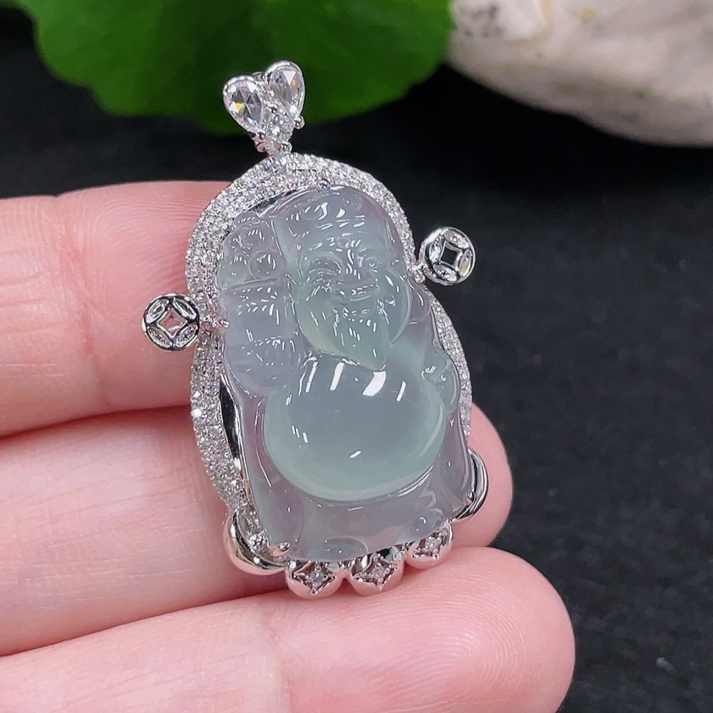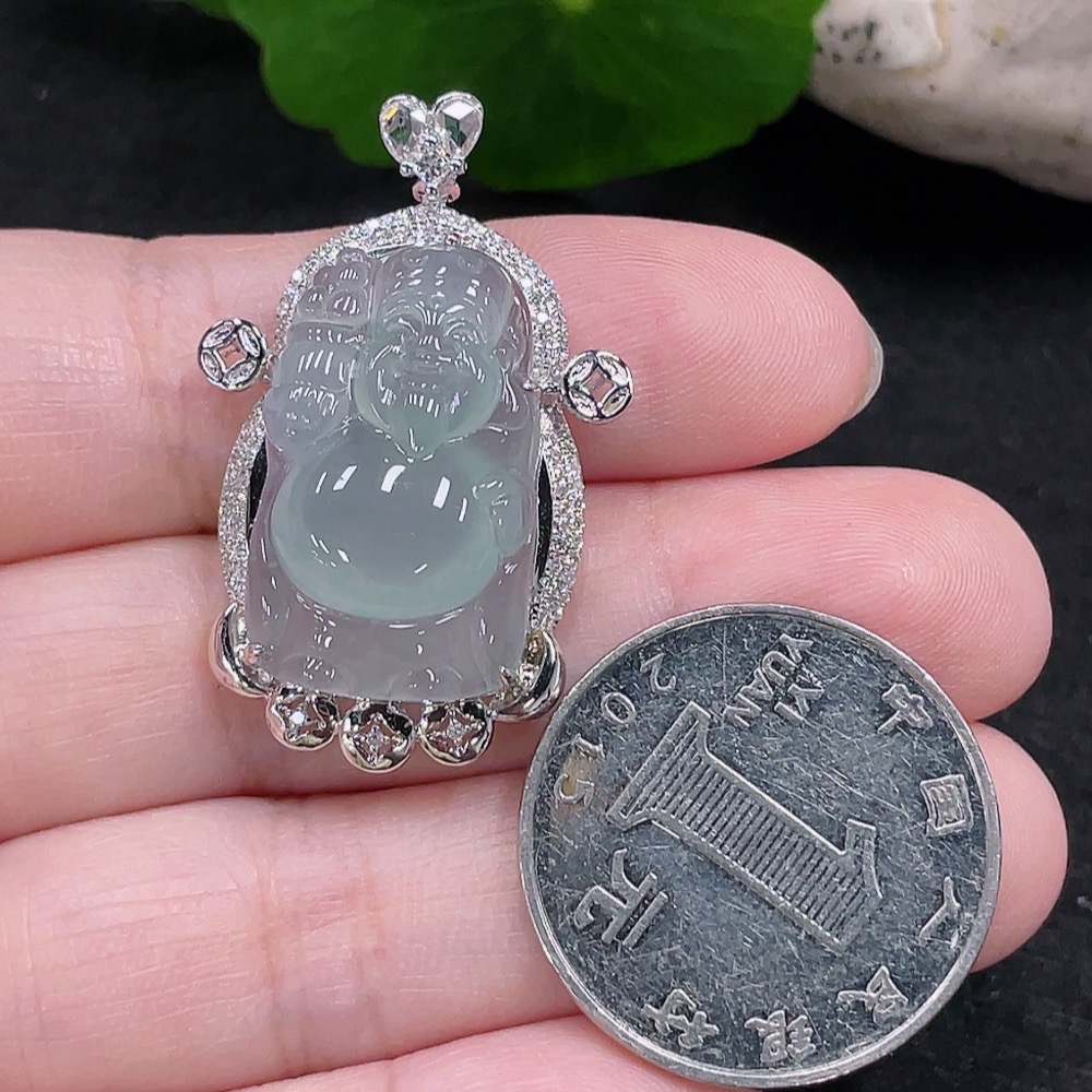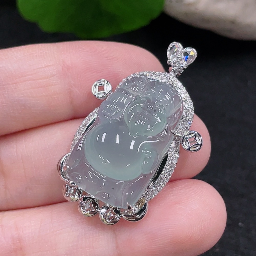 Jadeite God of Wealth Pendant 18K Gold Total Weight Approx. 6.6g (with Diamond Inlay)